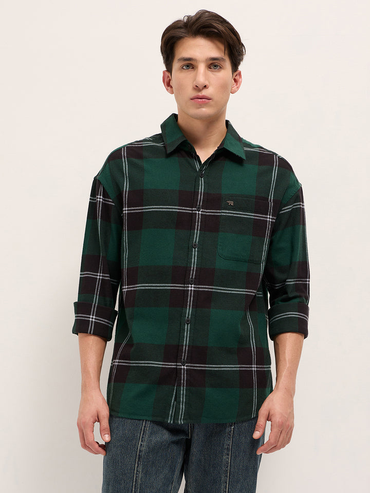 Green with Black Woven Checked Design Relax Fit Casual Shirt