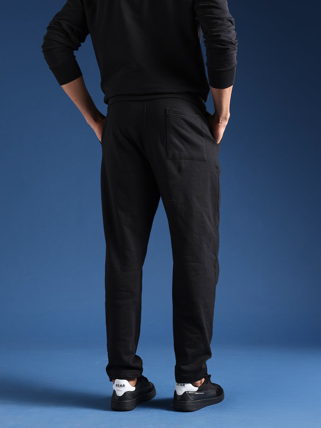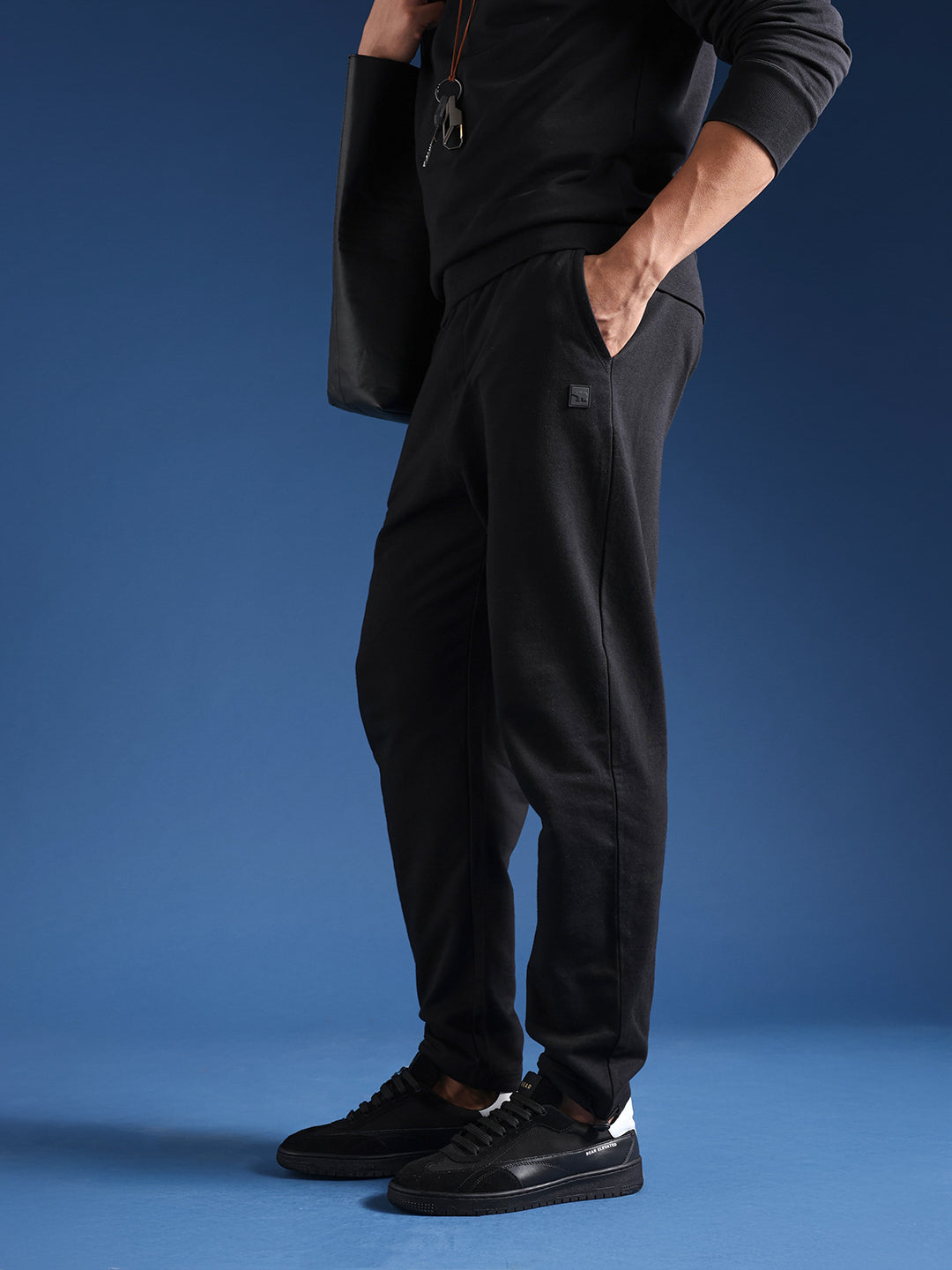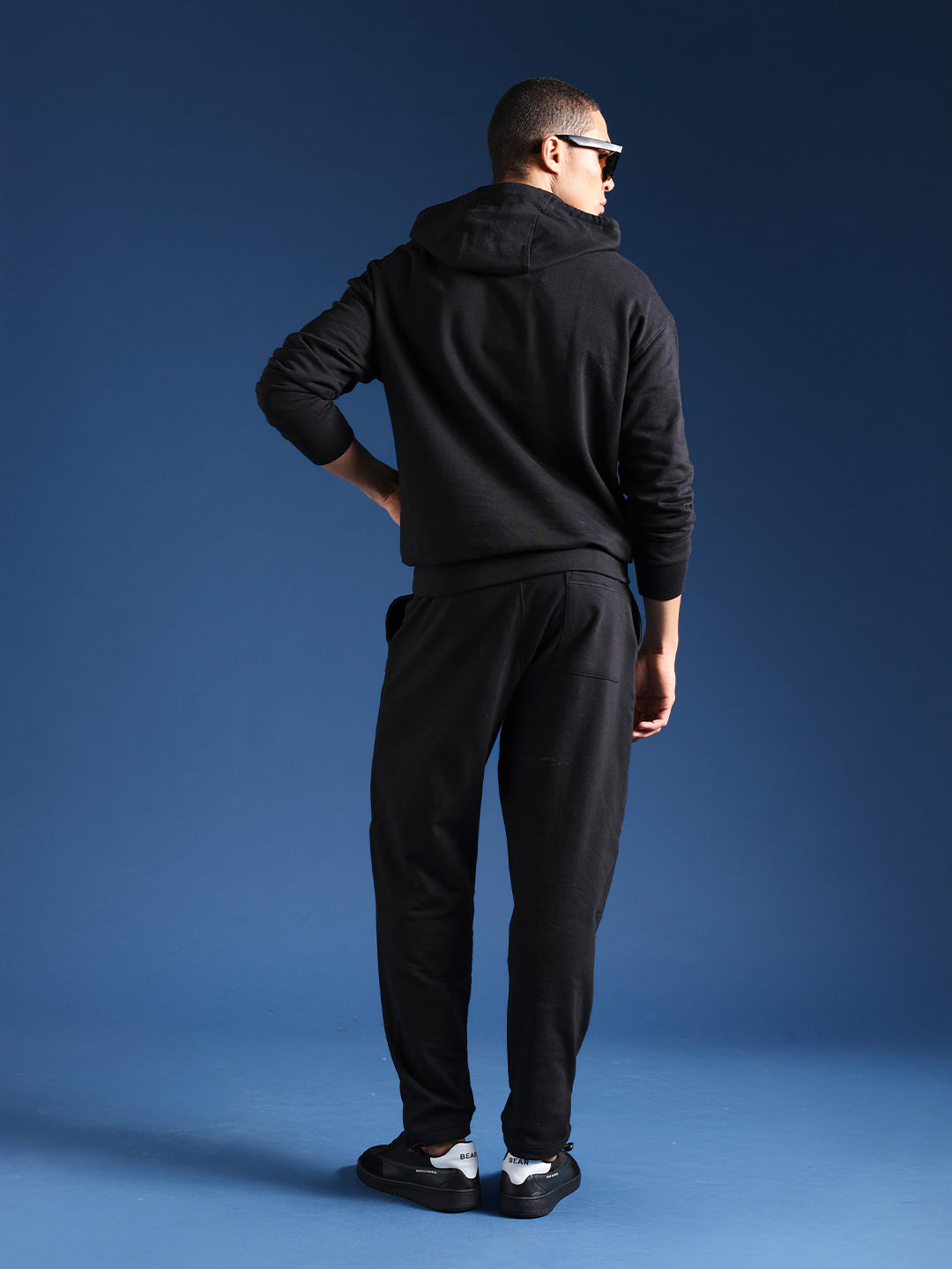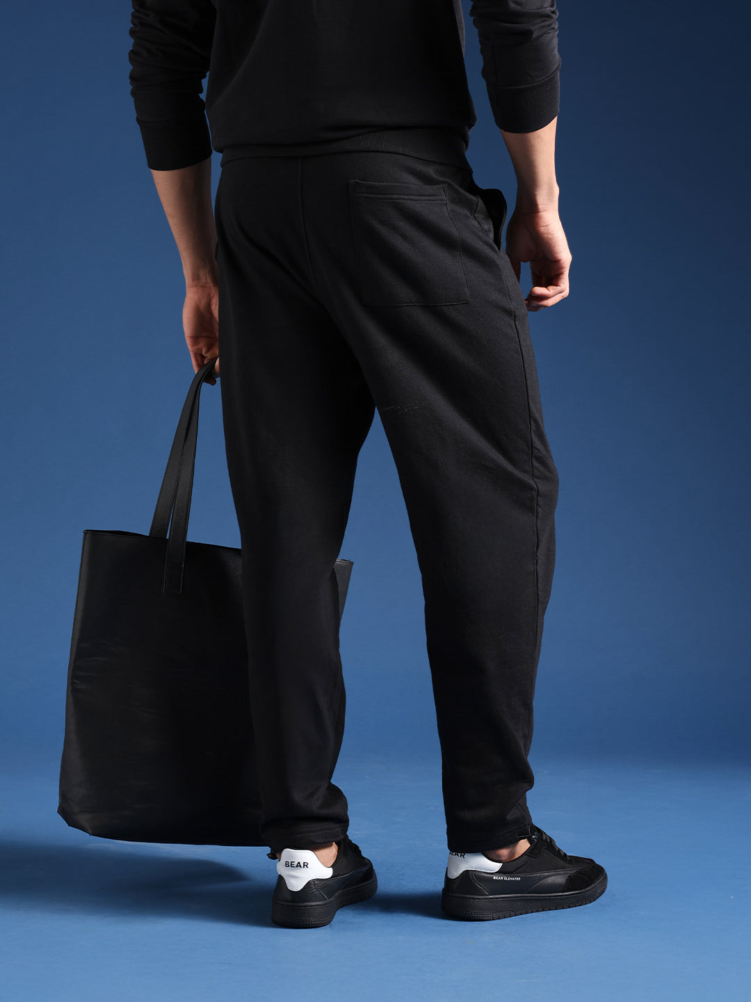 Black Relaxed Fit Solid Track Pants with Toggle Adjustable Hem