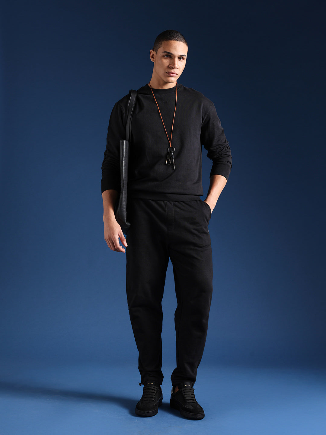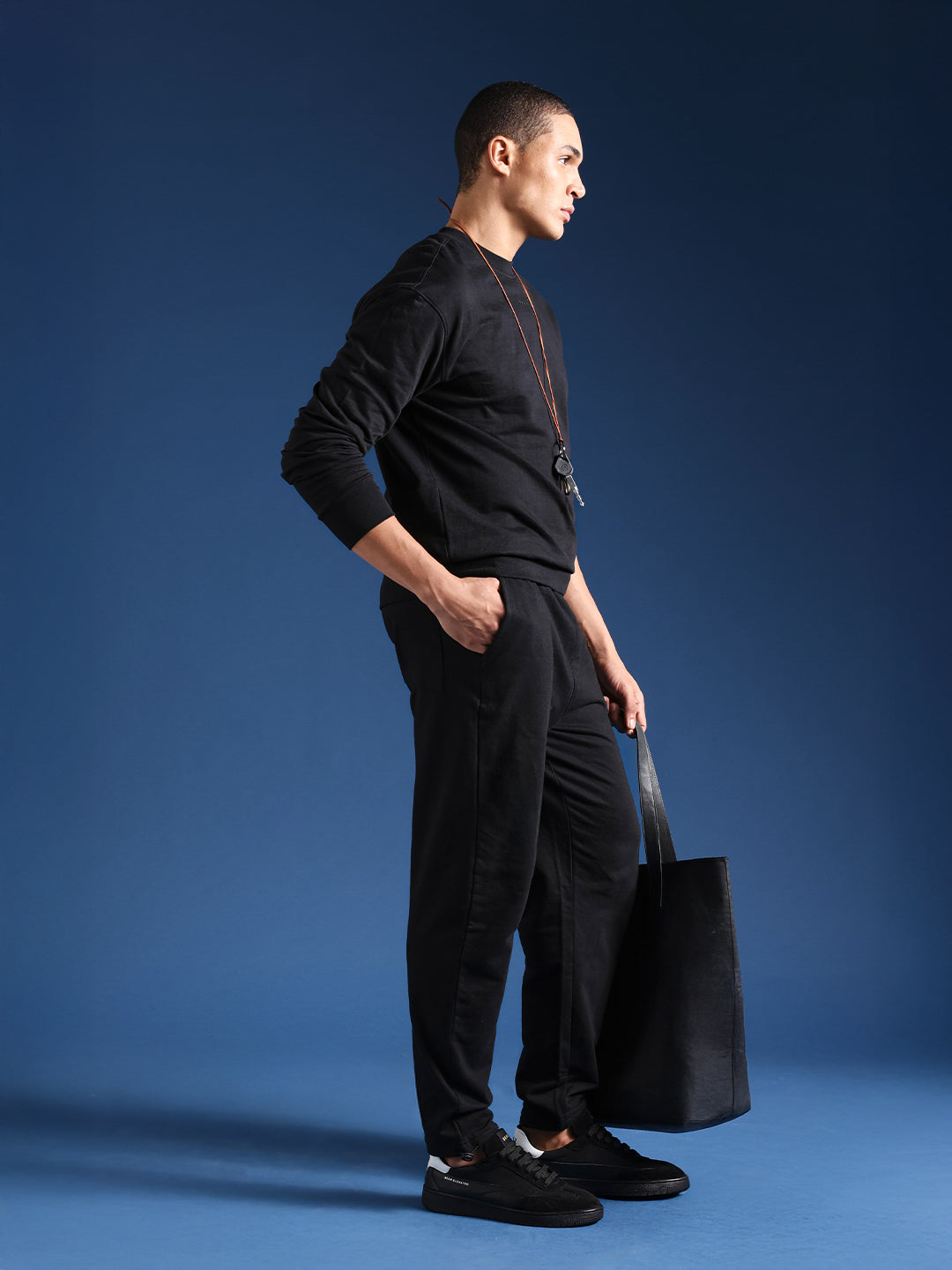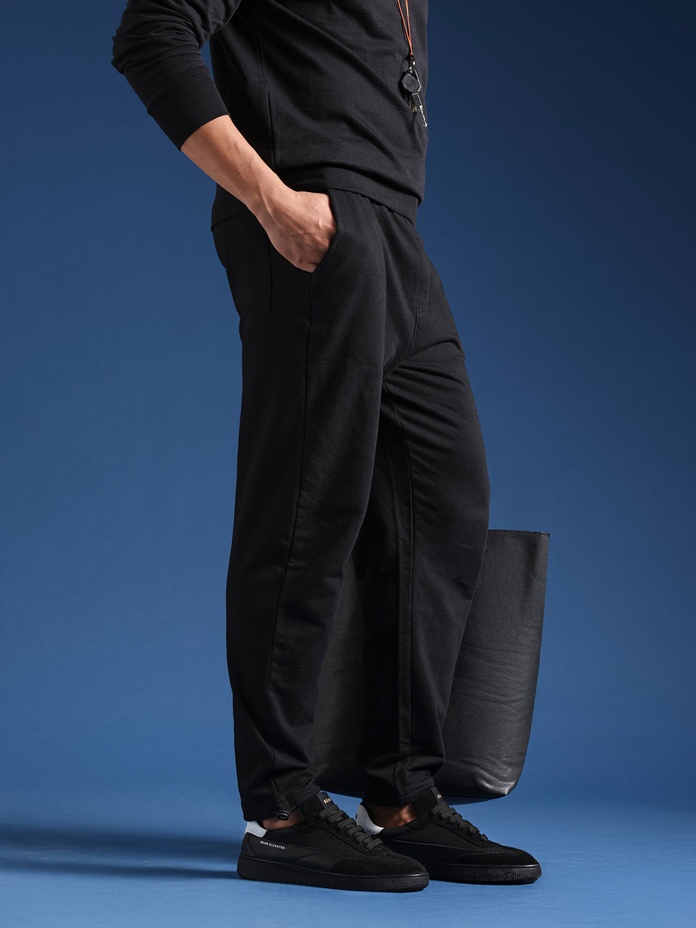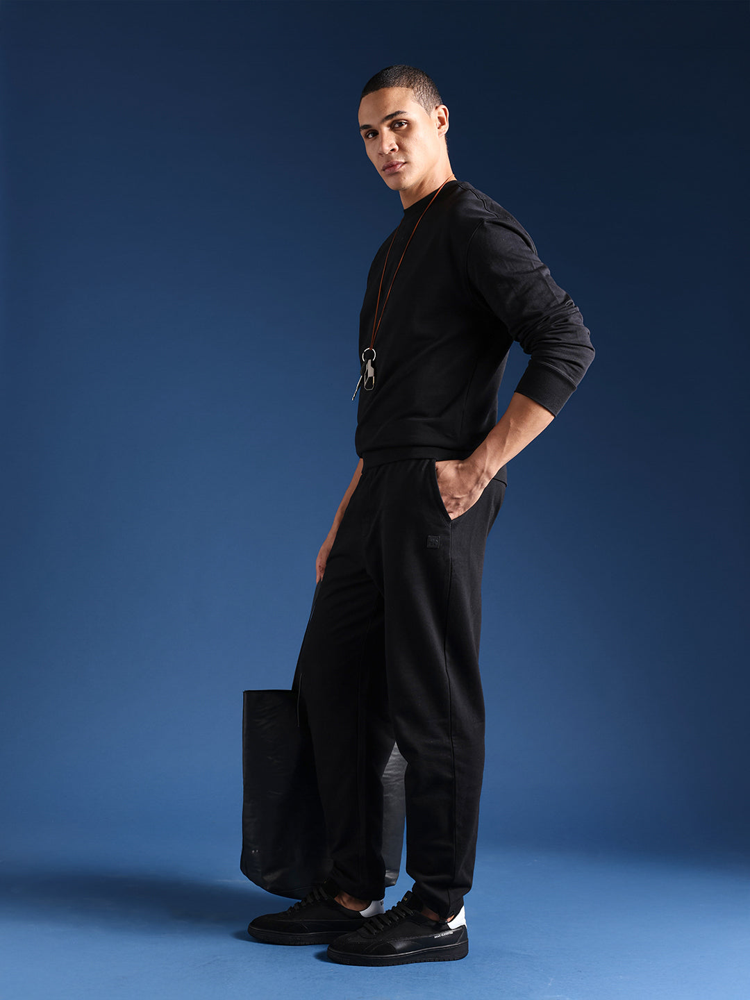 Black Relaxed Fit Solid Track Pants with Toggle Adjustable Hem