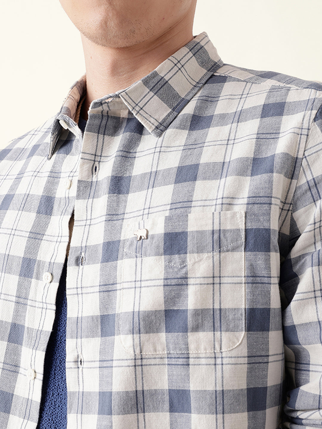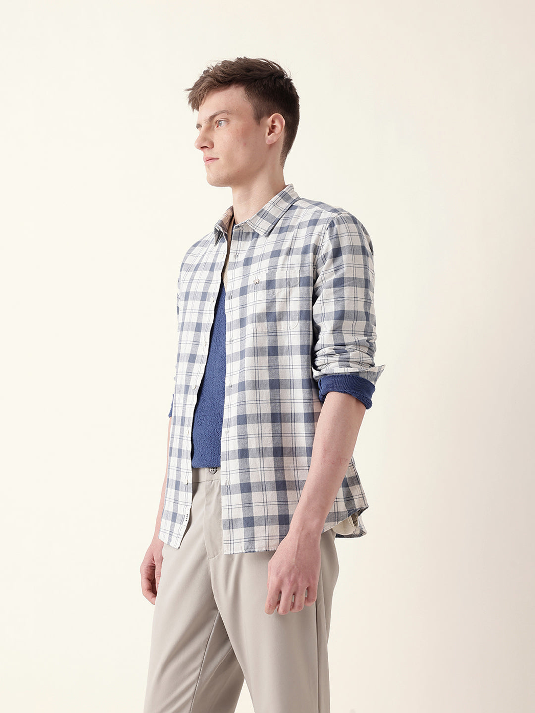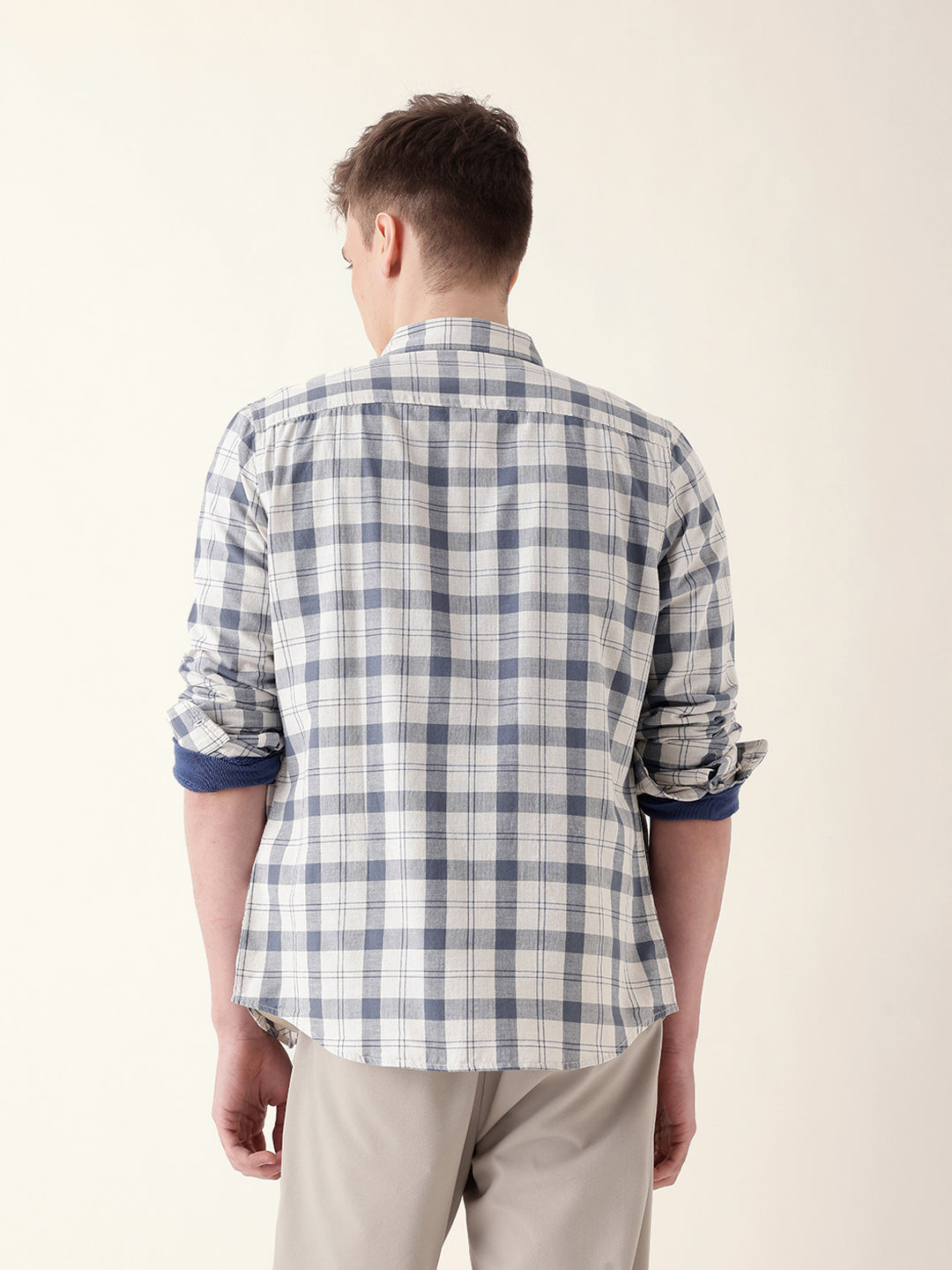 Shop White with Blue Woven Checkered Slim Fit Casual Shirt Online.