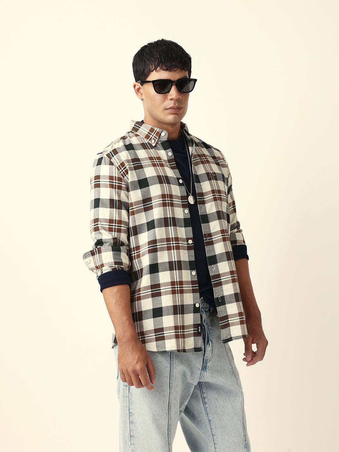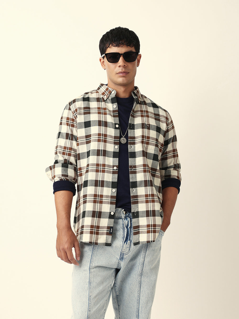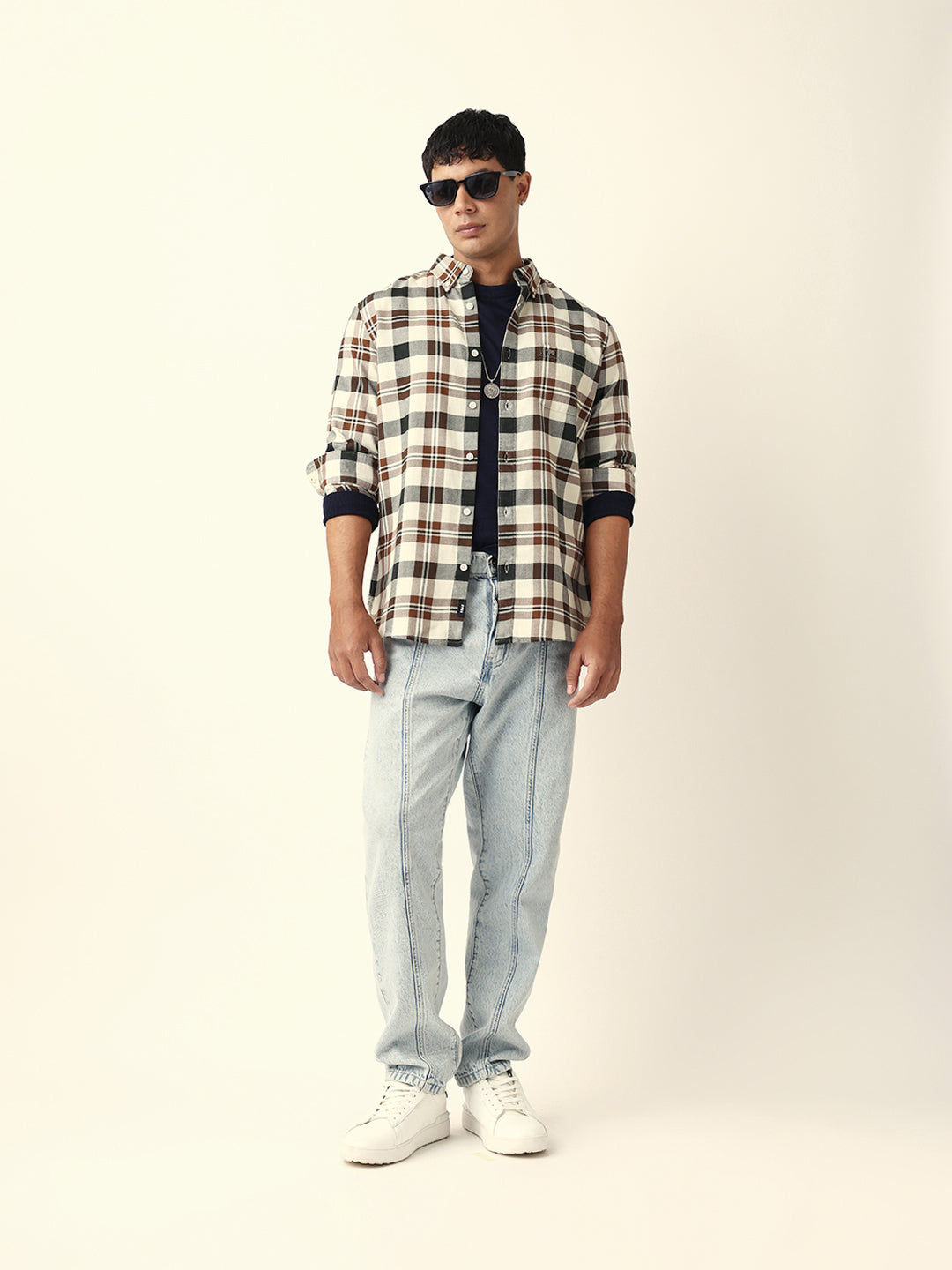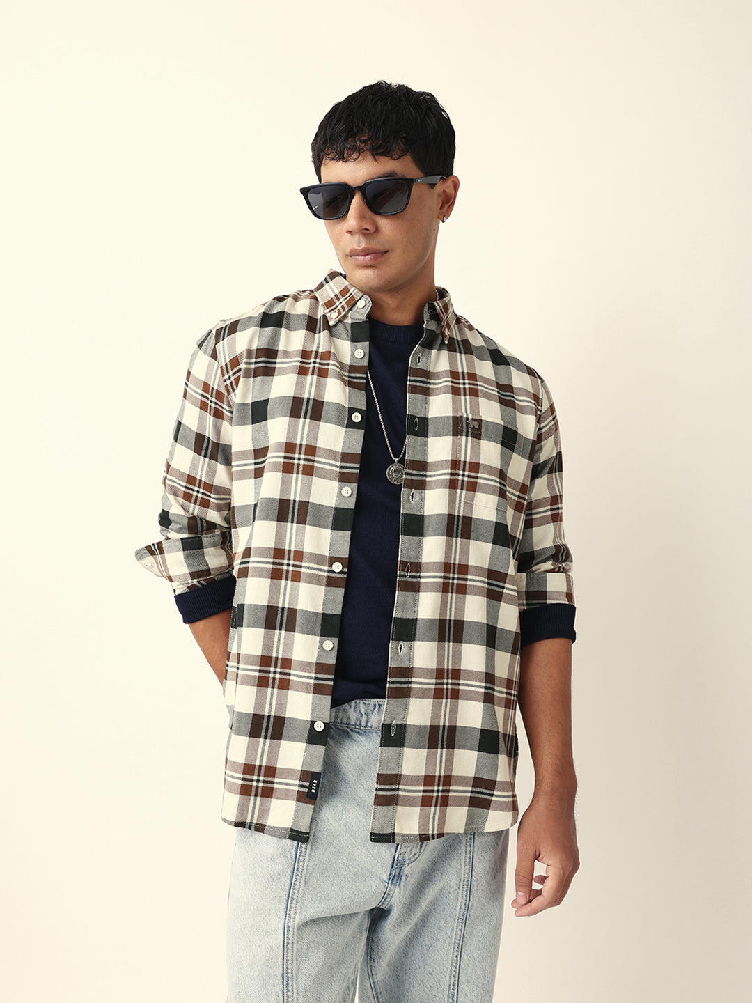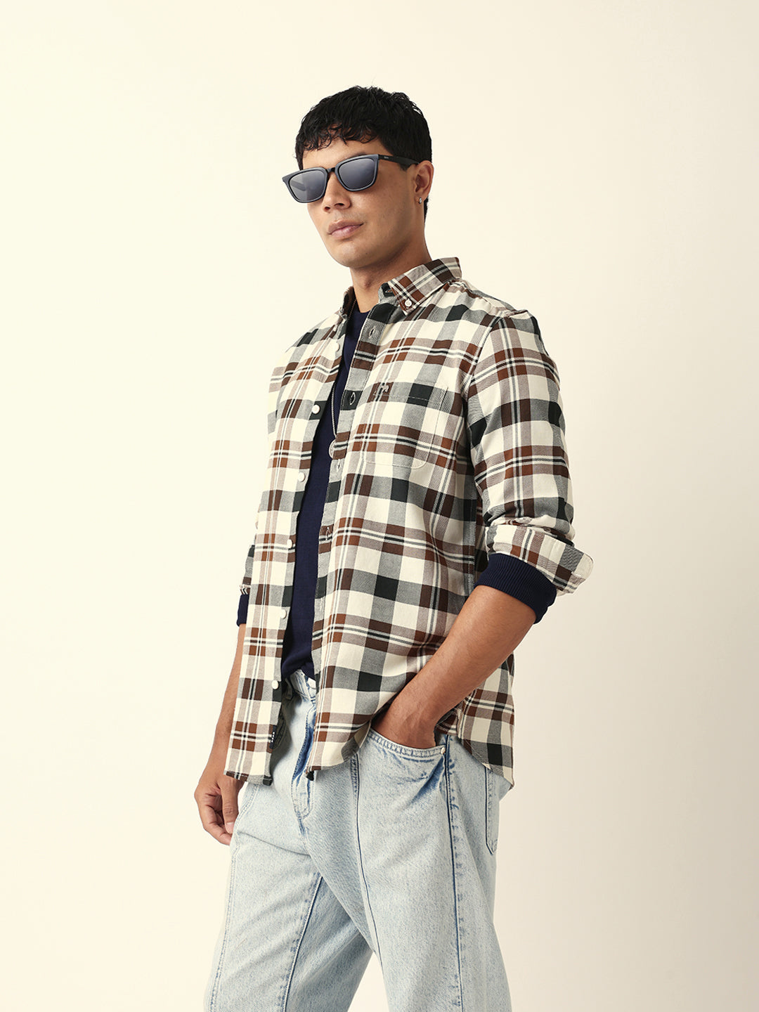Shop Multicolor Woven Tartan Checked Slim Fit Casual Shirt Online.