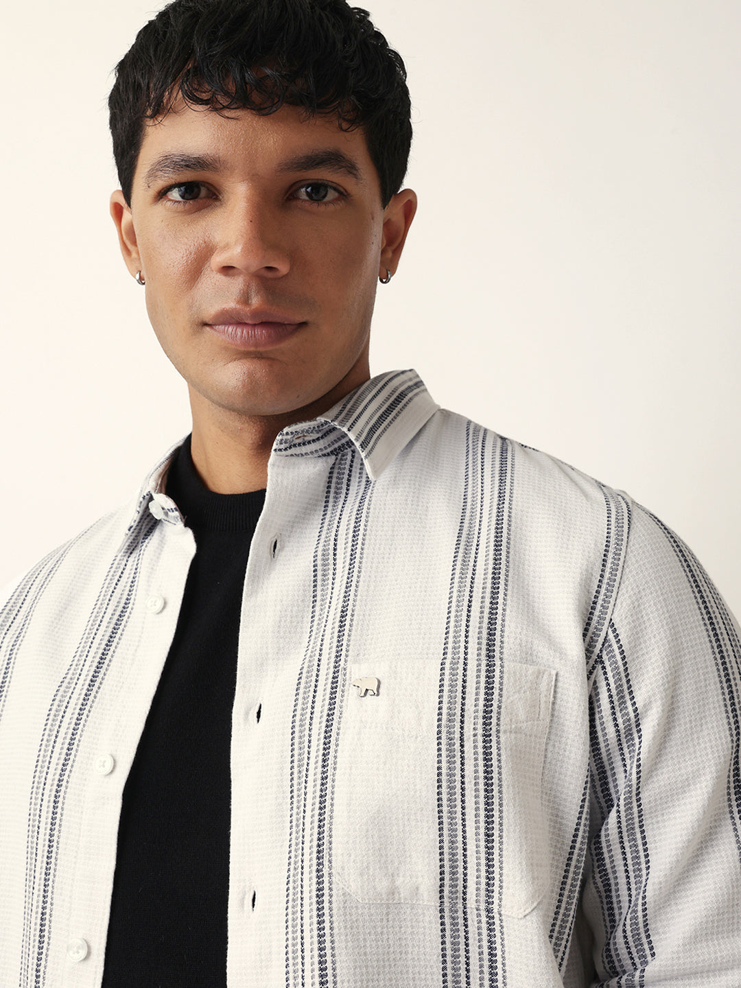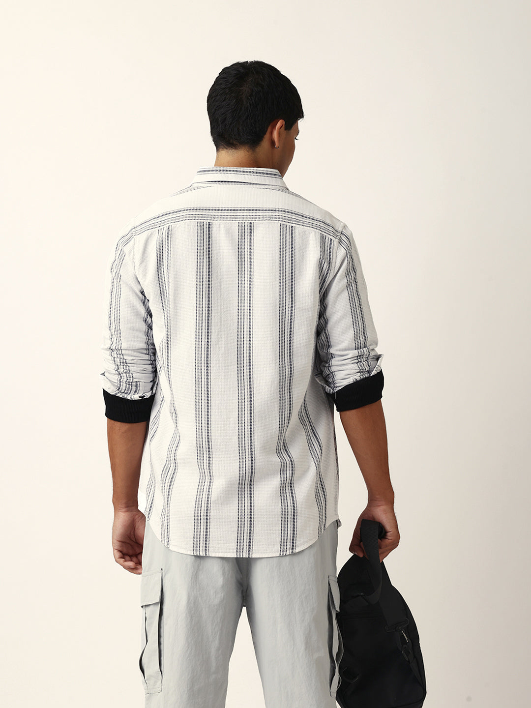 White Vertical Woven Stripe Slim Fit Casual Shirt