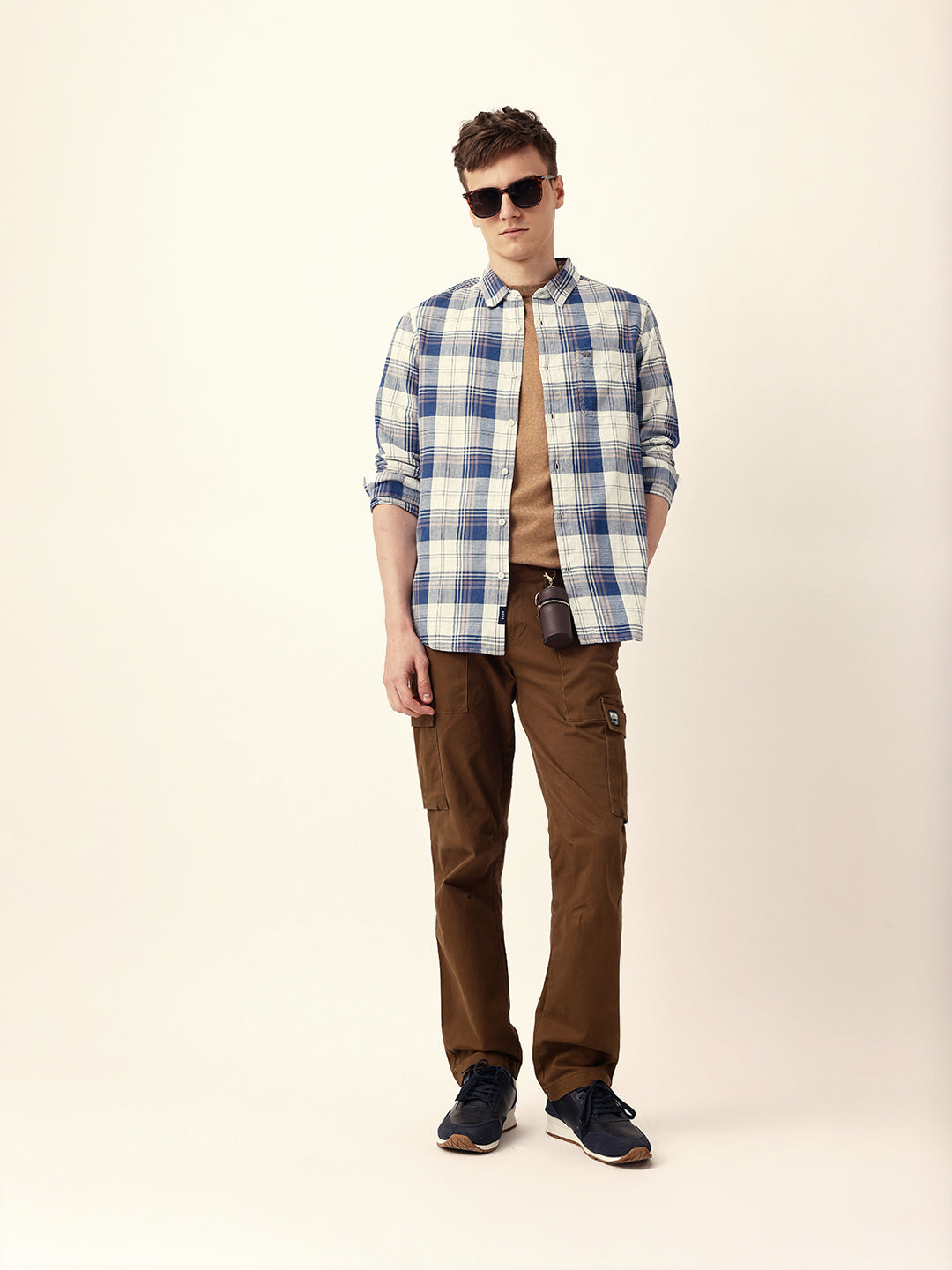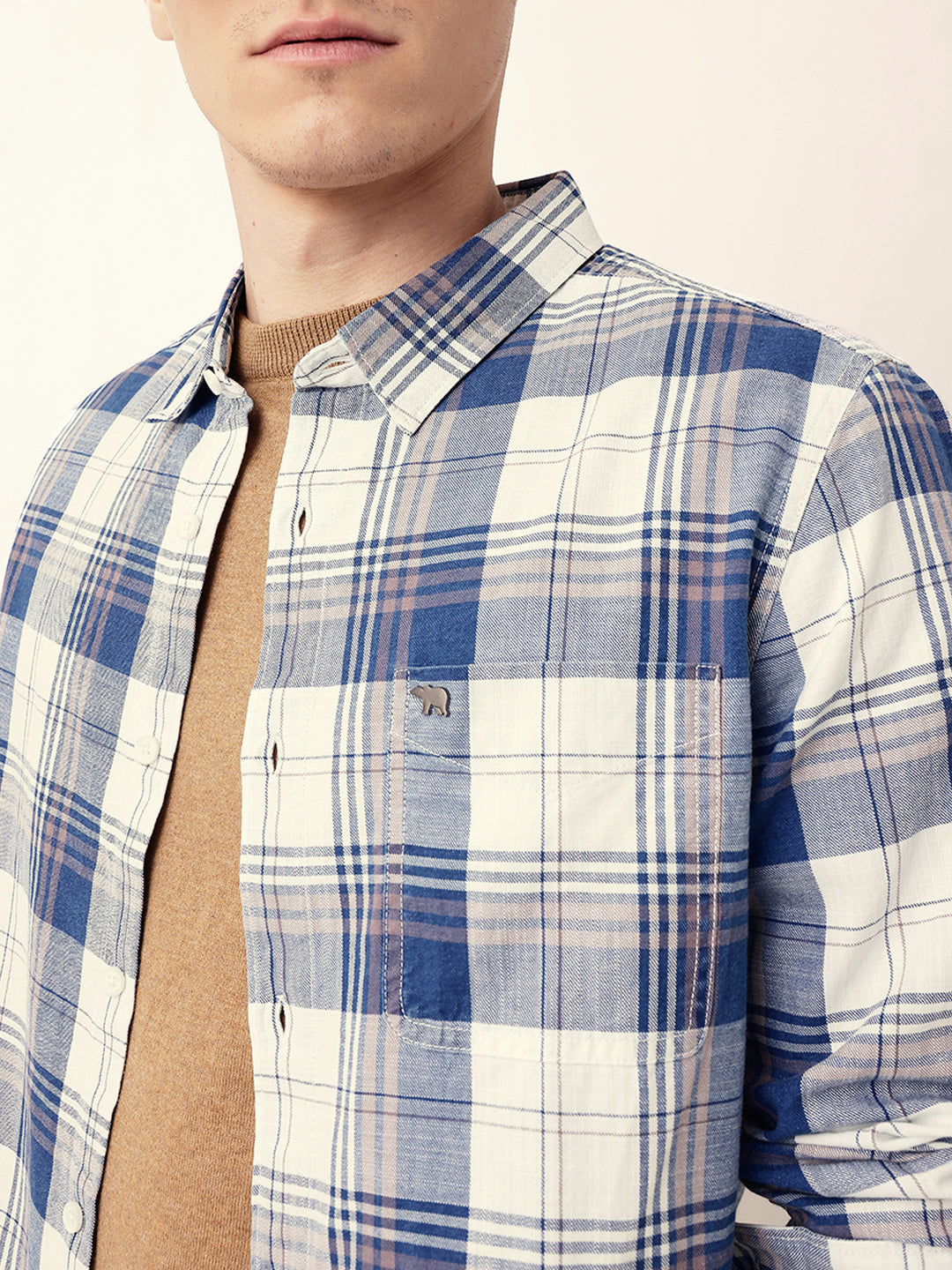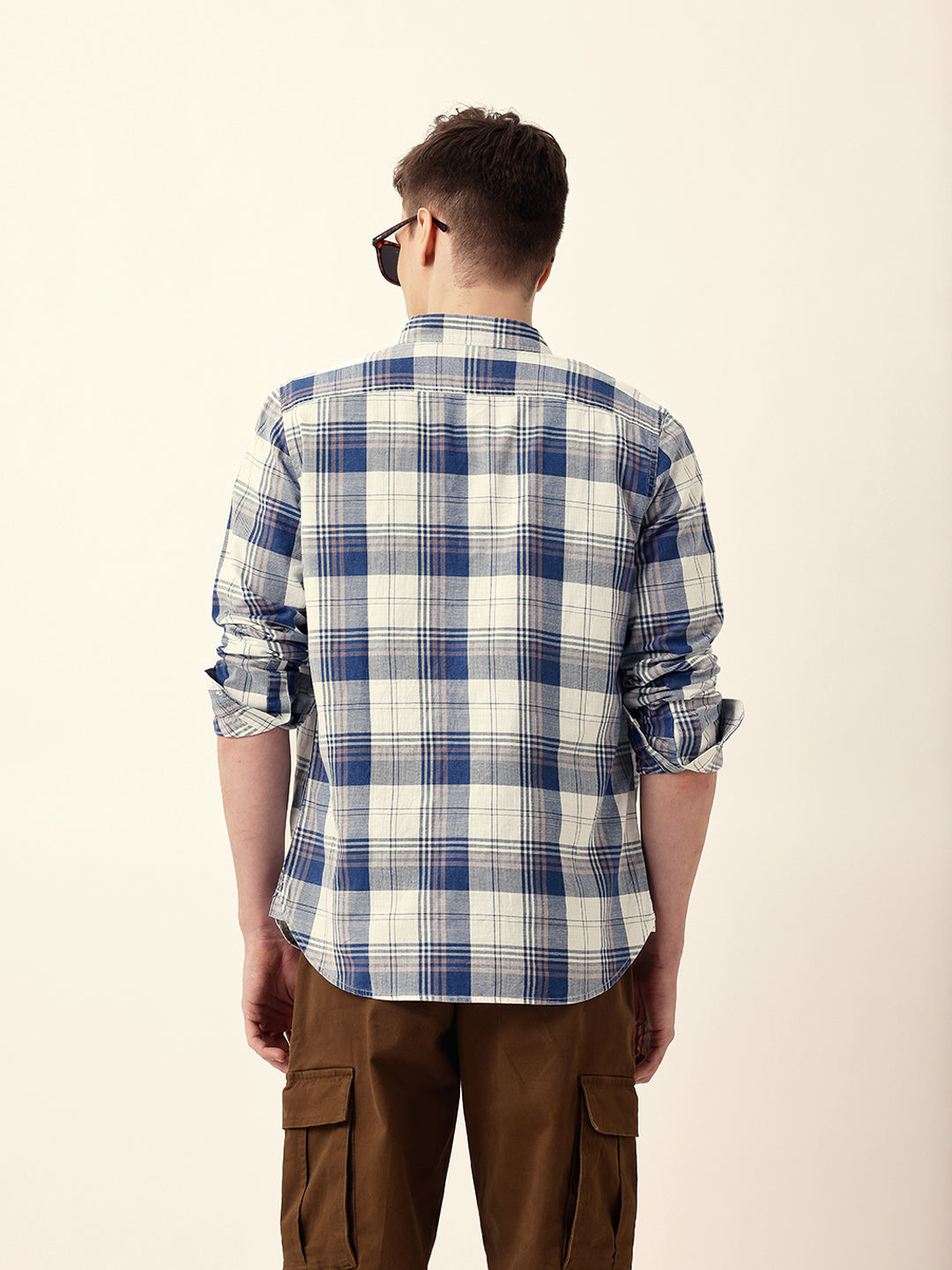 Shop Blue Woven Checkered Slim Fit Casual Shirt Online.