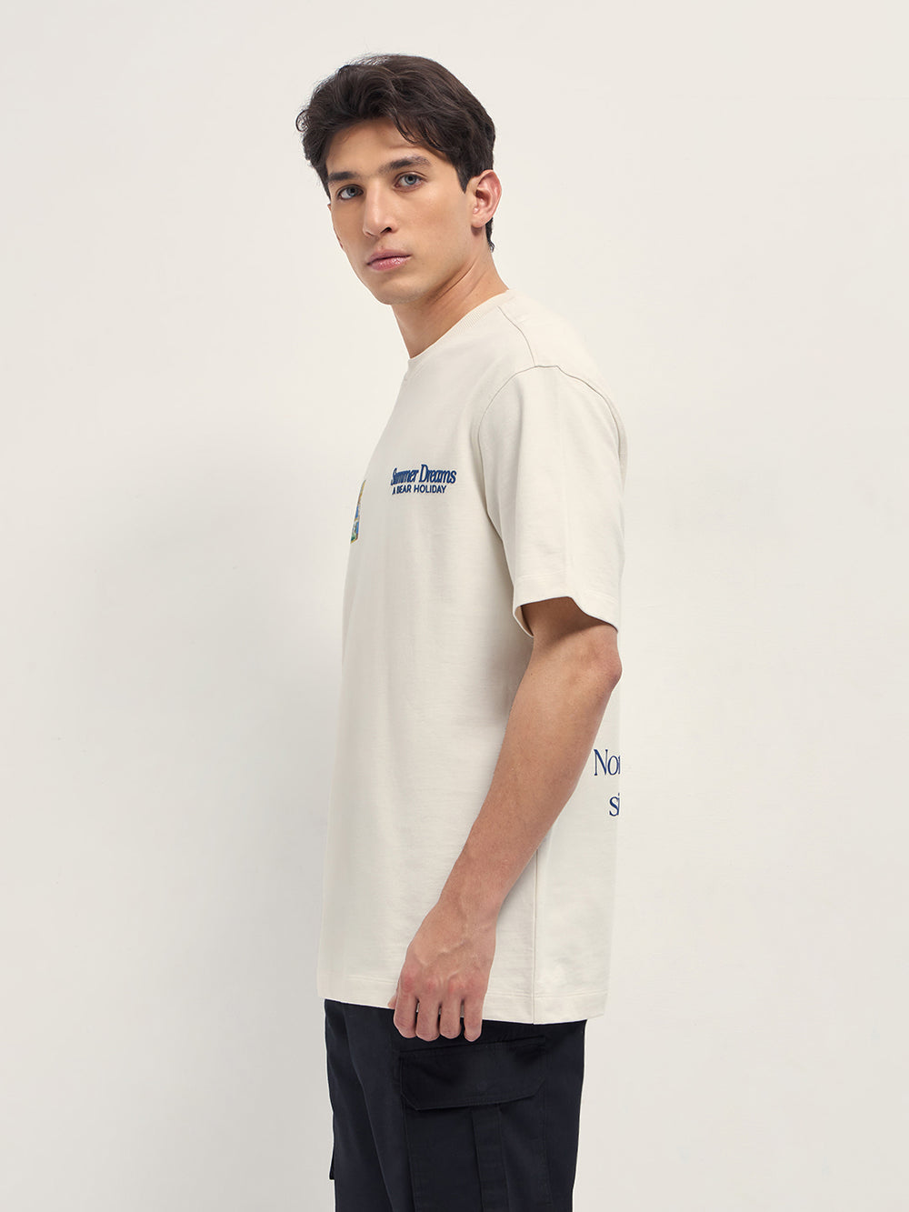 Cream Oversized Crew Neck T-Shirt with Graphic Back Print