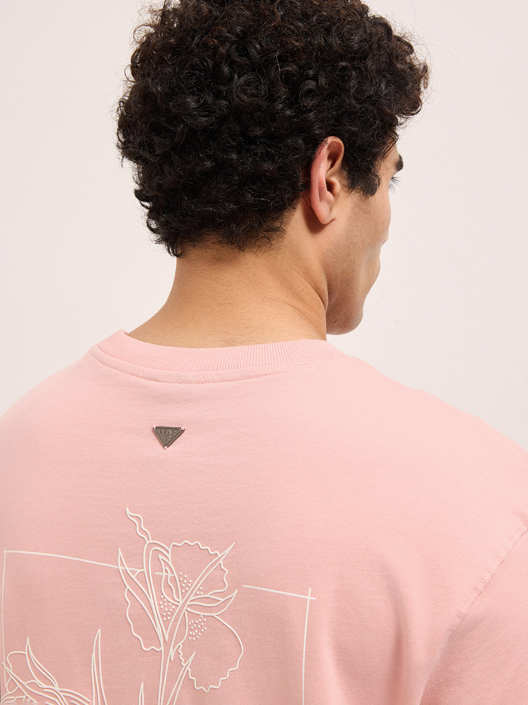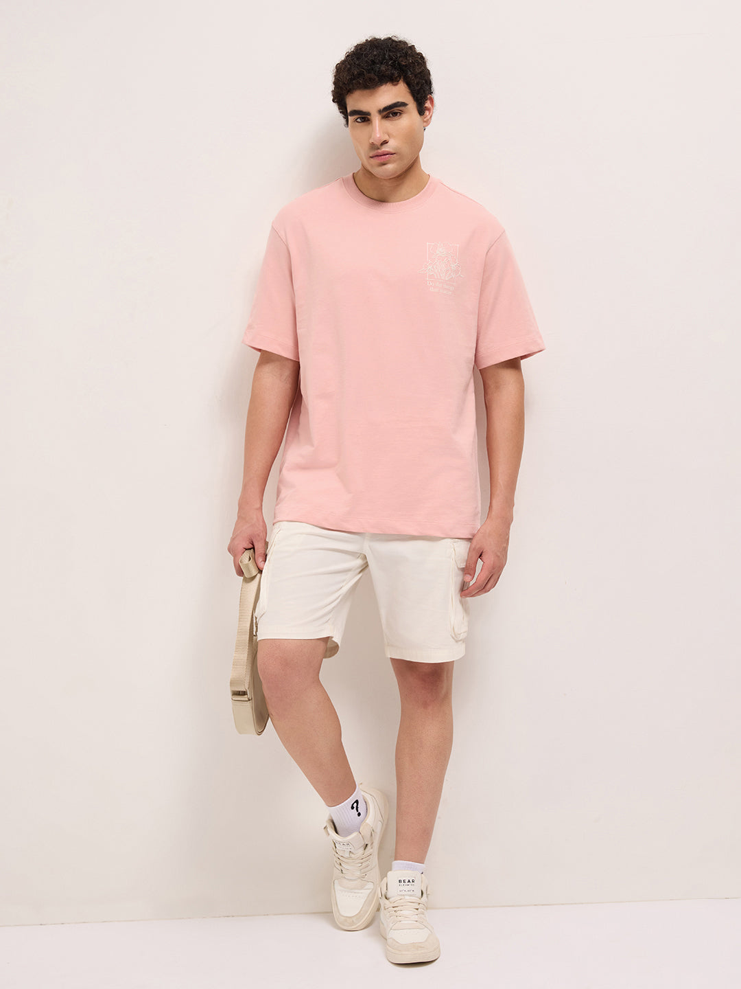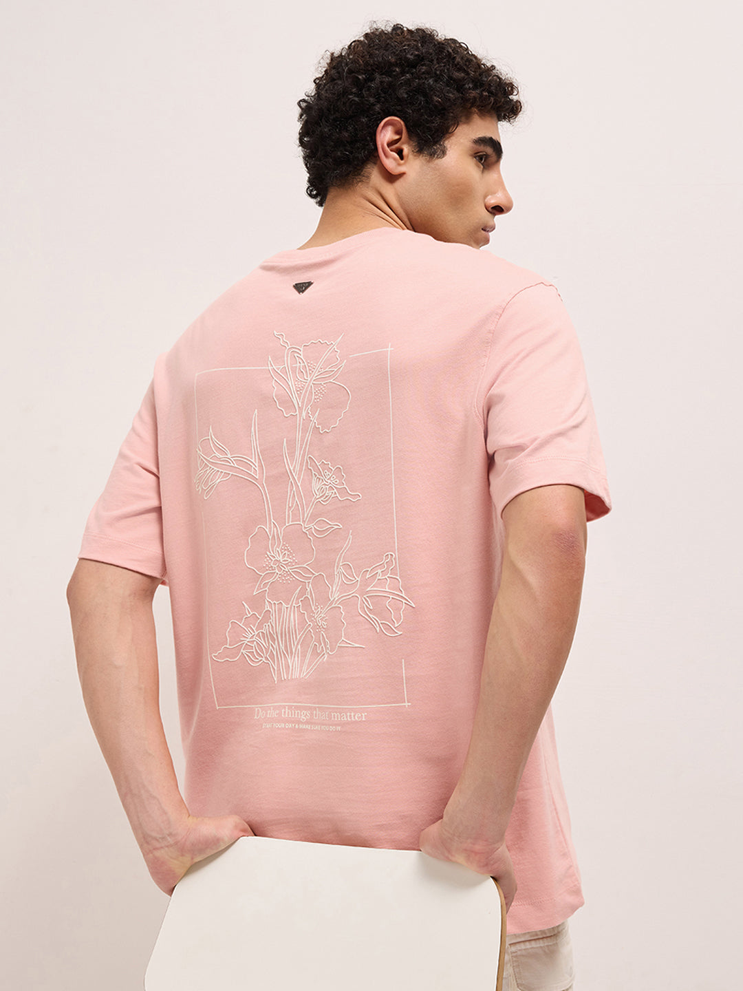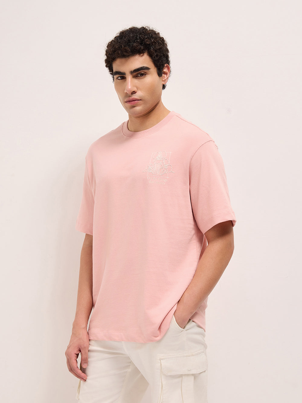 Pink Oversized Crew Neck T-Shirt with Floral HD Graphic Print