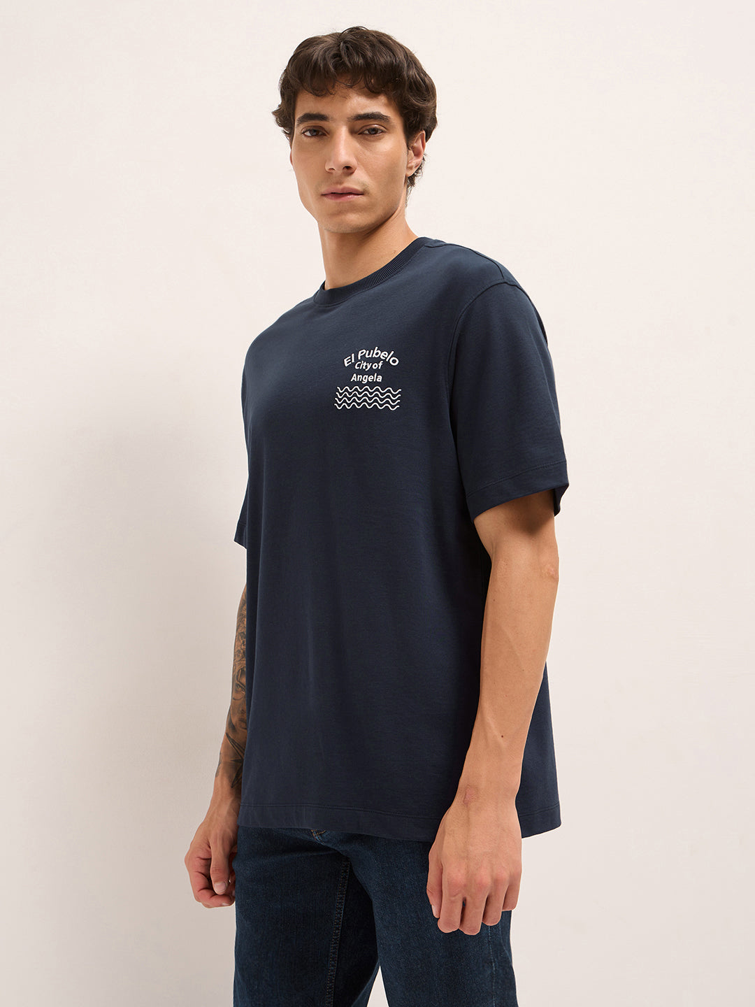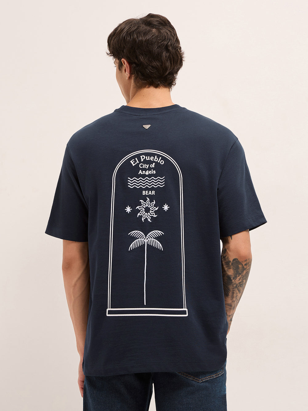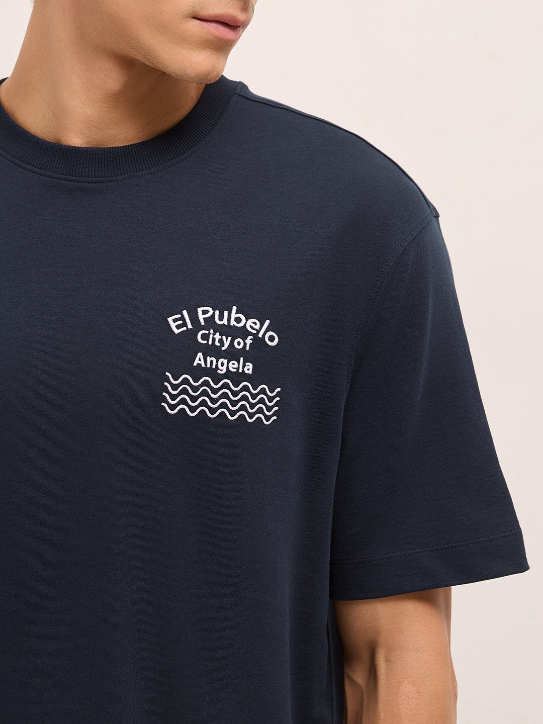 Navy Oversized Crew Neck T-Shirt with “El Pueblo” Chest Print & Arched Graphic Back