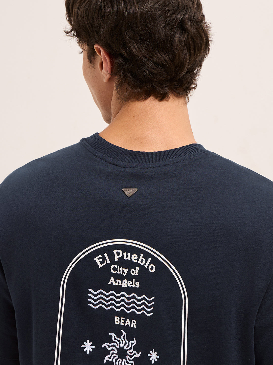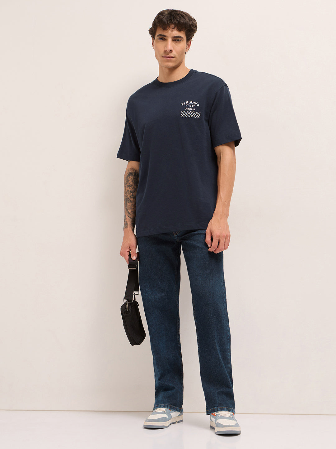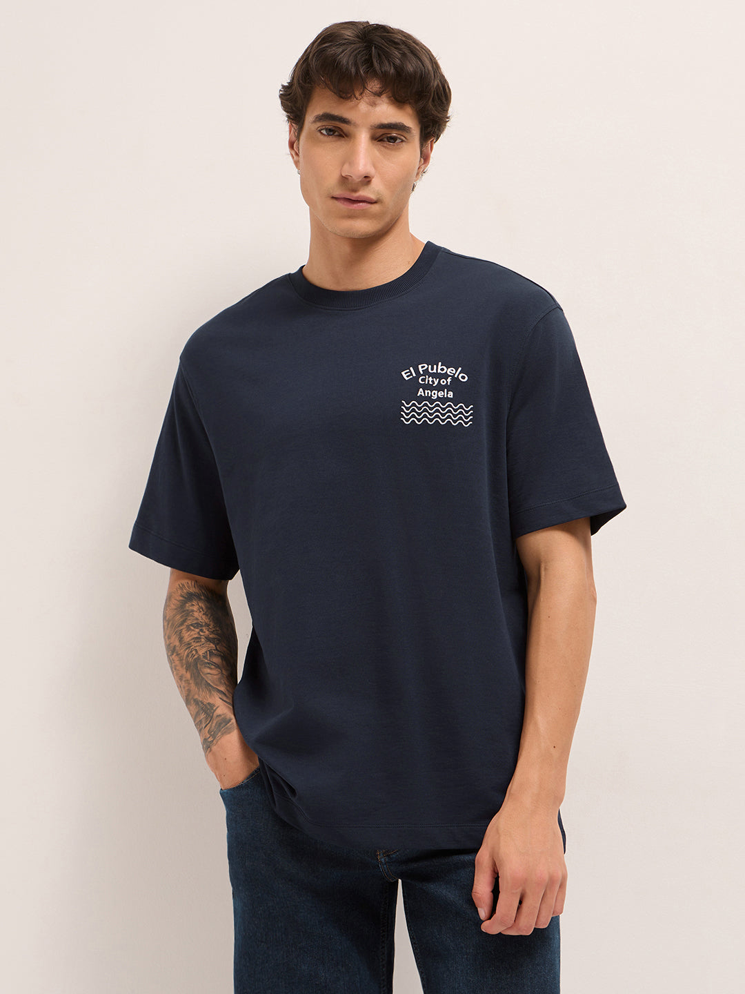Navy Oversized Crew Neck T-Shirt with “El Pueblo” Chest Print & Arched Graphic Back
