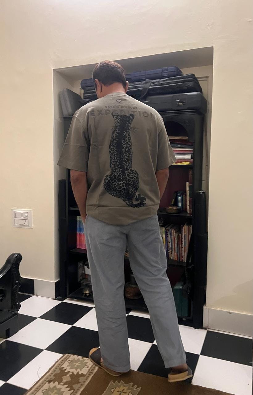 Back Design: Large leopard illustration with "Safari Culture Expedition" text on back