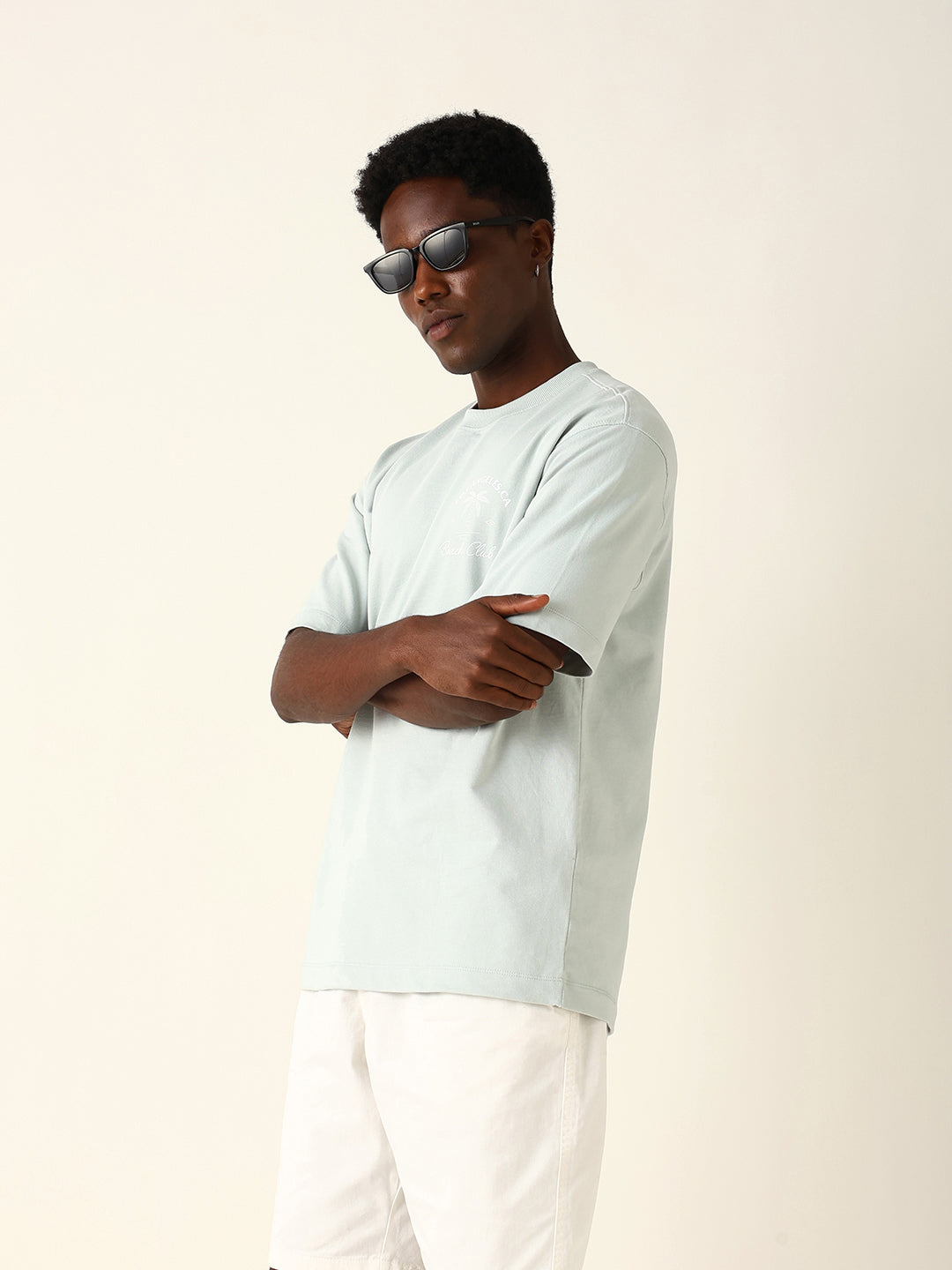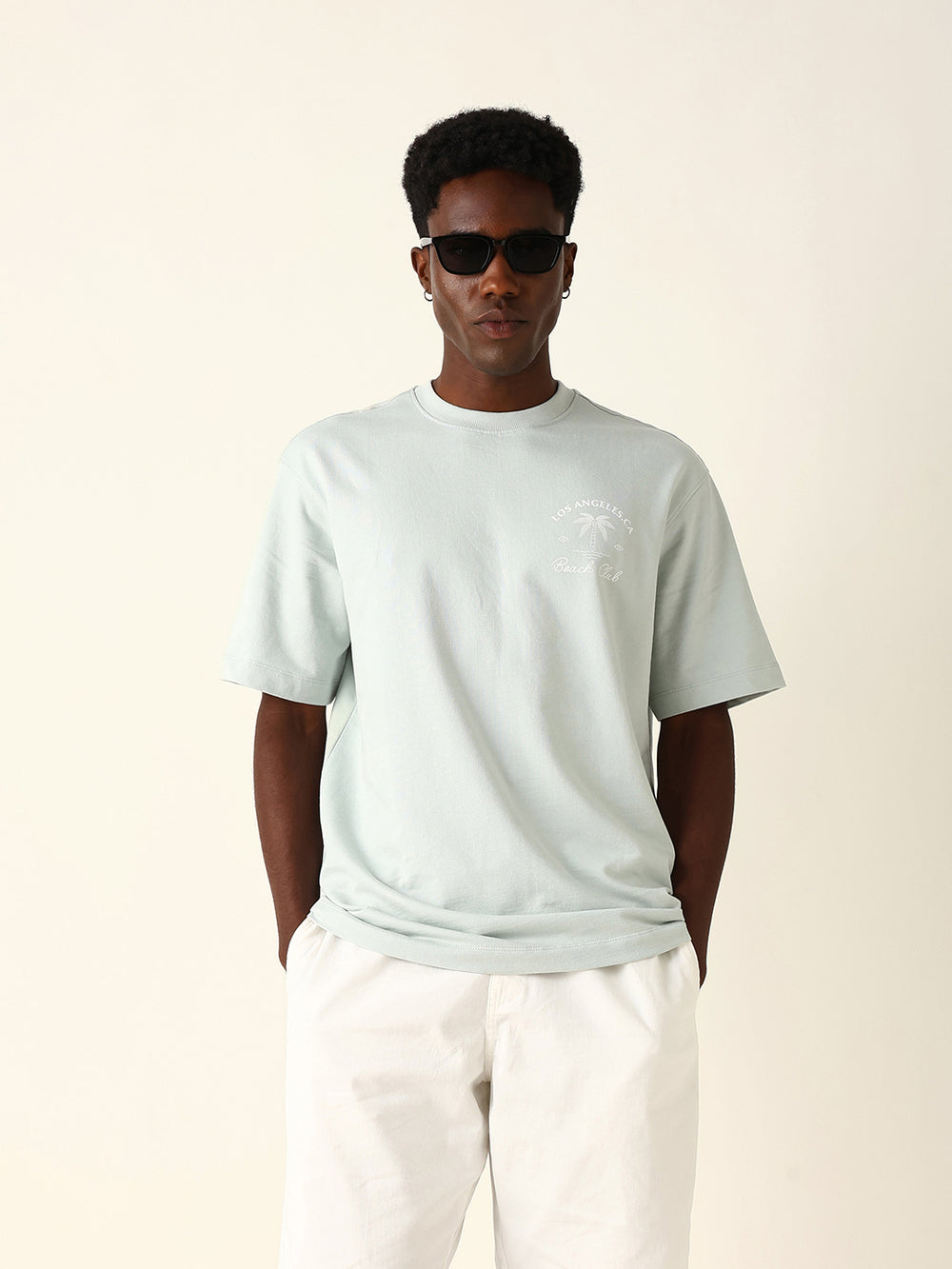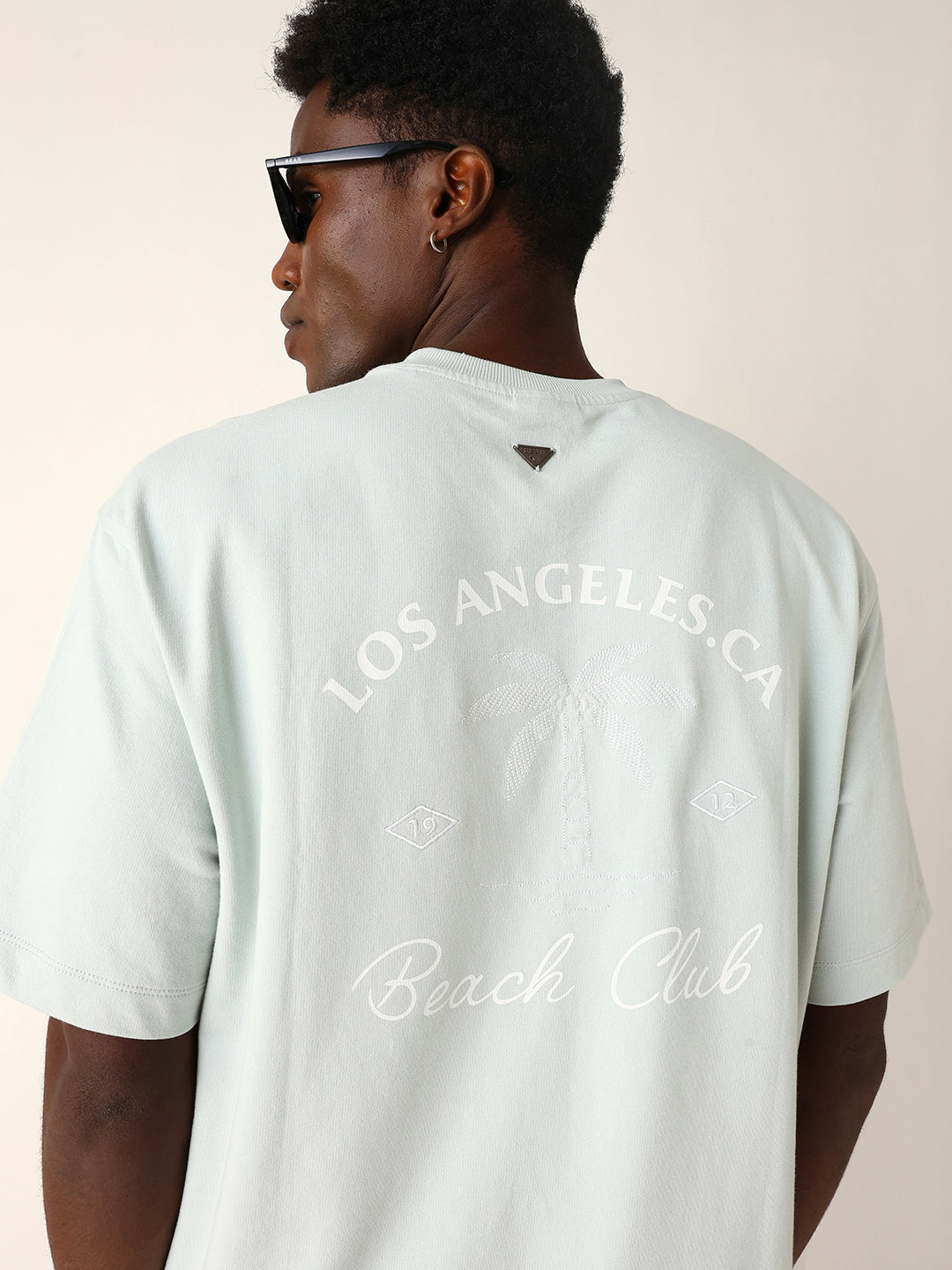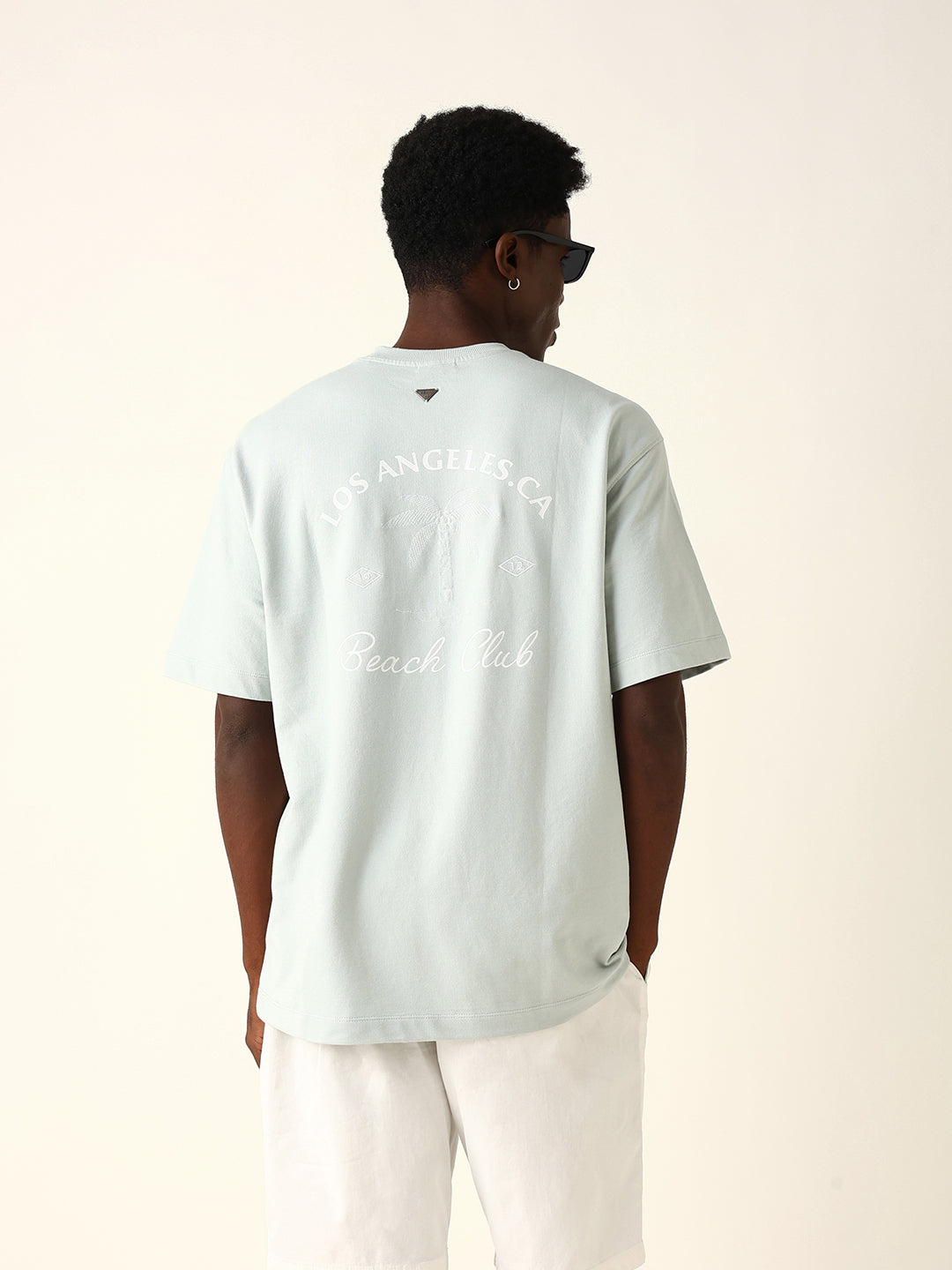 Mint Green Crew Neck Oversized T-Shirt with Palm Tree Back Print