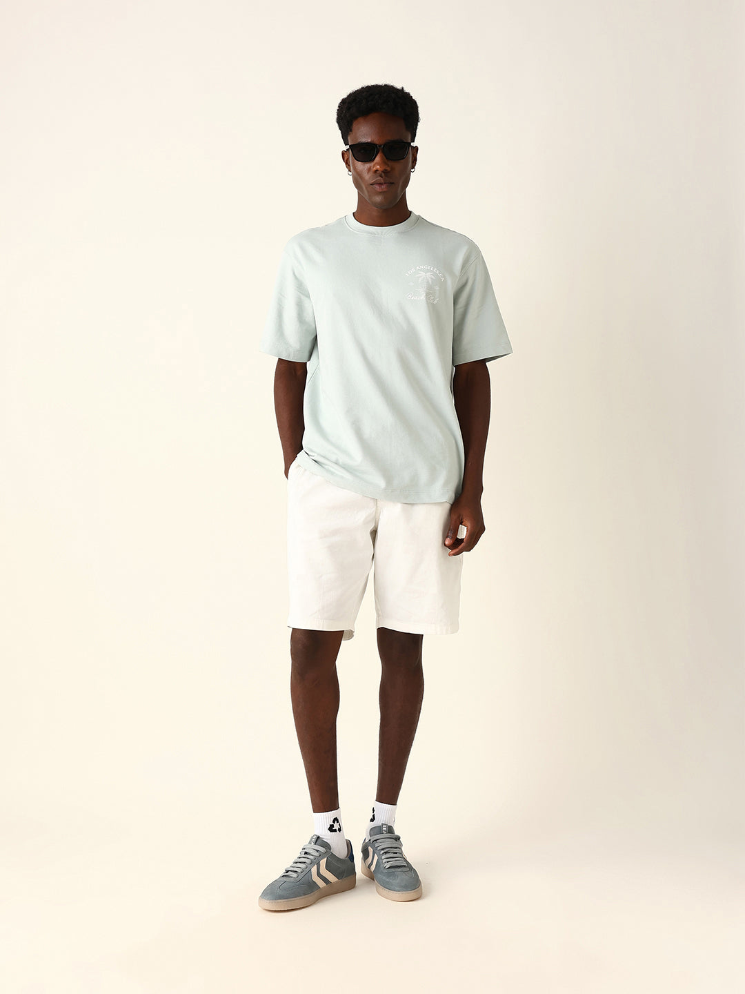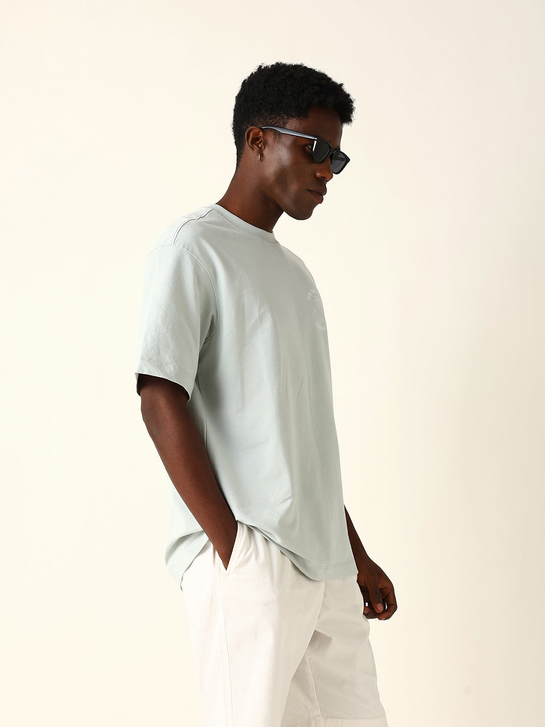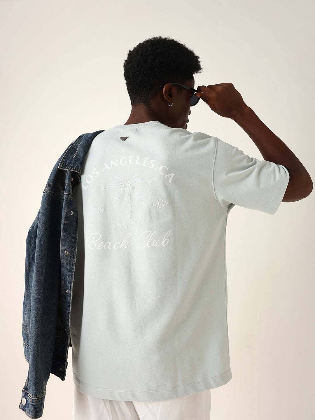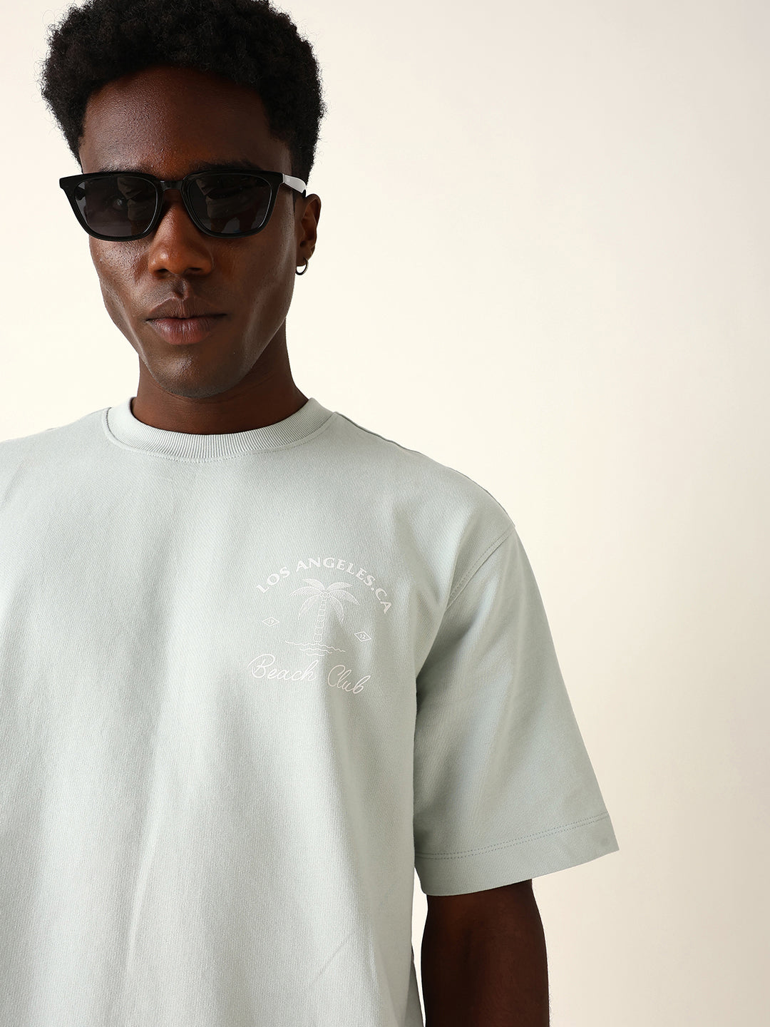 Mint Green Crew Neck Oversized T-Shirt with Palm Tree Back Print