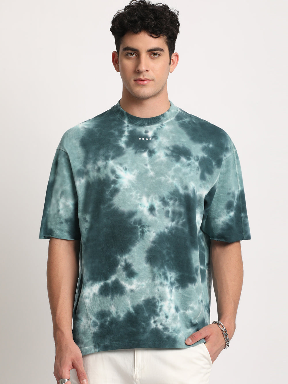 Men Blue Tie and Dye Oversized Fit Round Neck T-shirt