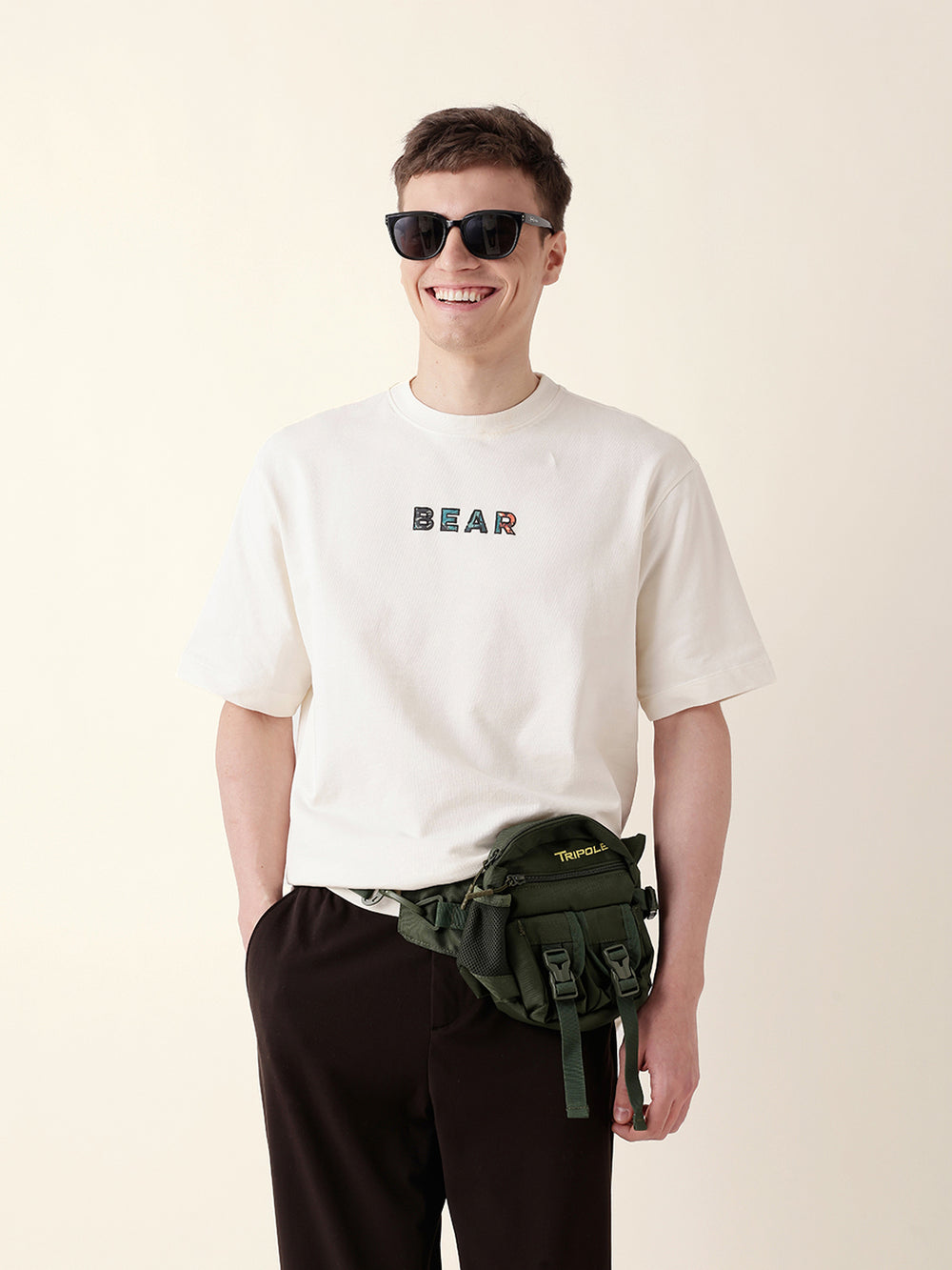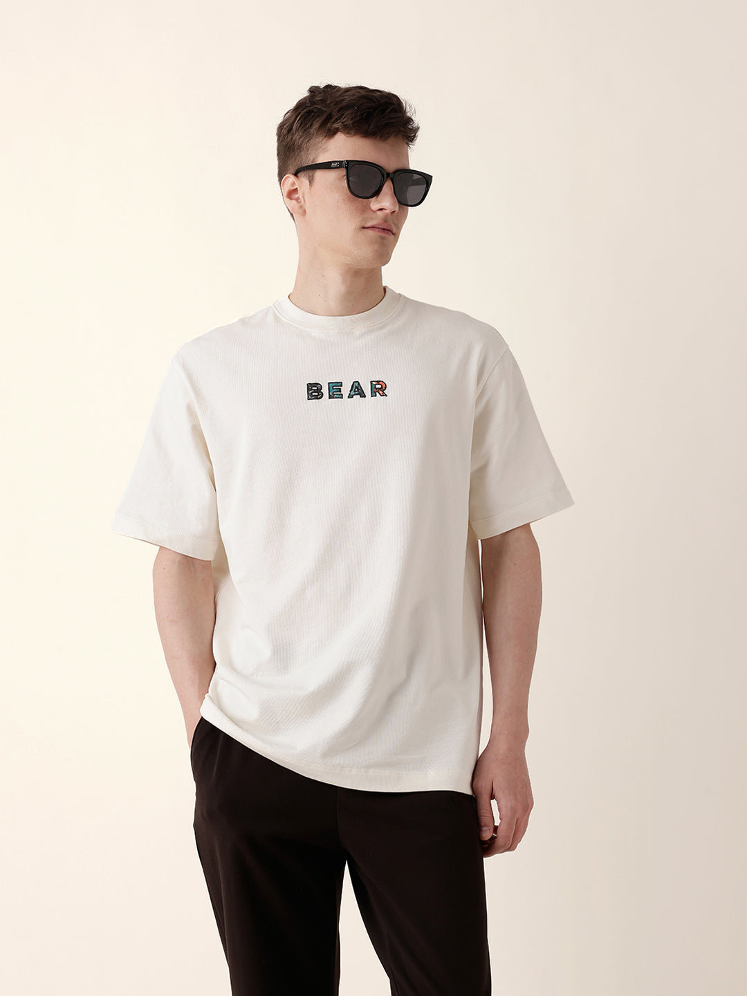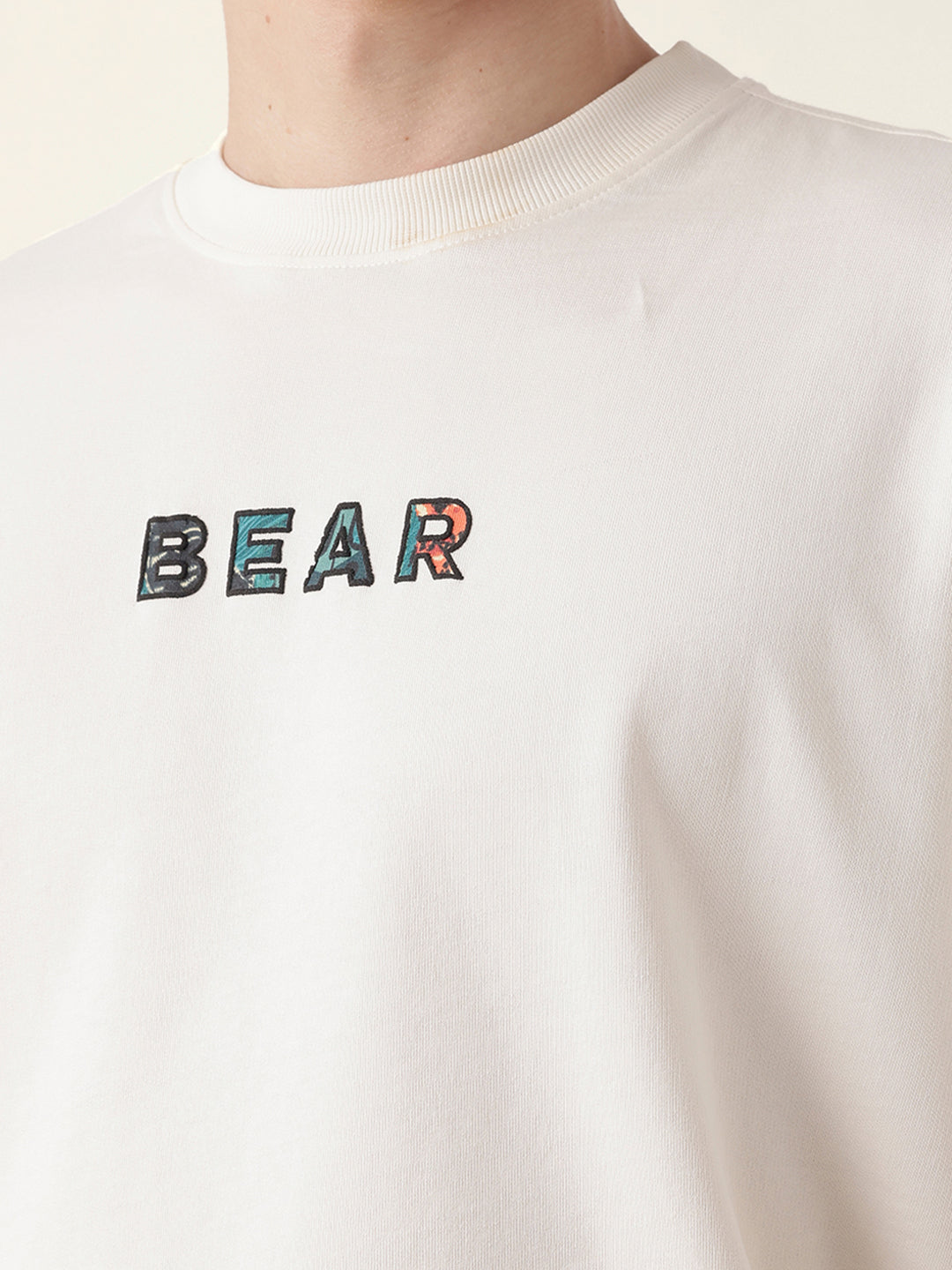 Shop Cream Oversized T-Shirt with “BEAR” Front Text and Artistic Animal Collage Back Print Online