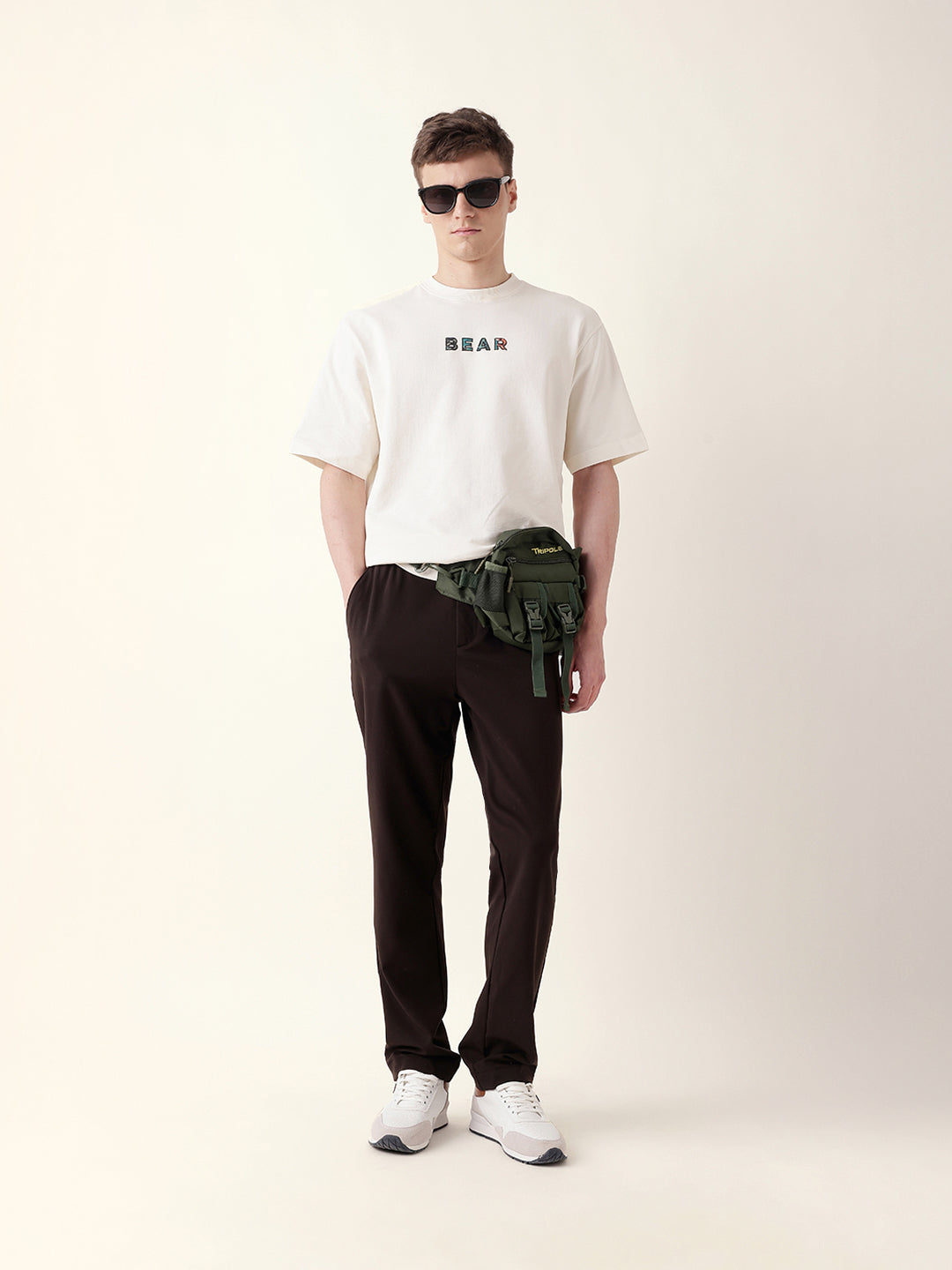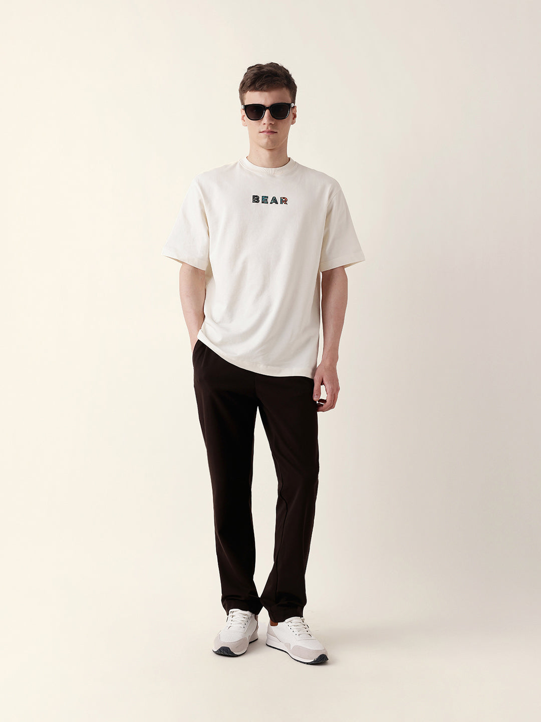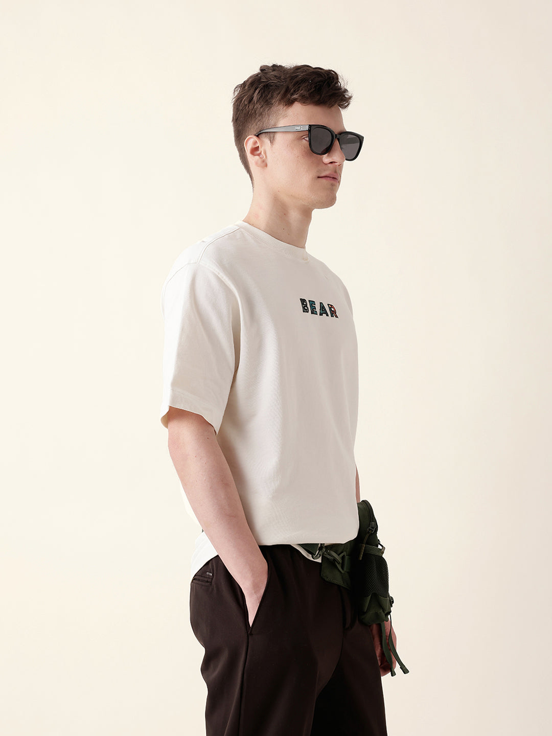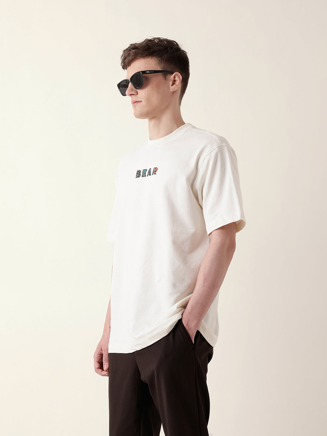 Shop Cream Oversized T-Shirt with “BEAR” Front Text and Artistic Animal Collage Back Print Online