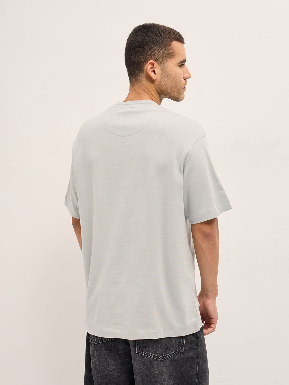 Light Grey Triangular Patch with Graphic Printed Oversize Crew Neck T-shirt
