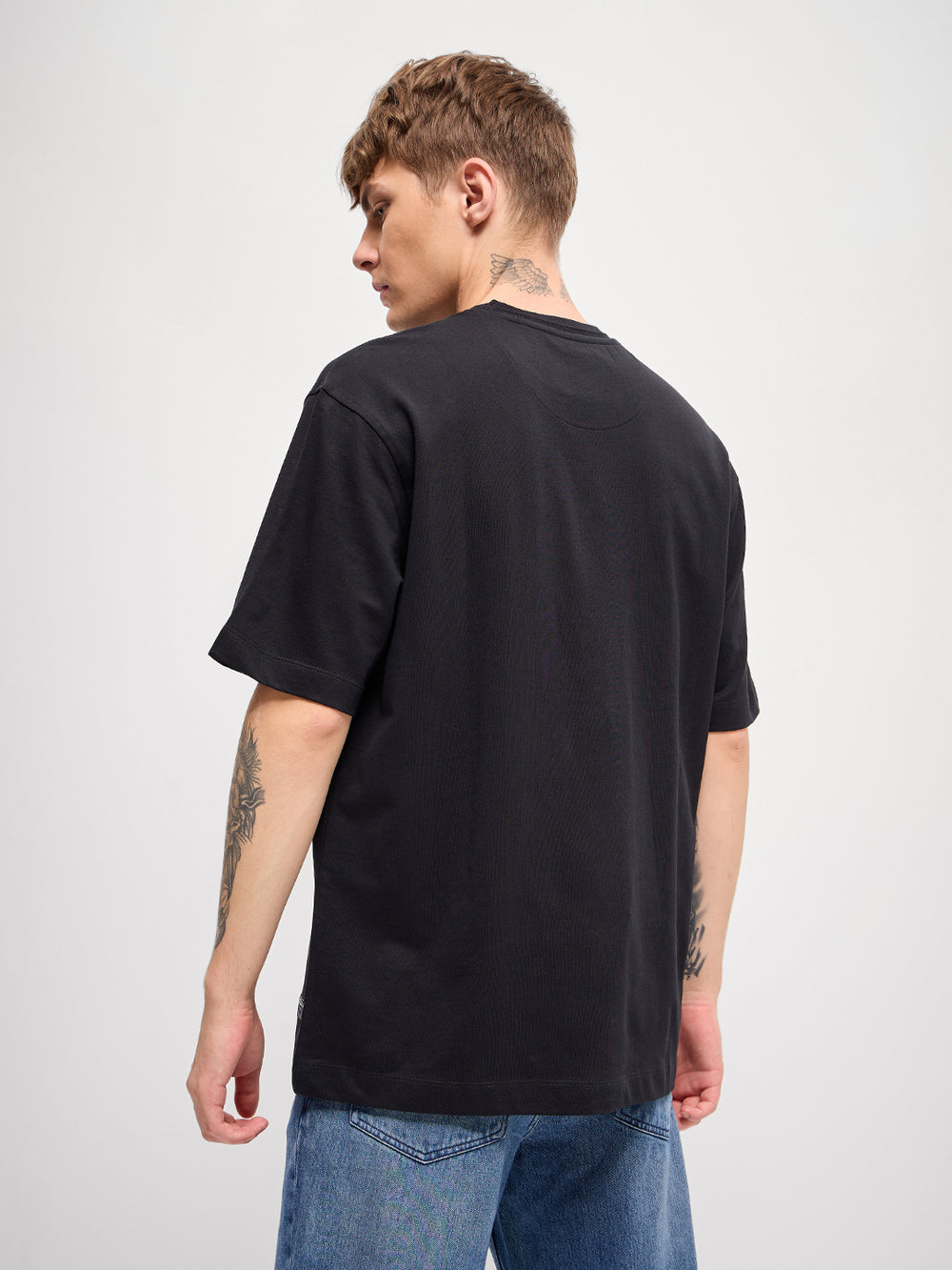 Black 3D Embossed Graphic print Crew Neck T-Shirt