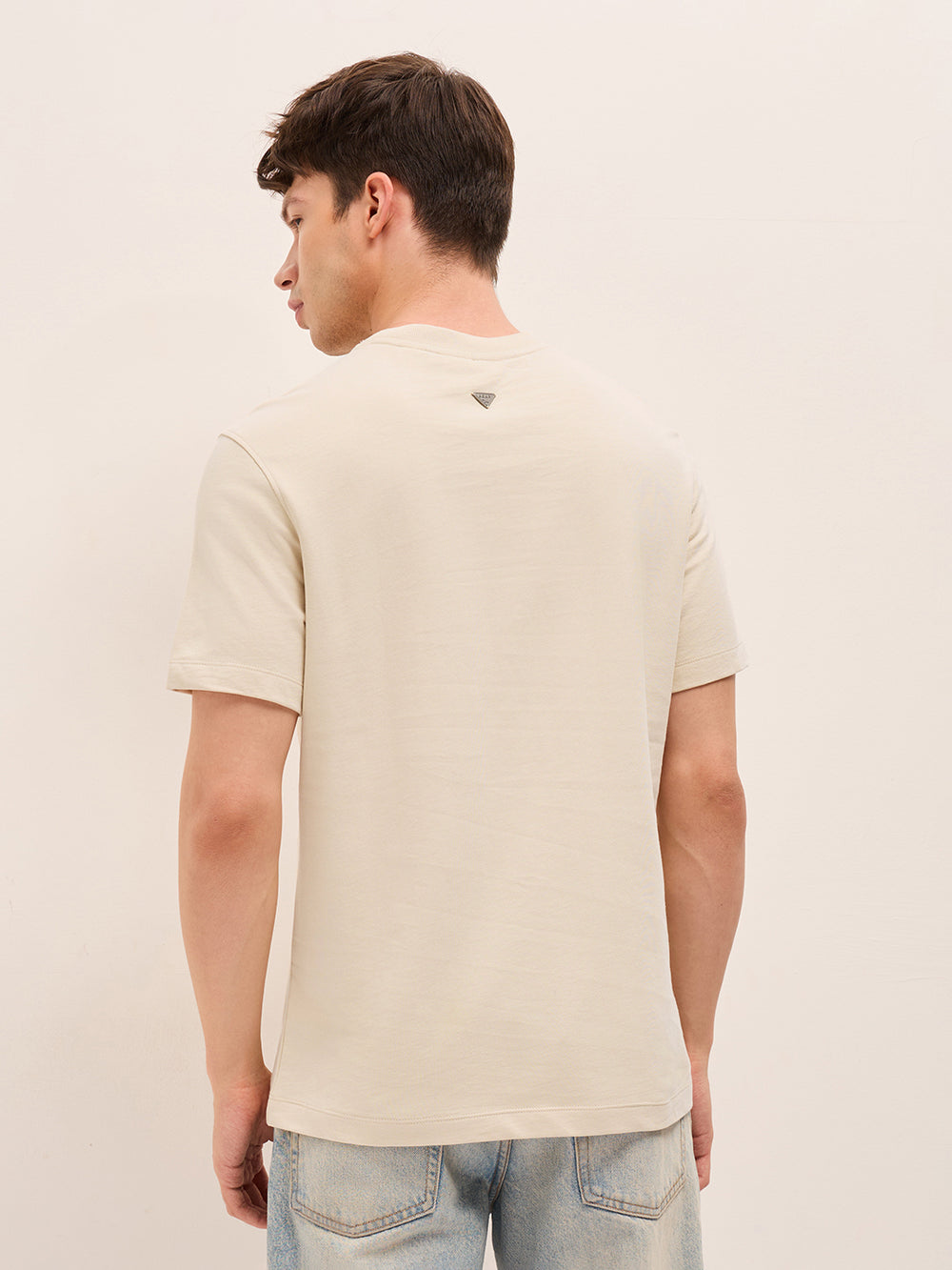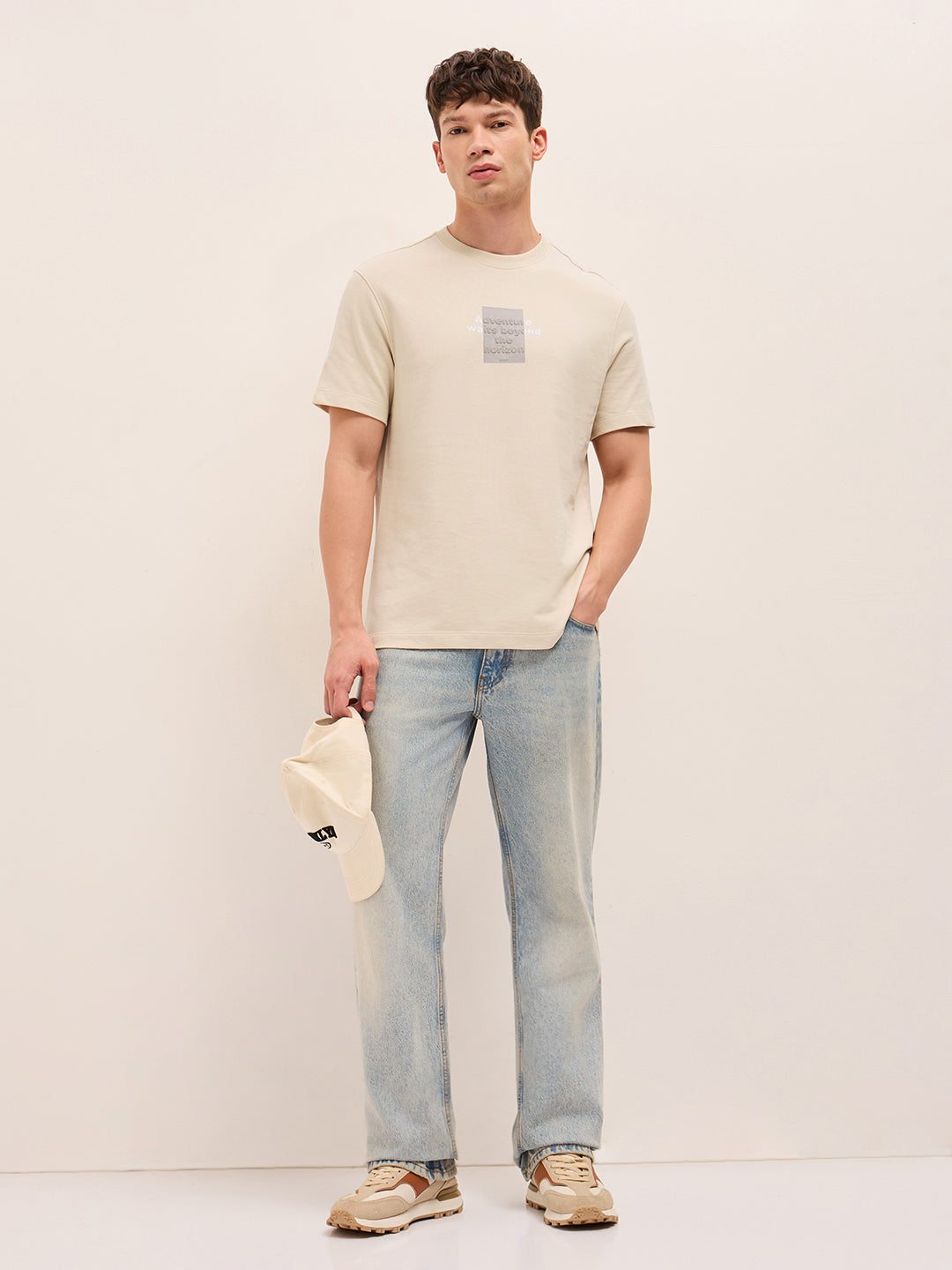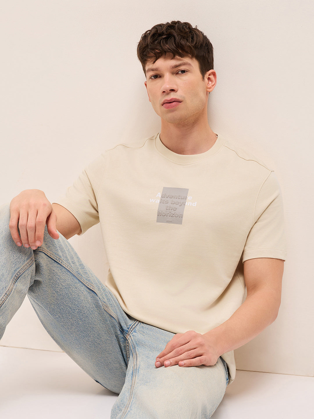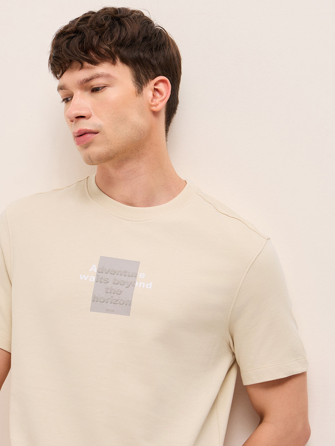 Beige Crew Neck Regular Fit T-Shirt with Reflective Graphic Print