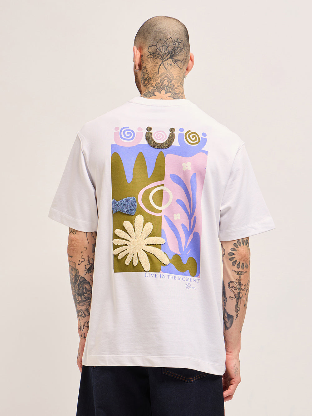 White Oversize T-Shirt with Chenille & Abstract Graphic Back Print