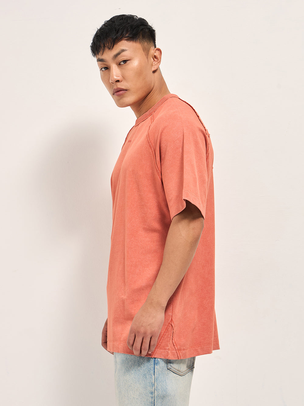 Orange Acid Wash Oversized T-Shirt with Back "Bear" Appliqué Design