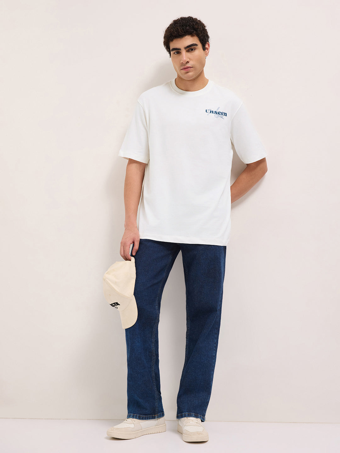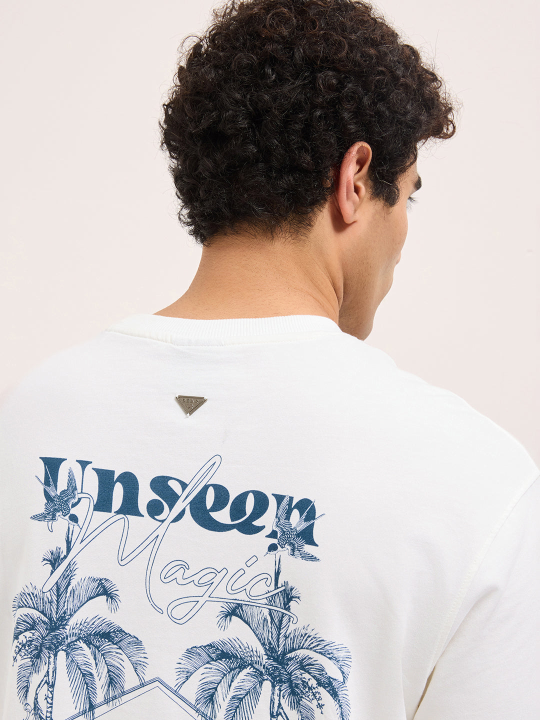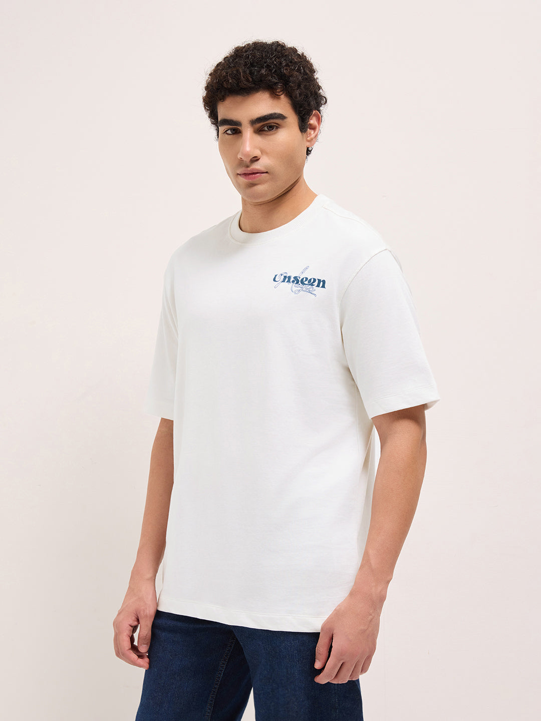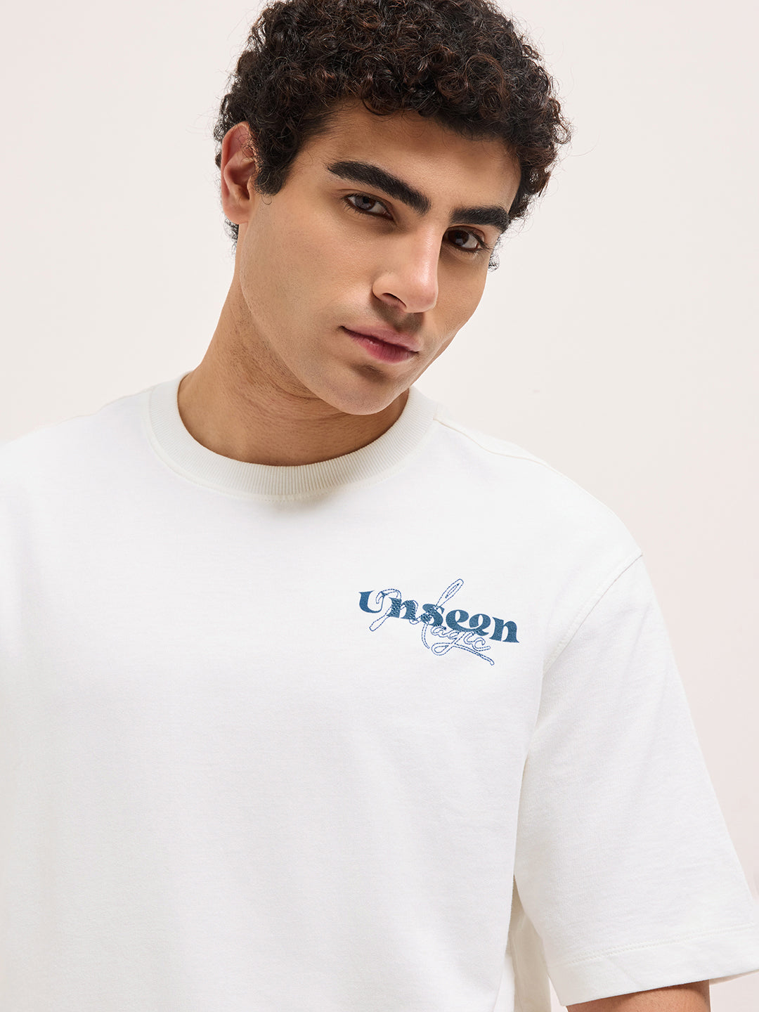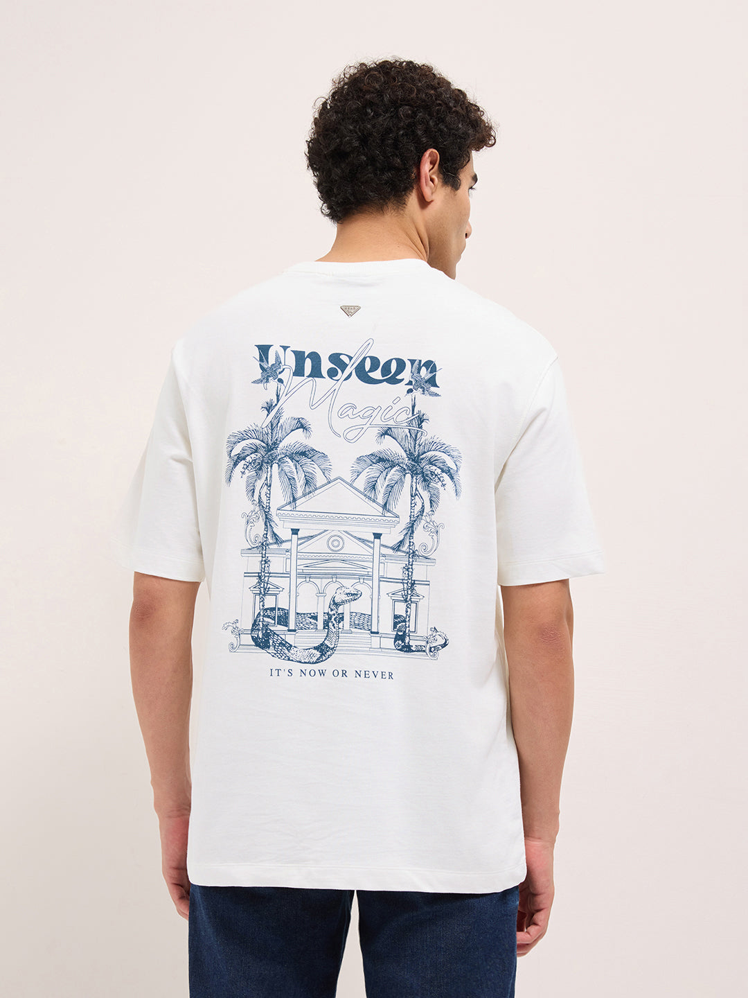 White Crew Neck Oversized T-Shirt with “Unseen Magic” Graphic Print on Back