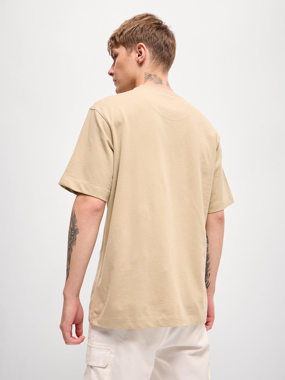 Beige Graphic with Textured Print Oversize Crew Neck T-shirt