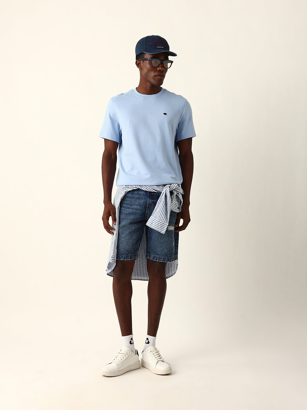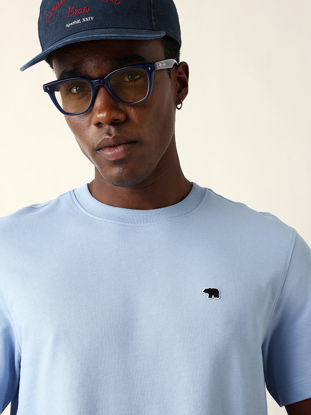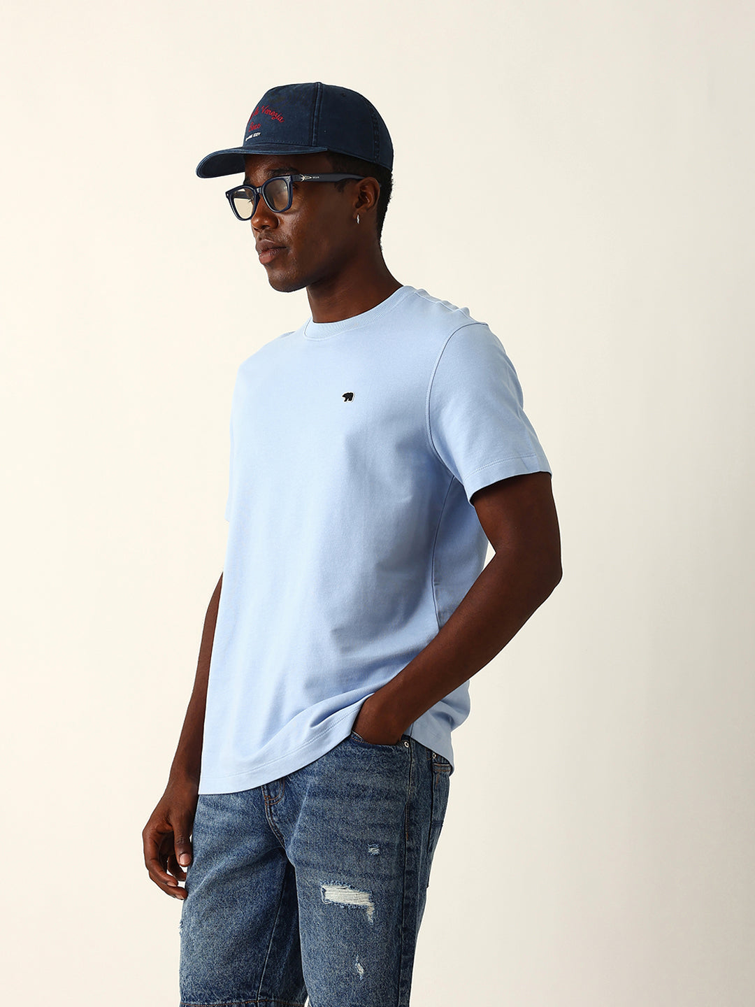 Shop Ice Blue Crew Neck T-Shirt with Bear Logo Embroidery Online