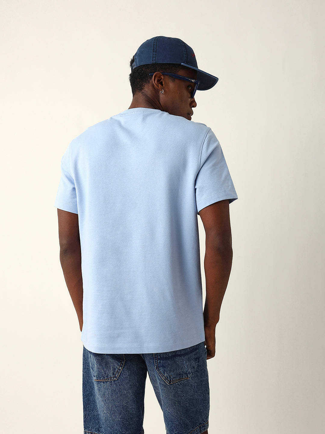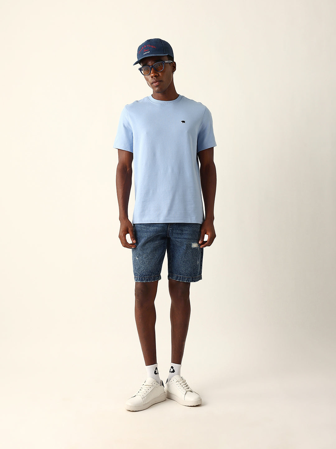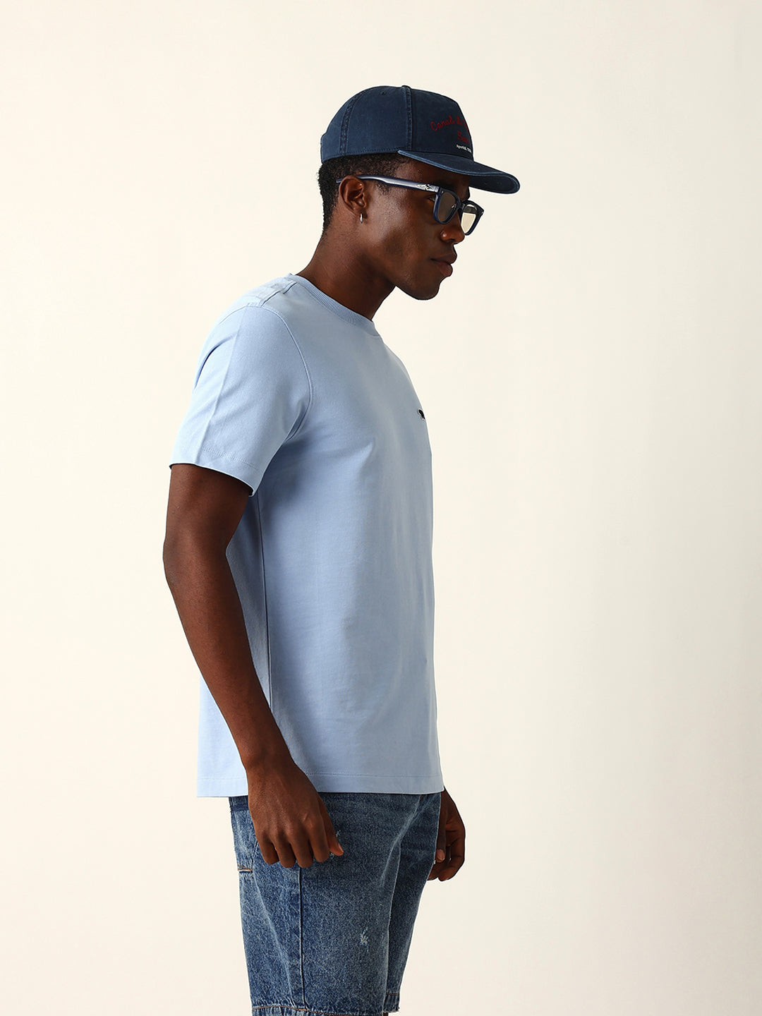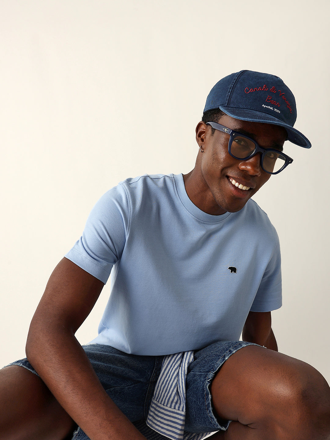 Shop Ice Blue Crew Neck T-Shirt with Bear Logo Embroidery Online