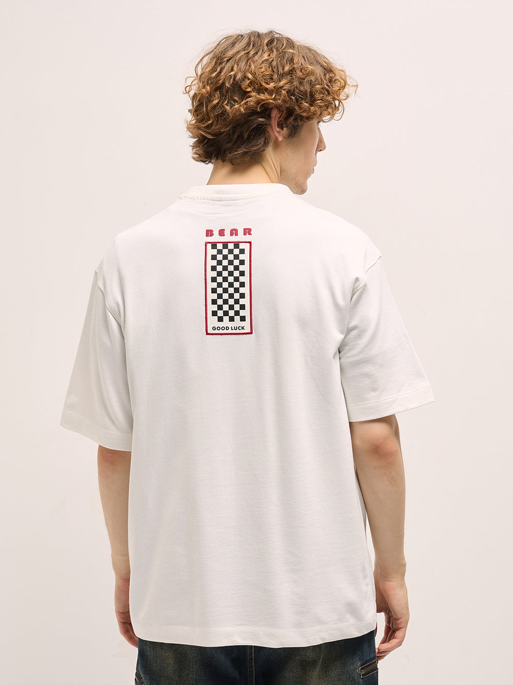 Shop White Sporty Tee with Checkerboard Back and Embroidered Front Logo Online