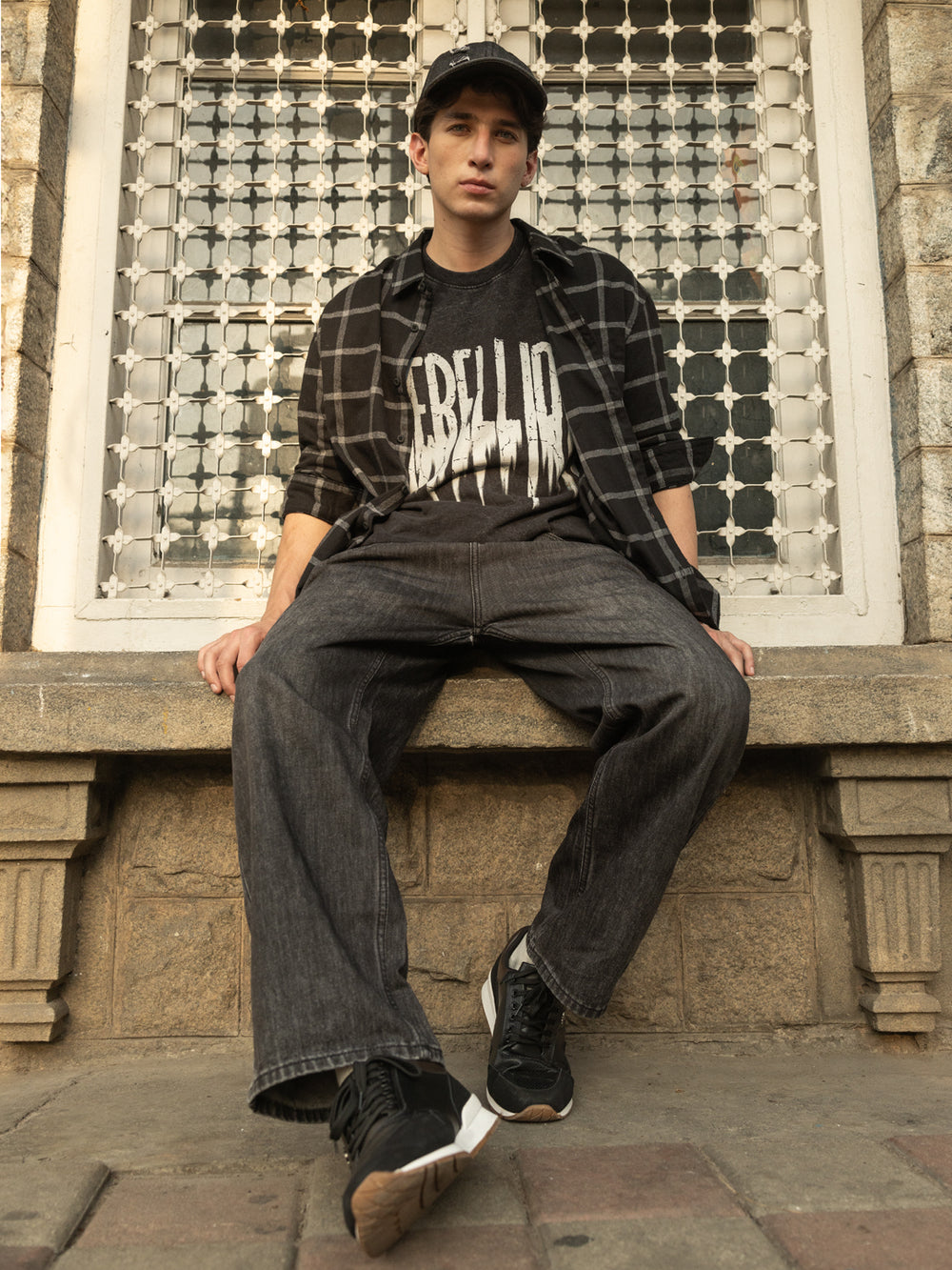 Shop Black Oversized T-Shirt with "REBELLION" Graphic Print Online
