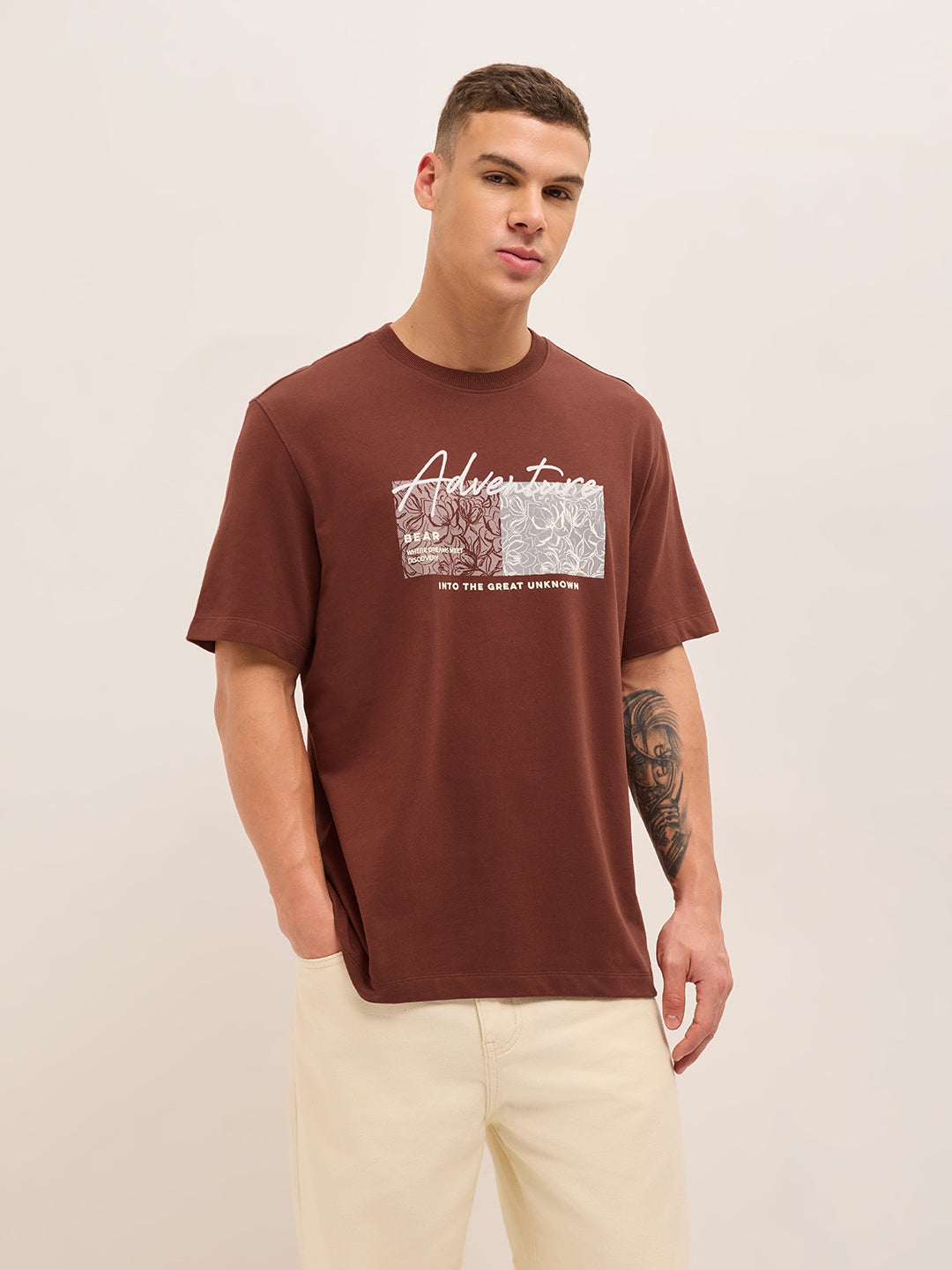 Shop Rust Crew Neck T-Shirt with Adventure Graphic Print Online
