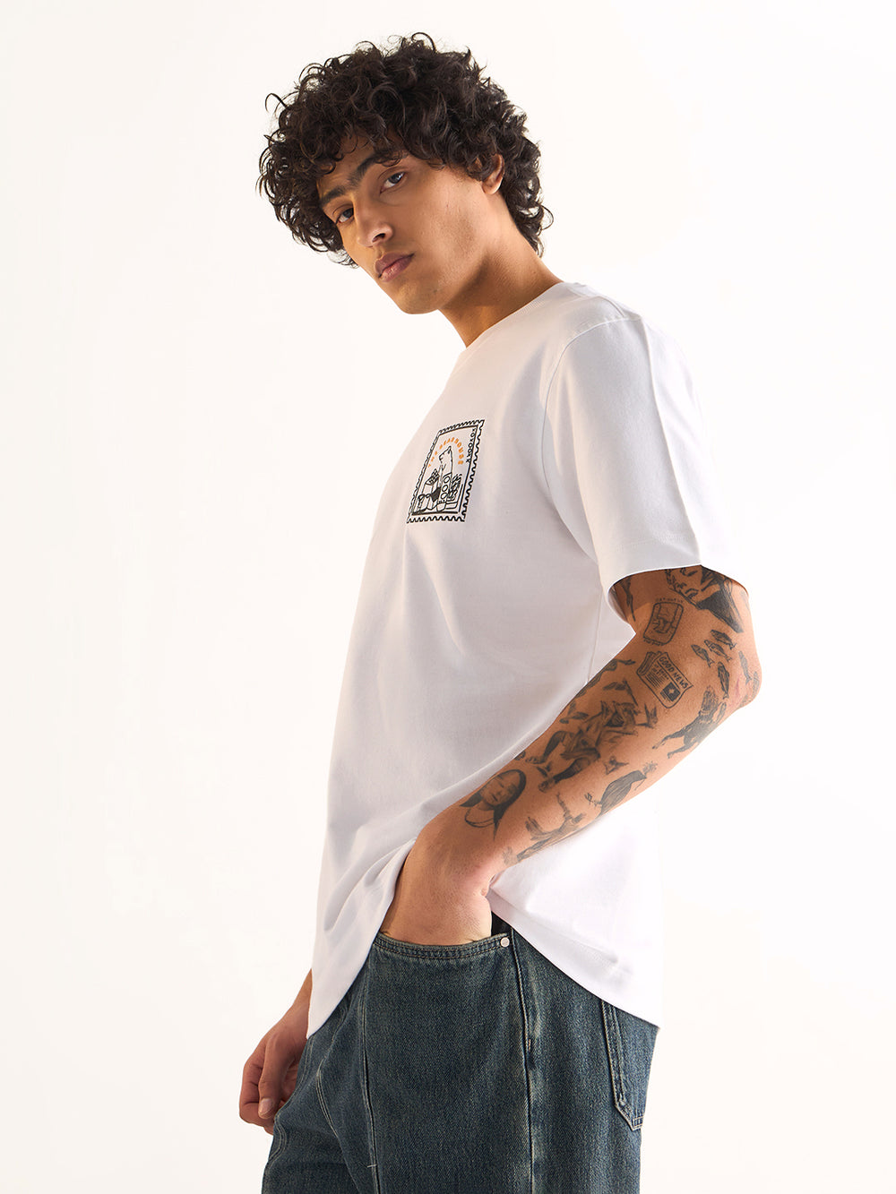 White Oversized Crew Neck T-Shirt with Back Graphic Print