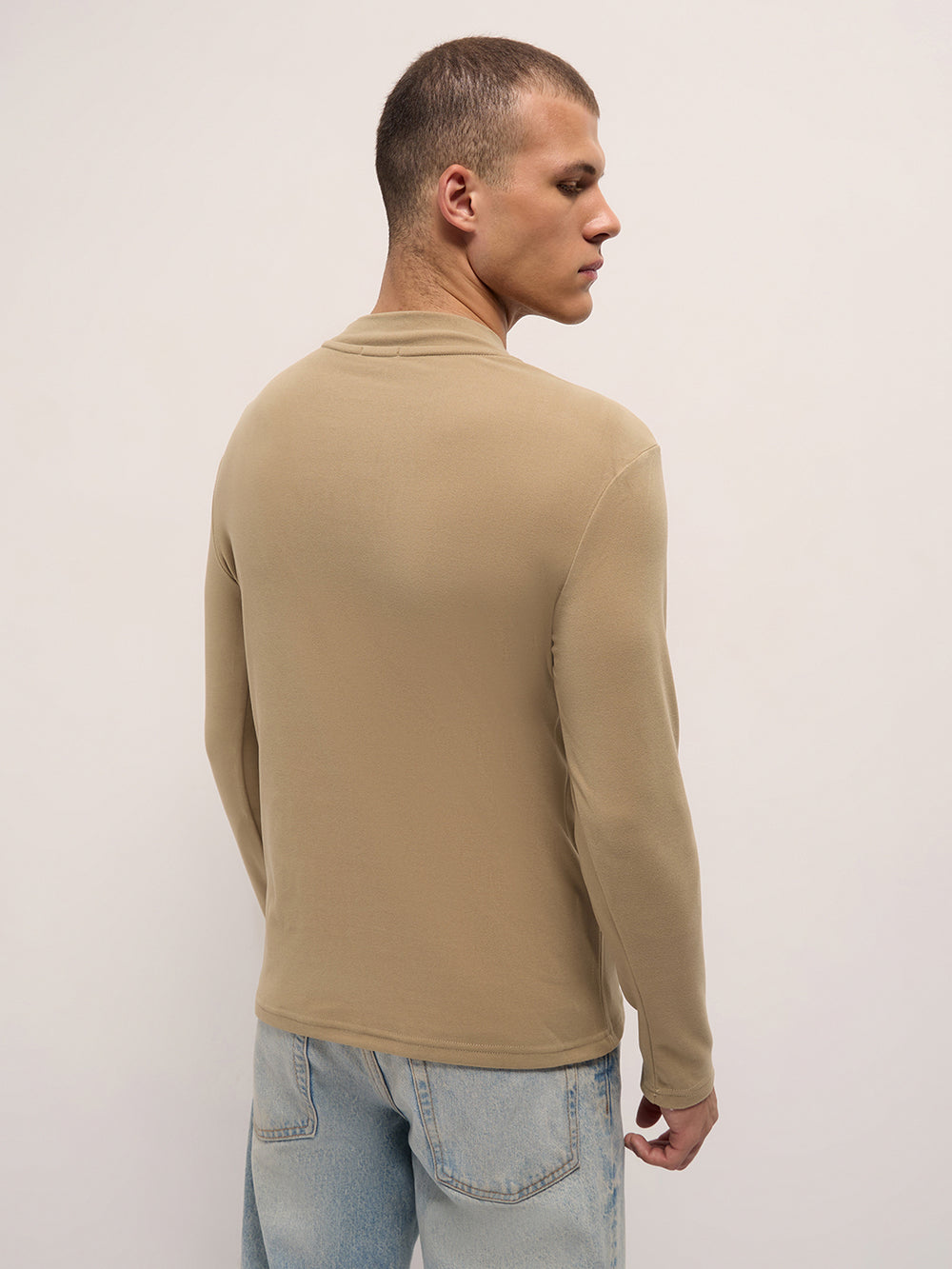 Beige Slim Fit Crew Neck T-Shirt with Soft & Stretchable Fabric