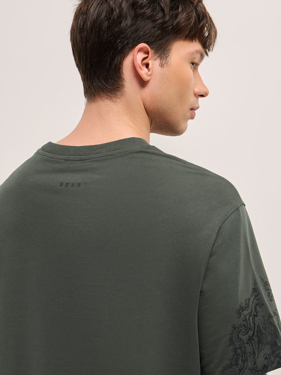 Sleeve Design: Ornamental graphic prints on both sleeves for added detailing