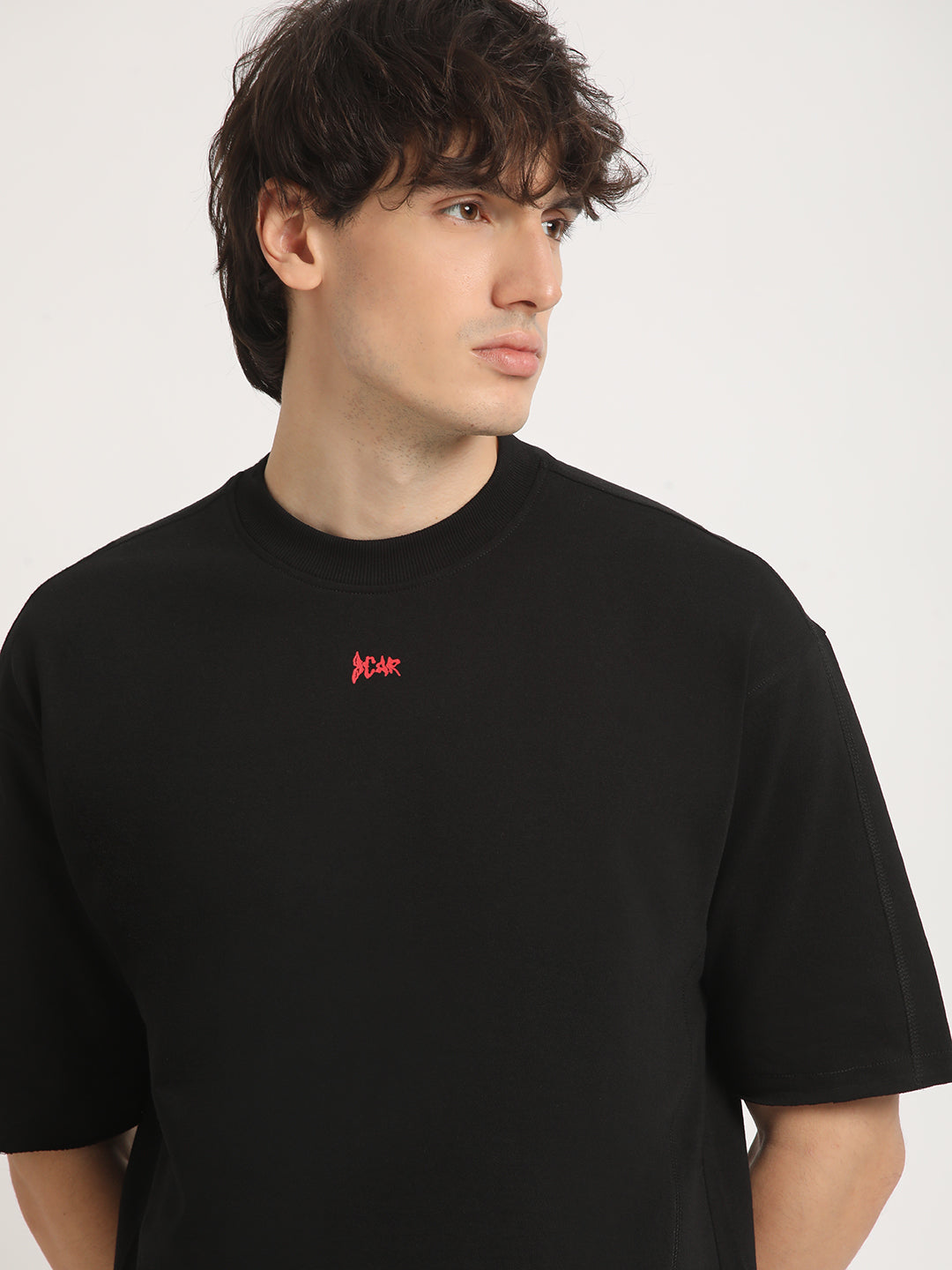 Men Black Solid Oversized Fit Round Neck T-shirt