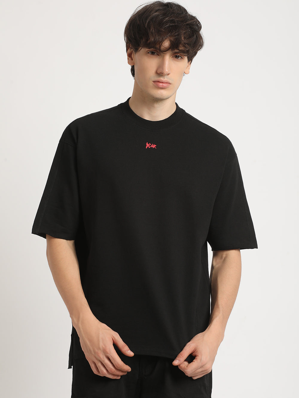 Shop Men Black Solid Oversized Fit Round Neck T-shirt Online.