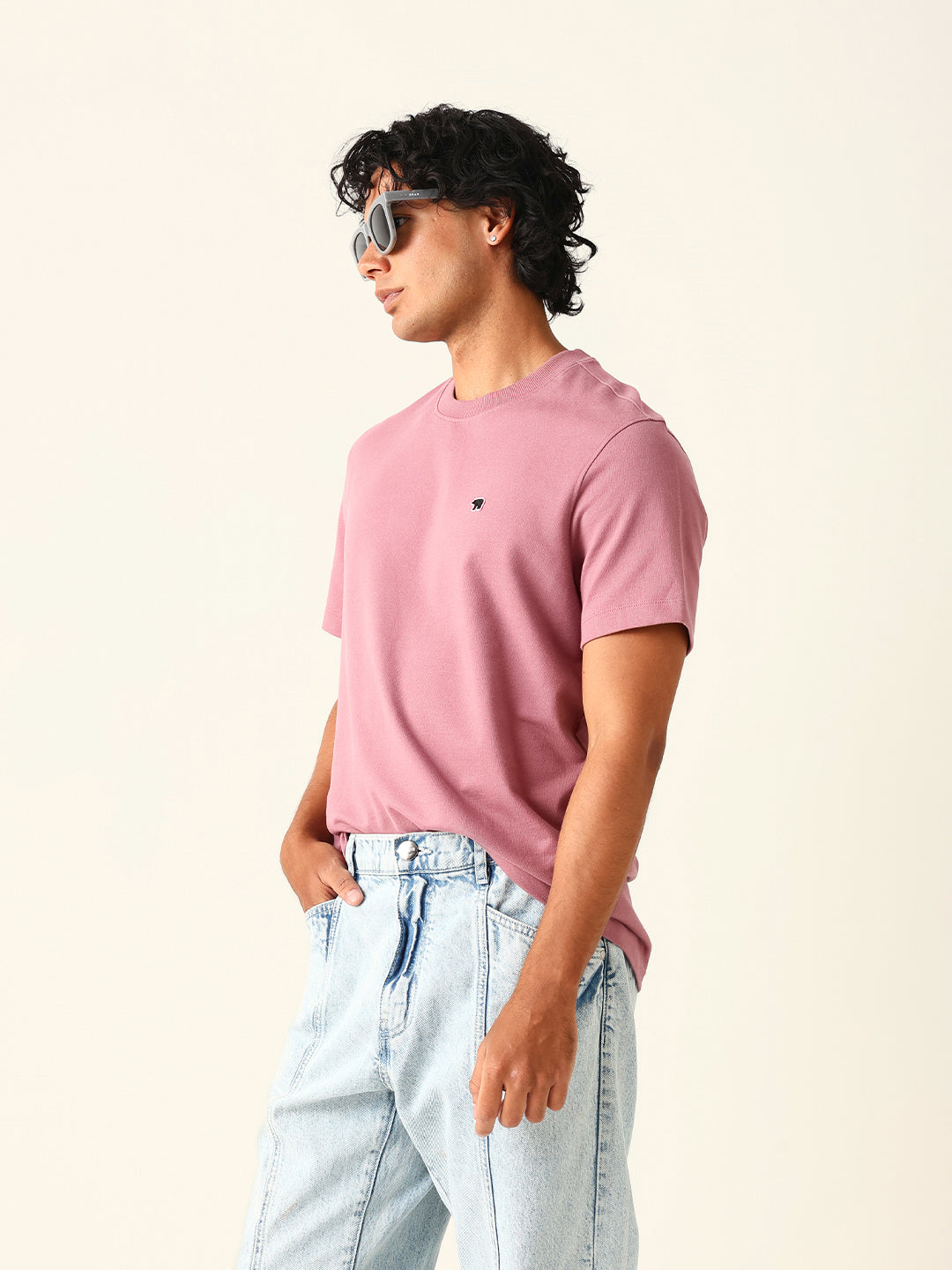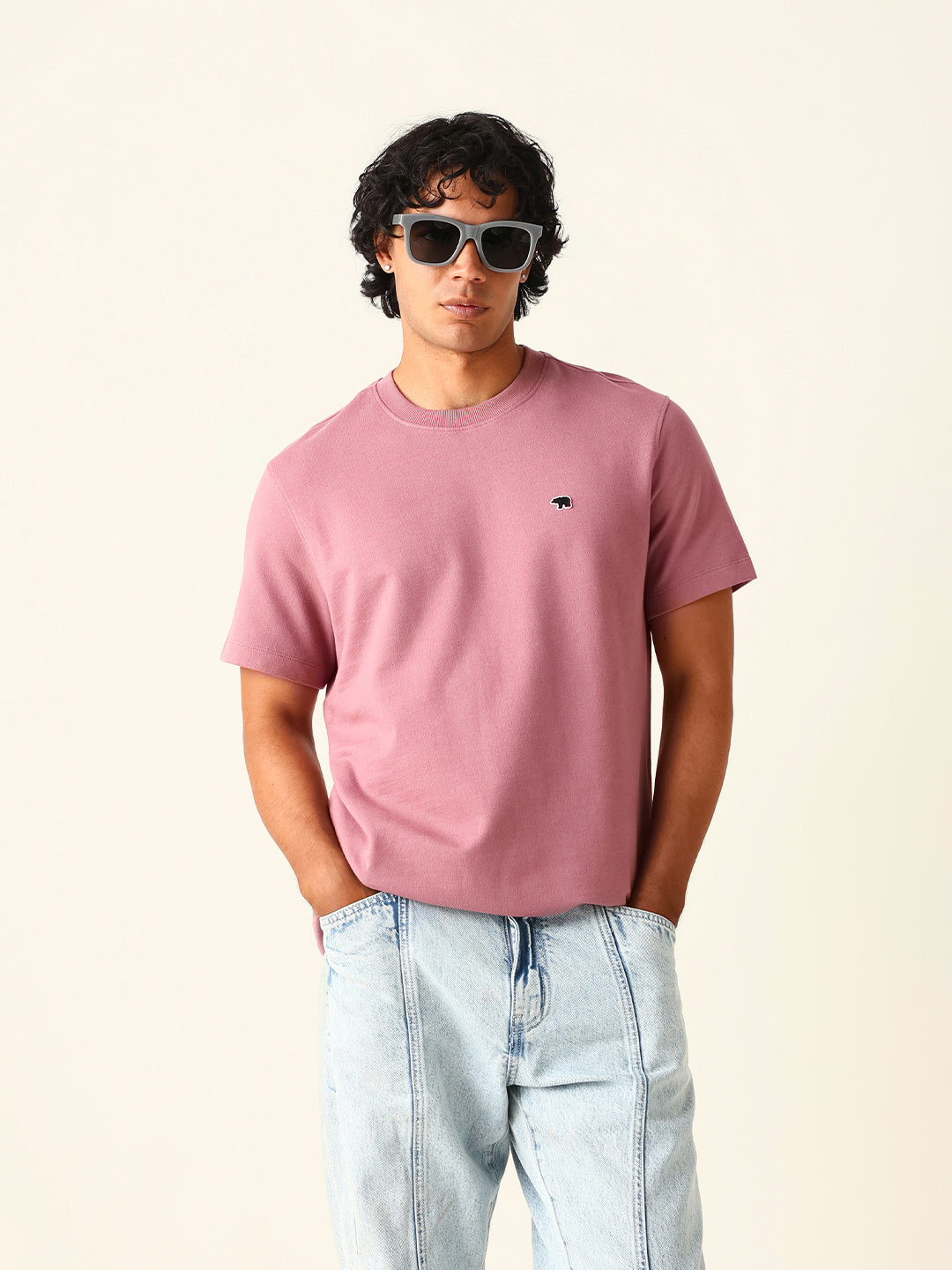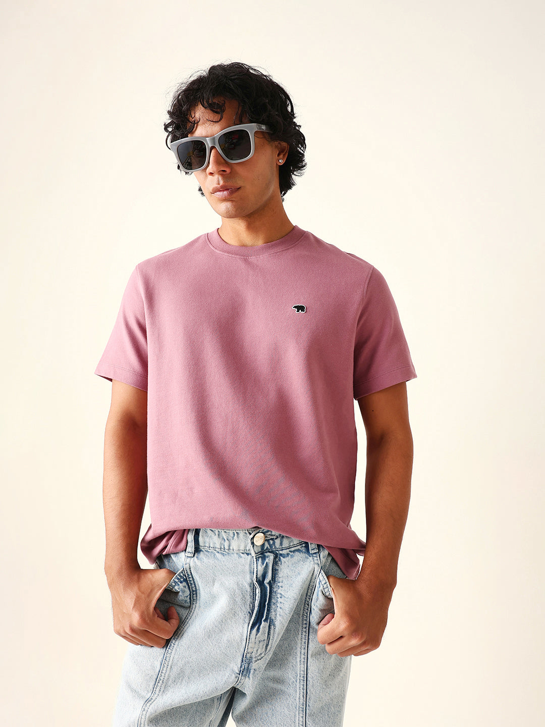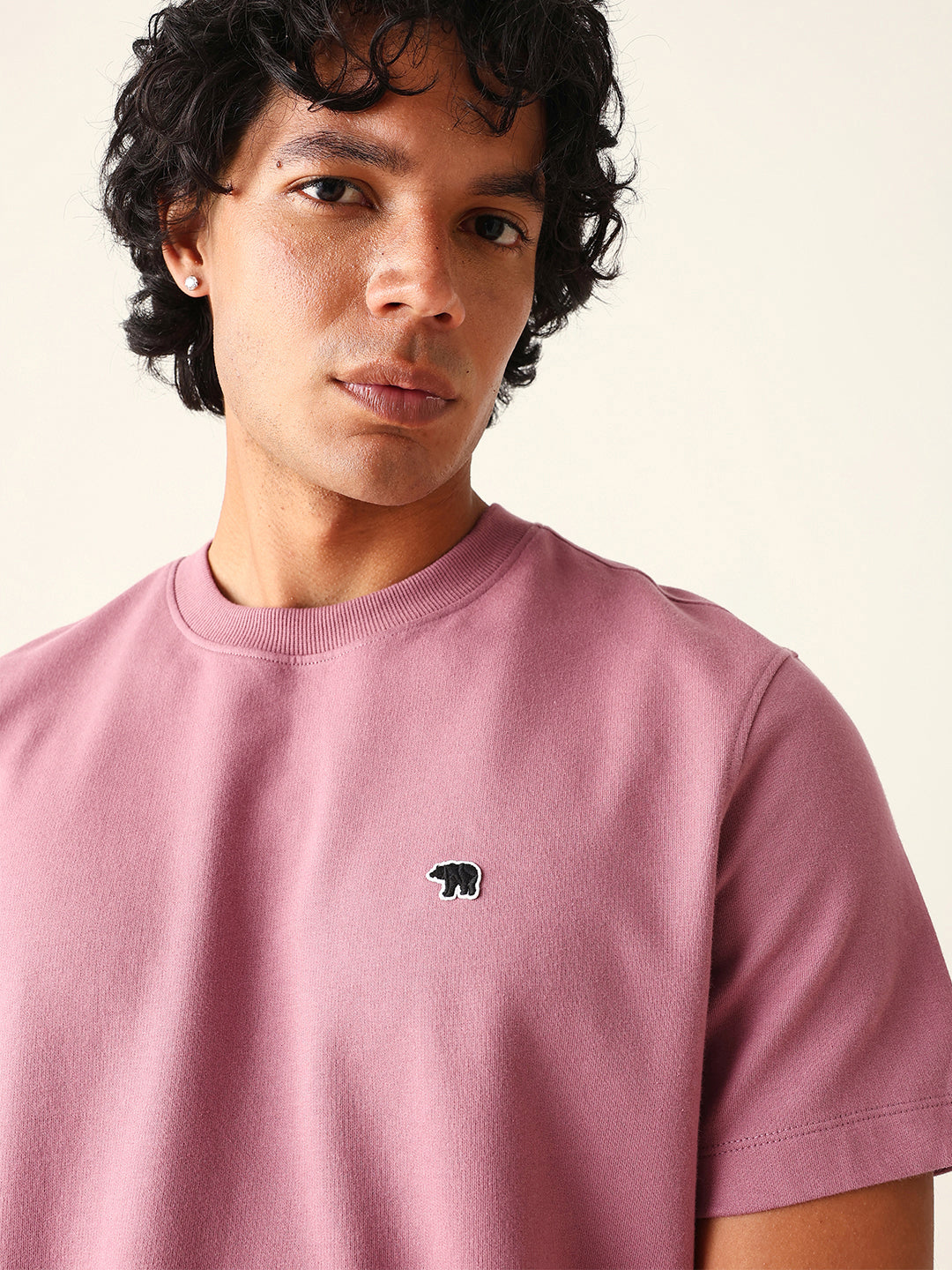 Shop Mauve Crew Neck T-Shirt with Bear Logo Embroidery Online