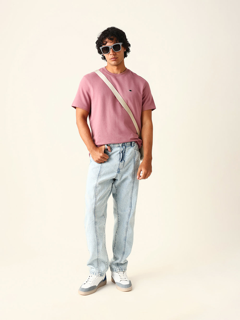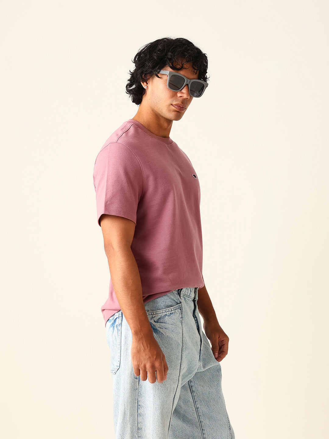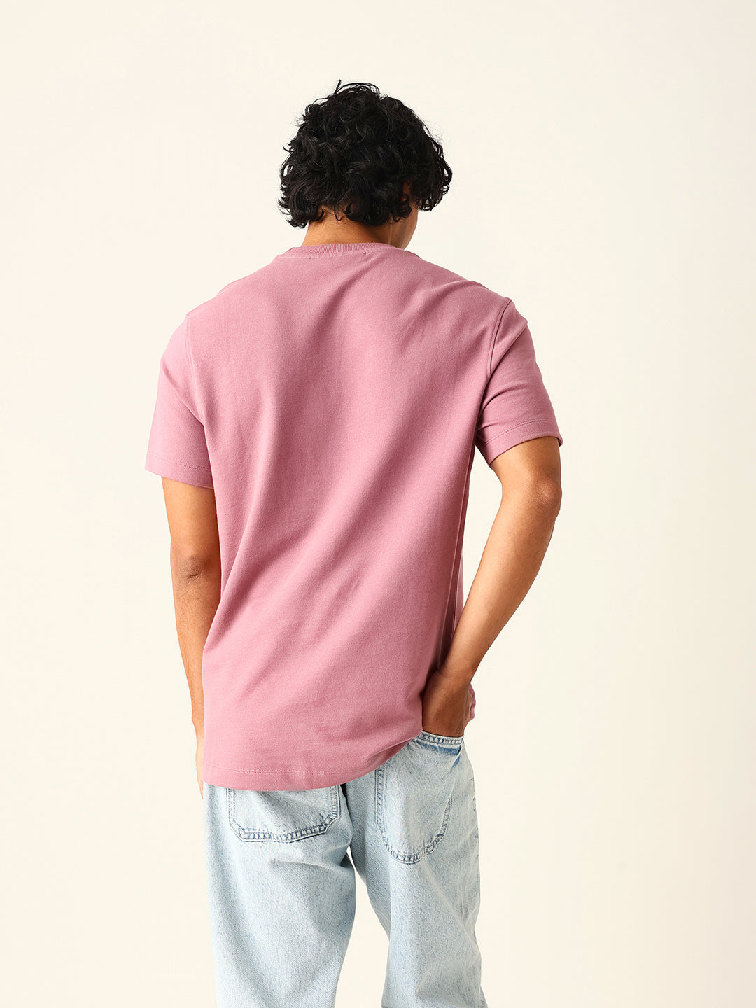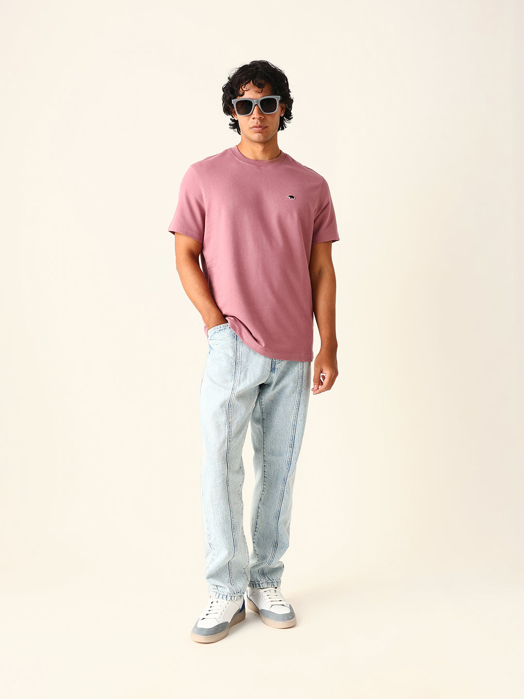 Shop Mauve Crew Neck T-Shirt with Bear Logo Embroidery Online