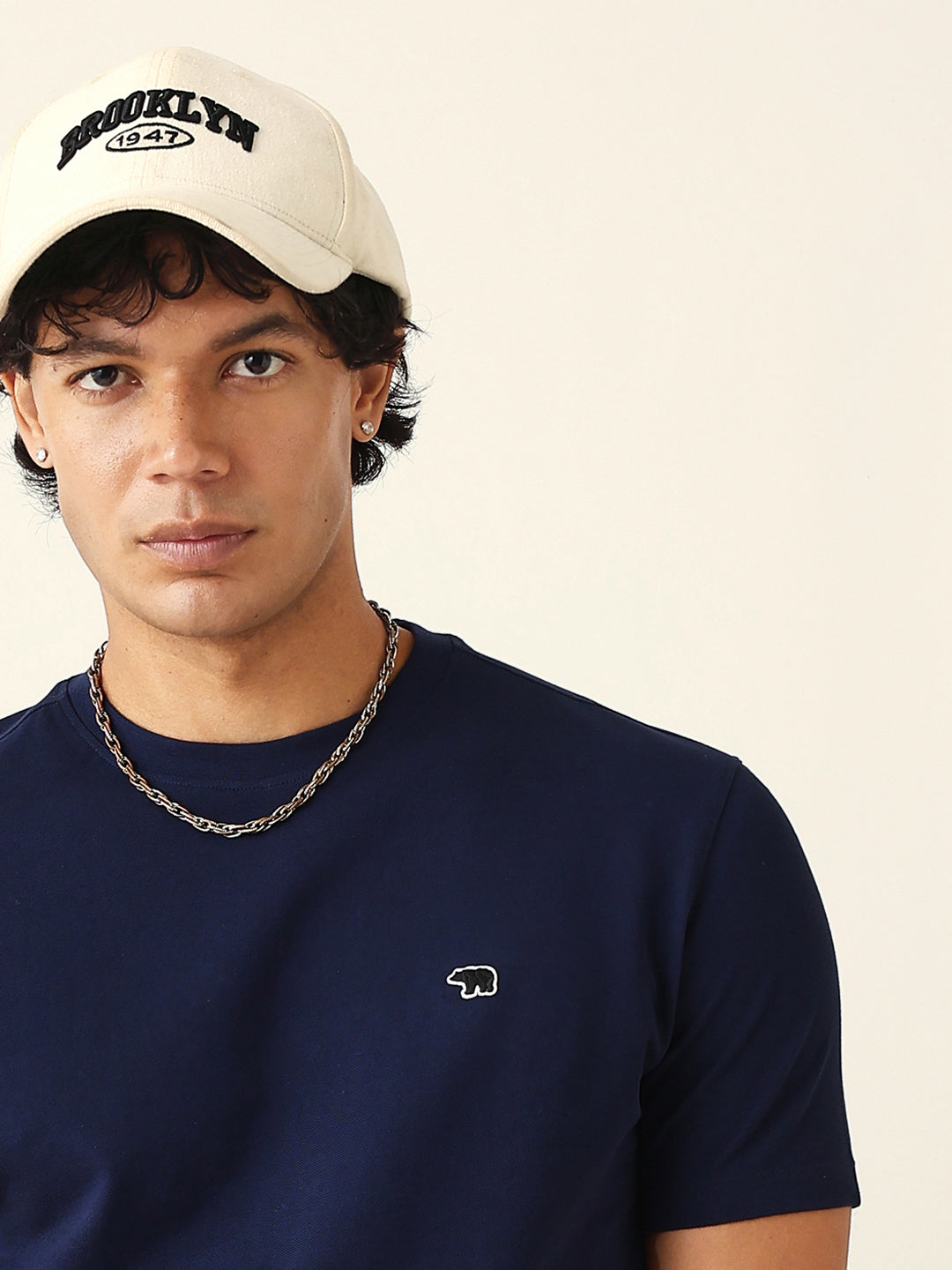 Navy Crew Neck Slim Fit T-Shirt with Bear Logo Embroidery