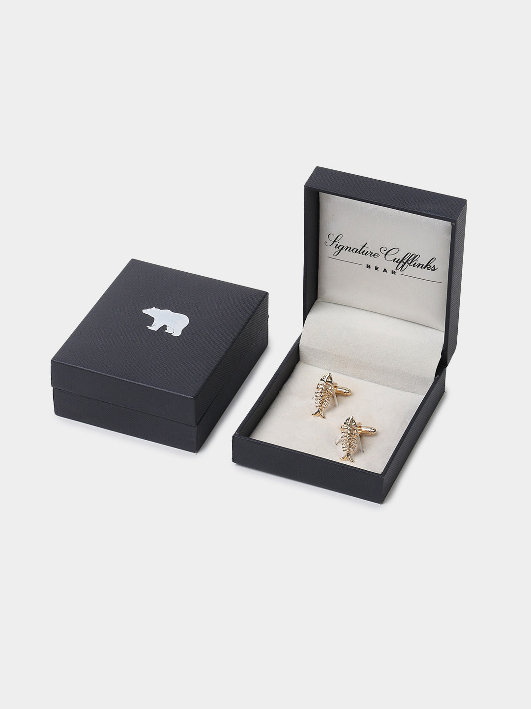 Shop Unique Gold Fishbone Design Cufflinks Online.| The Bear House