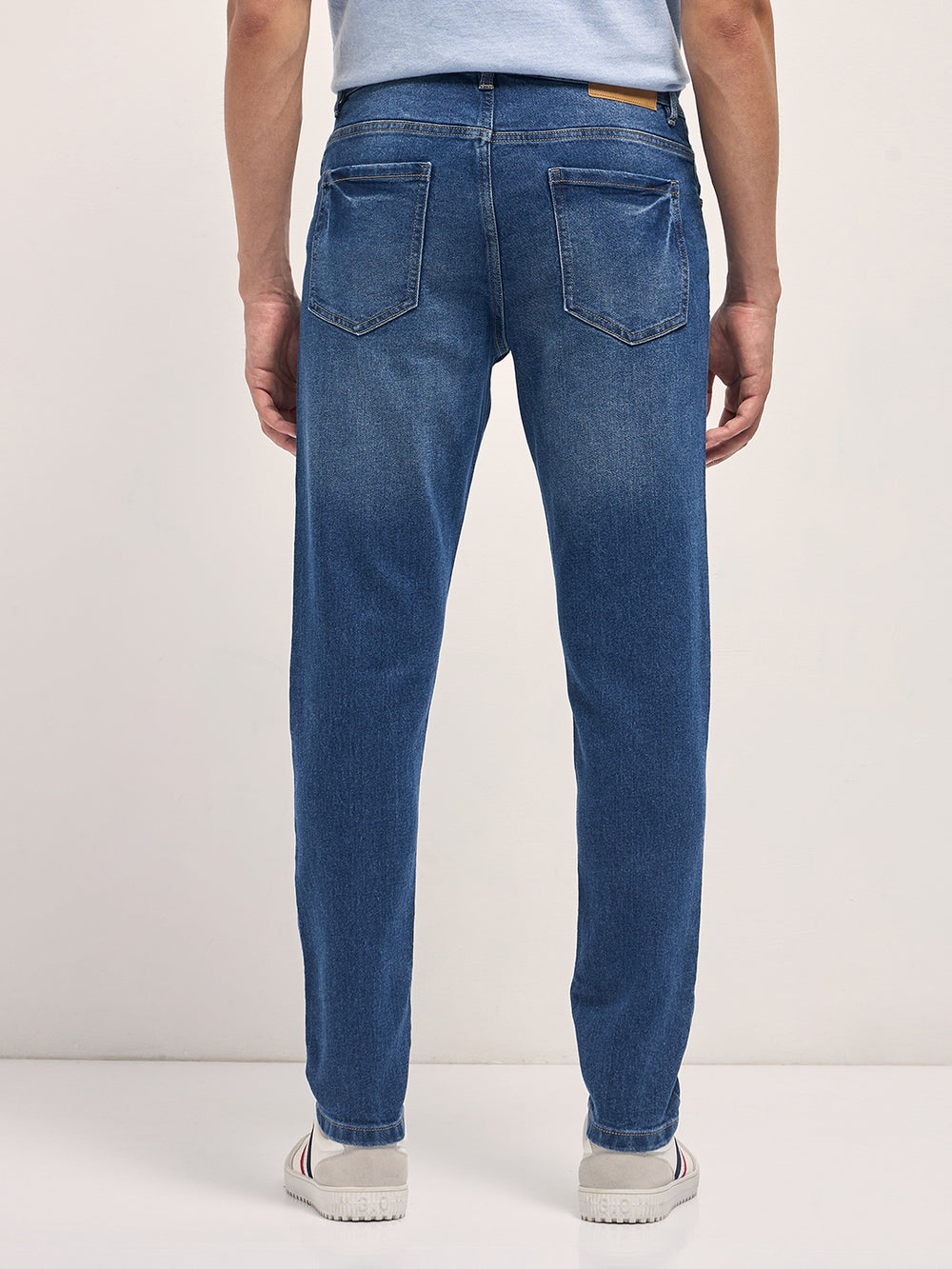 Mid Blue Mid-Rise Slim Fit Jeans with Mid Fade
