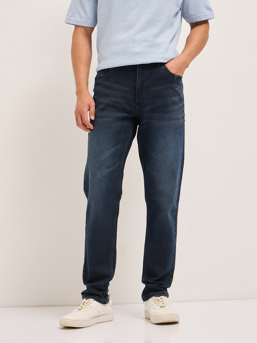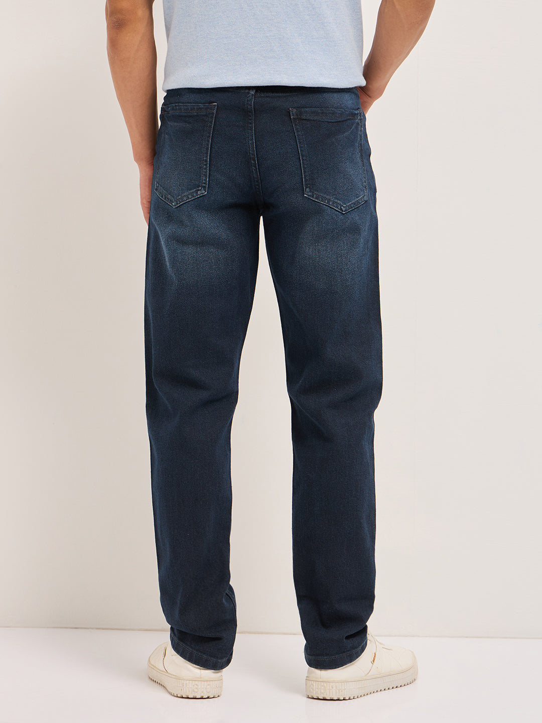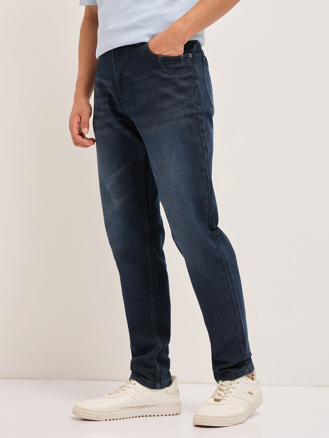 Dark Blue with Mid Fade Mid-Rise Slim Fit Jeans