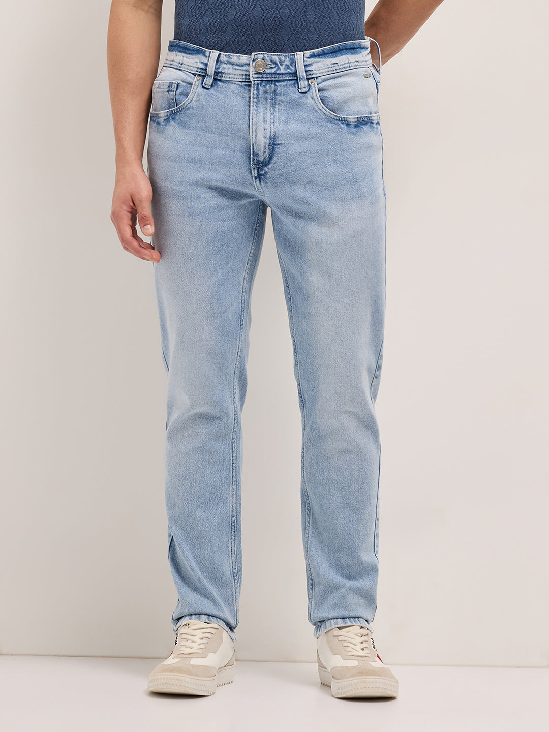 Light Blue Mid-Rise Slim Fit Jeans with Light Fade