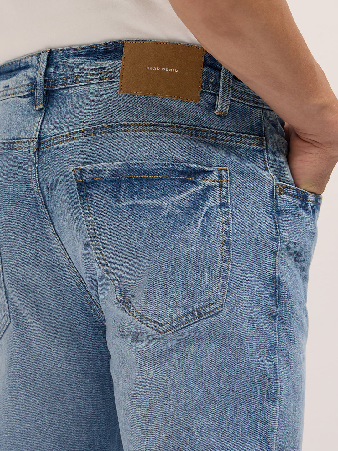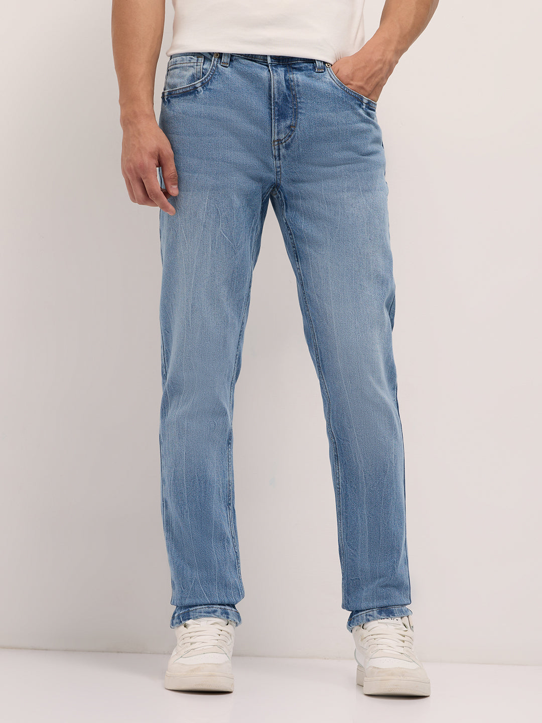 Light Blue Mid-Rise Slim Fit Jeans with Light Fade