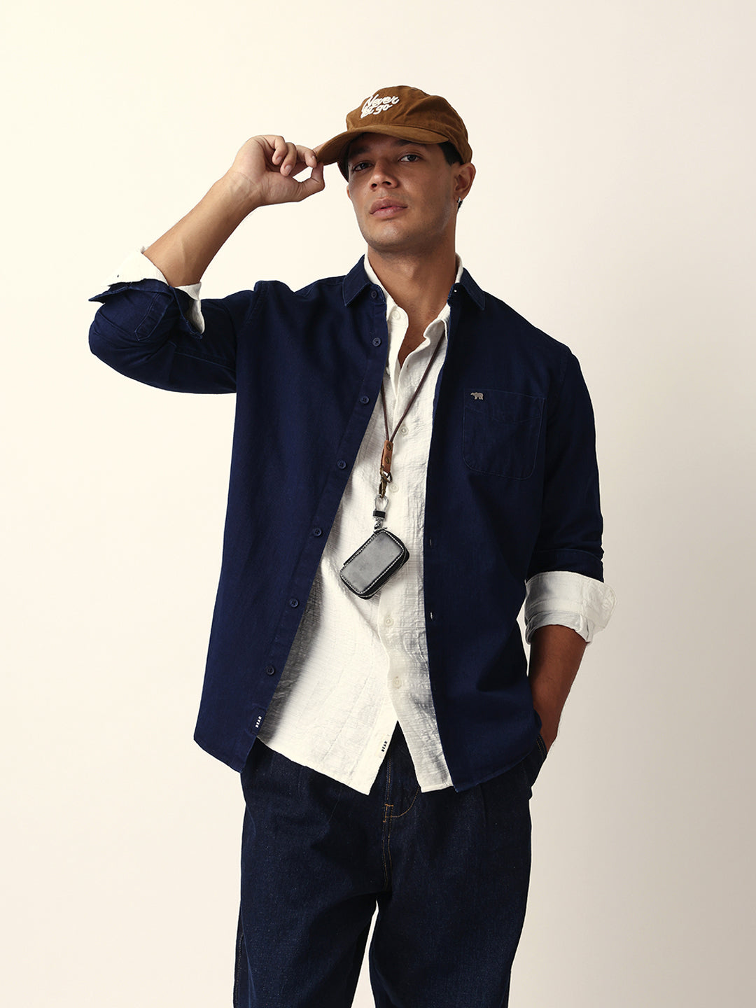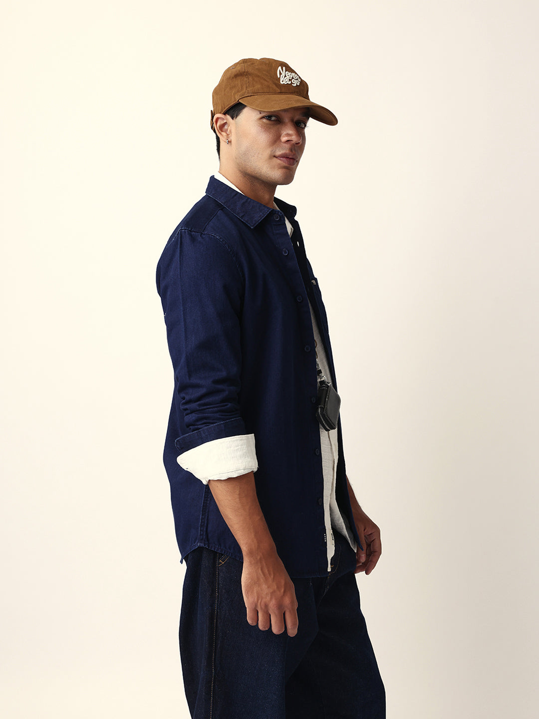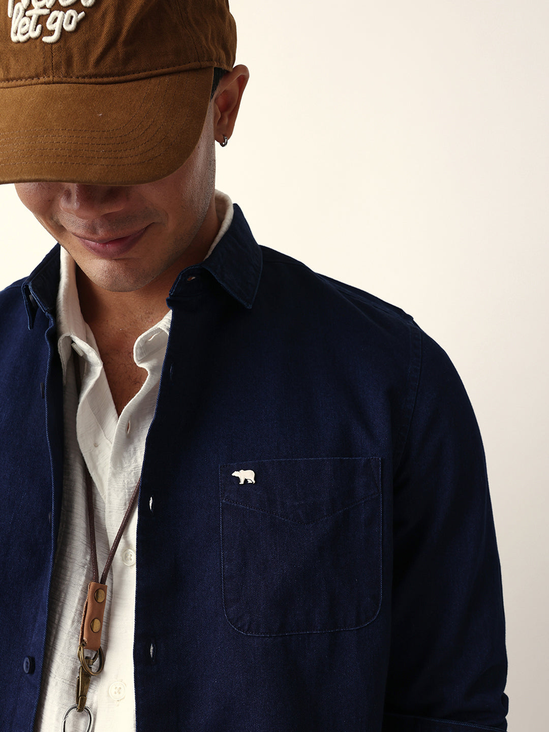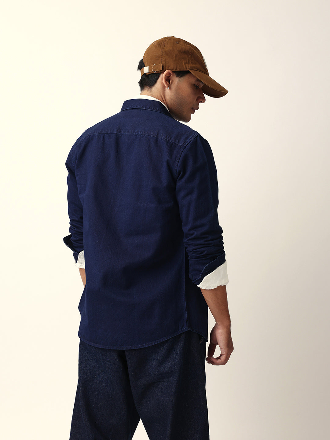 Shop Dark Blue Denim Slim Fit Casual Shirt Online.