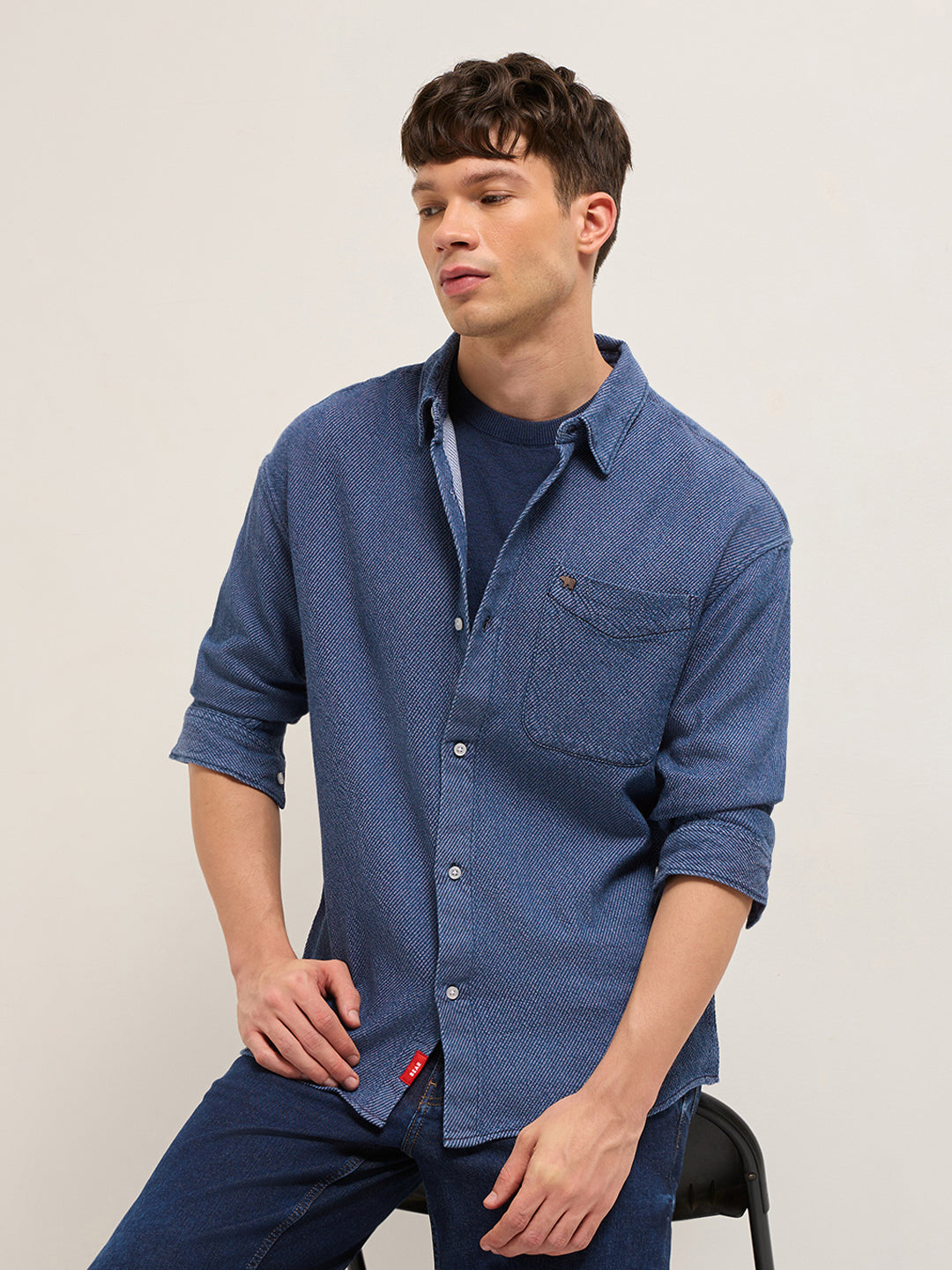 Shop Blue Diagonal Woven Textured Denim Slim Fit Casual Shirt Online. Explore our wide range of men's clothing collections. Free Shipping Hassle-free returns