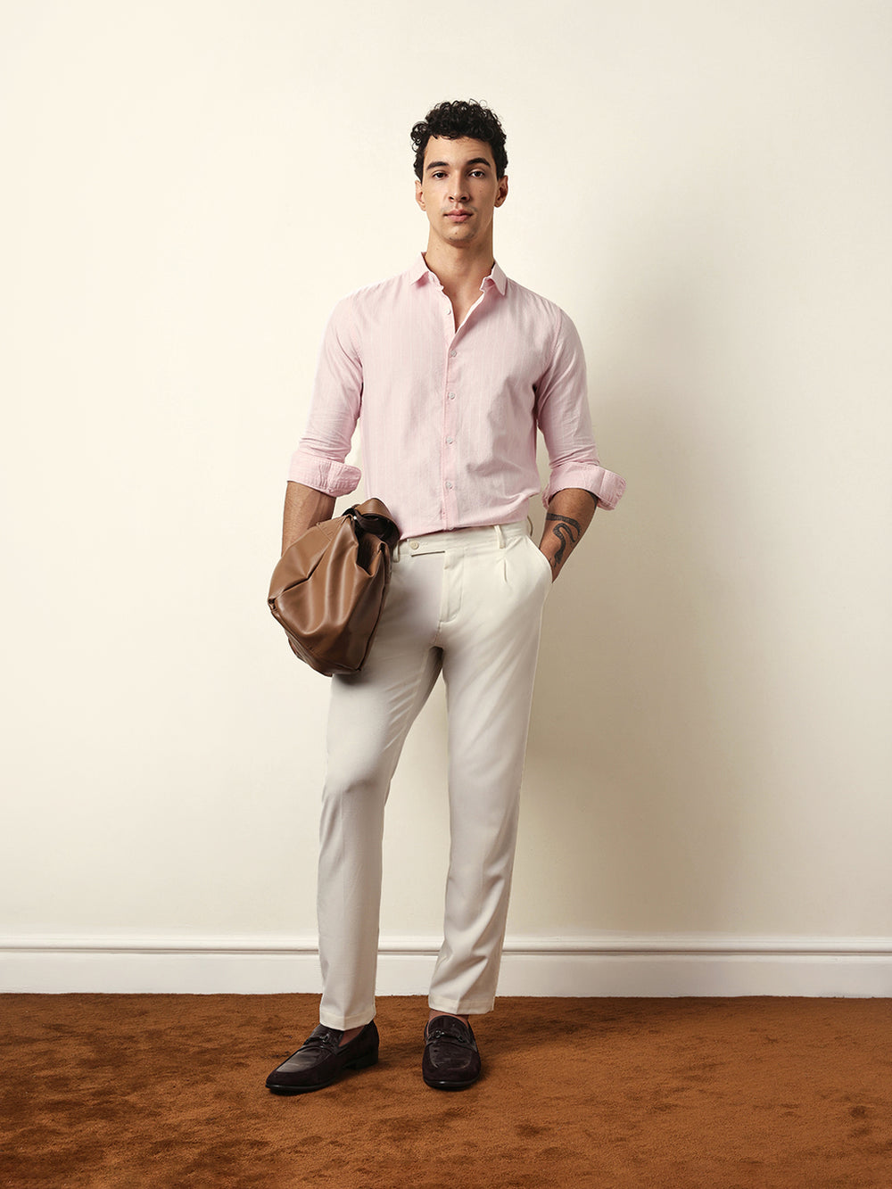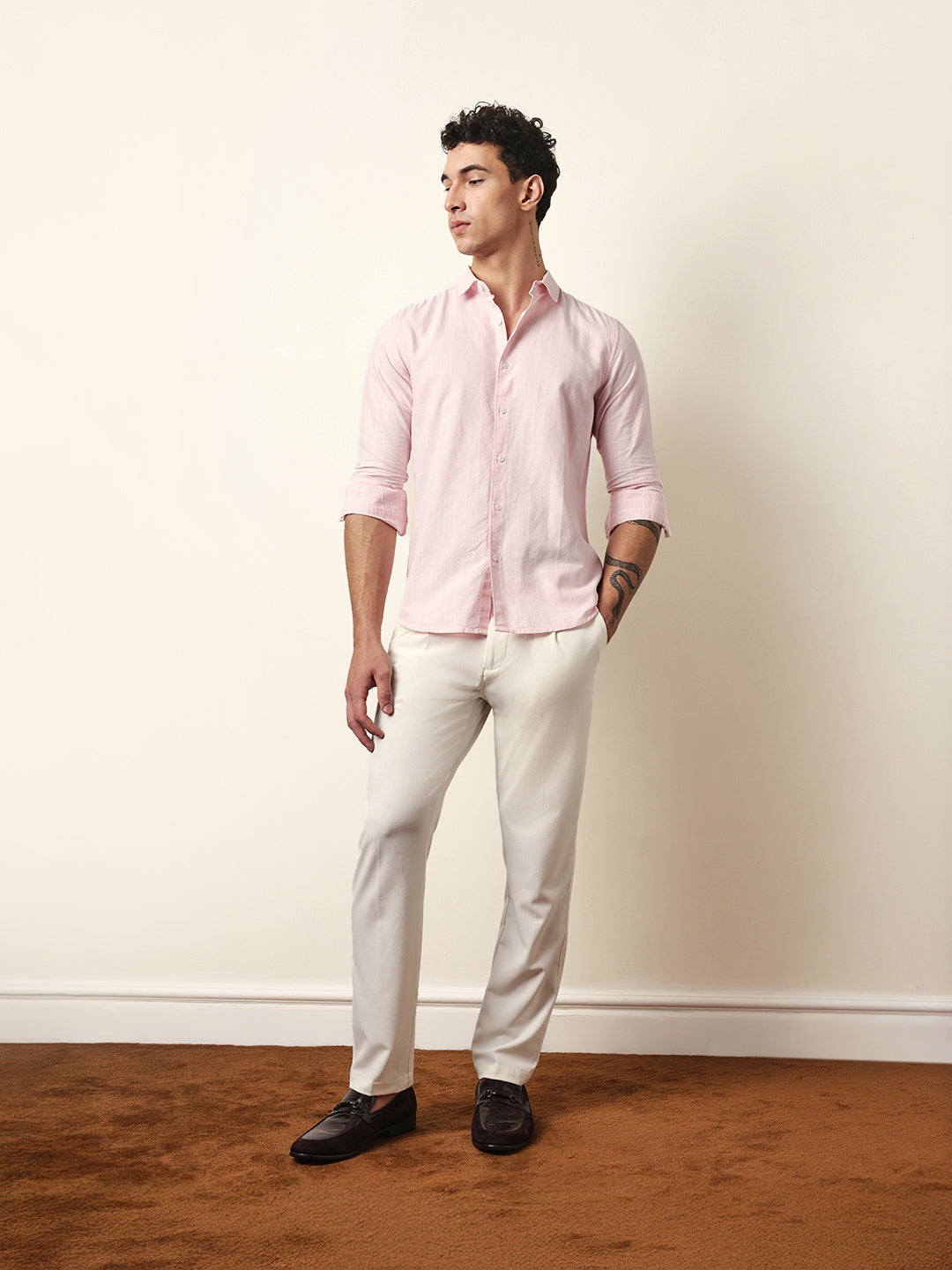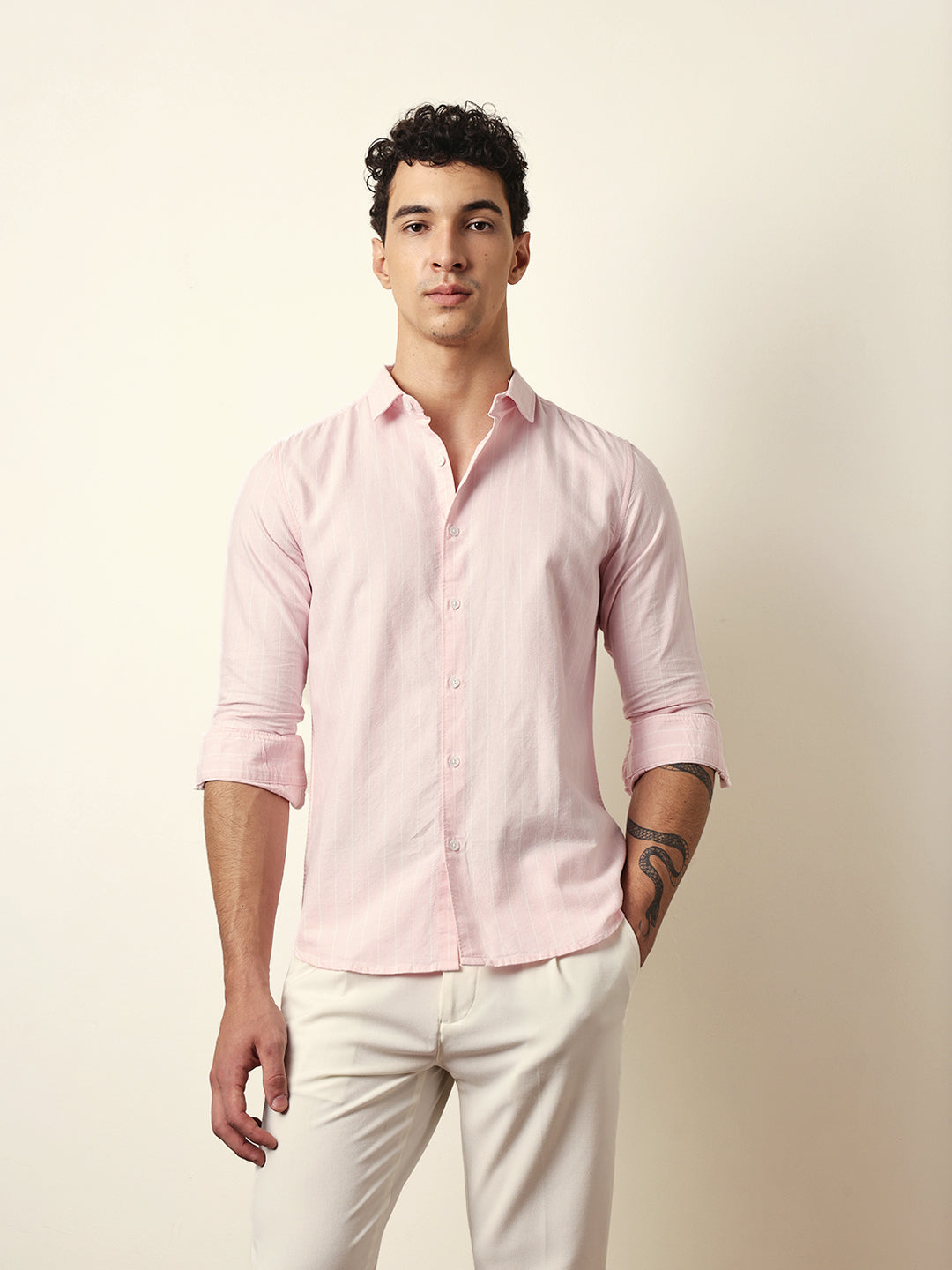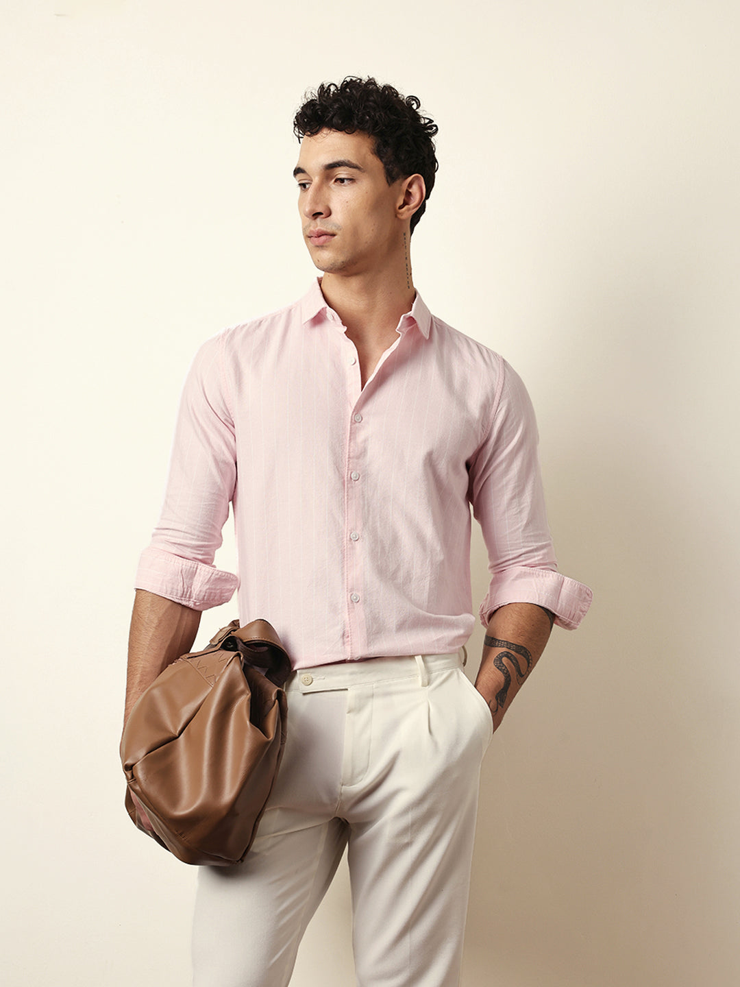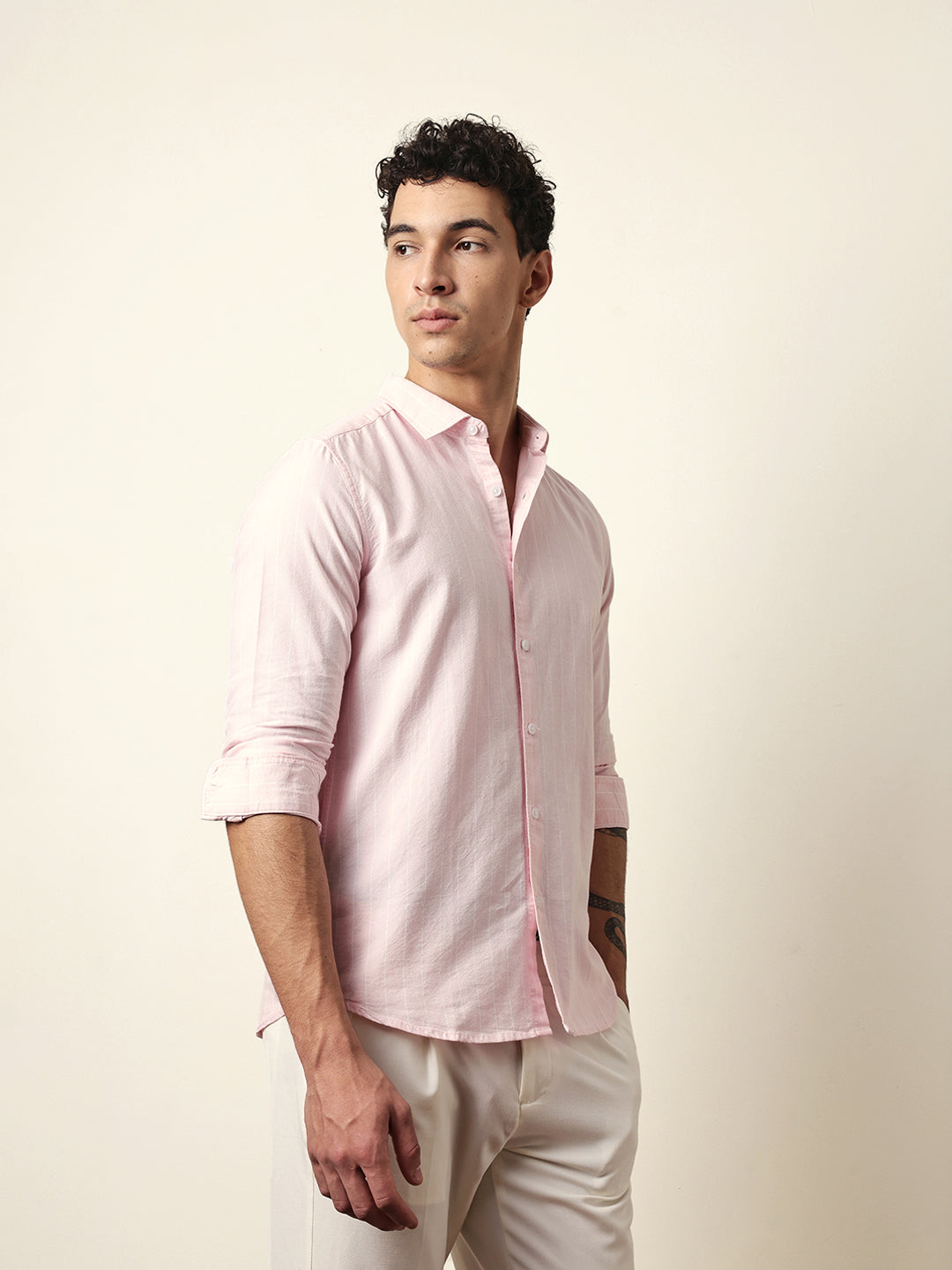 Shop Pink Vertical Woven Stripe Slim Fit Casual Shirt Online.