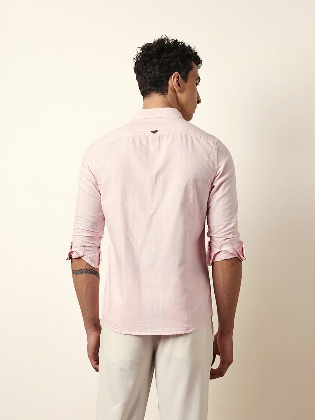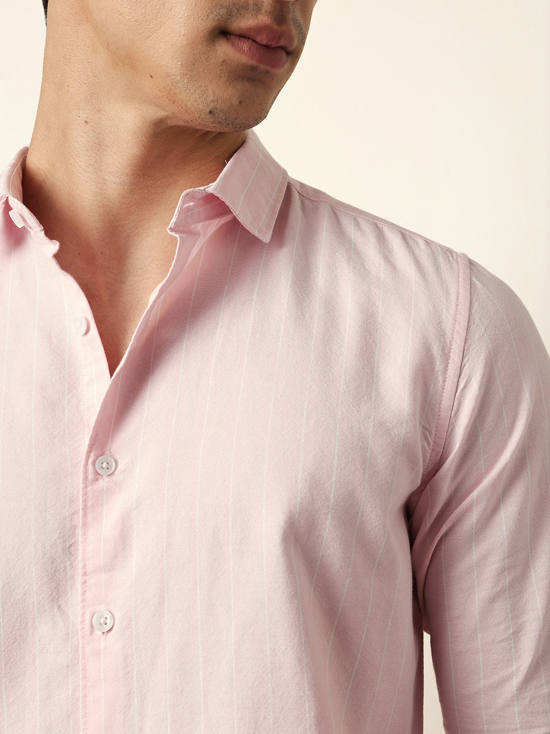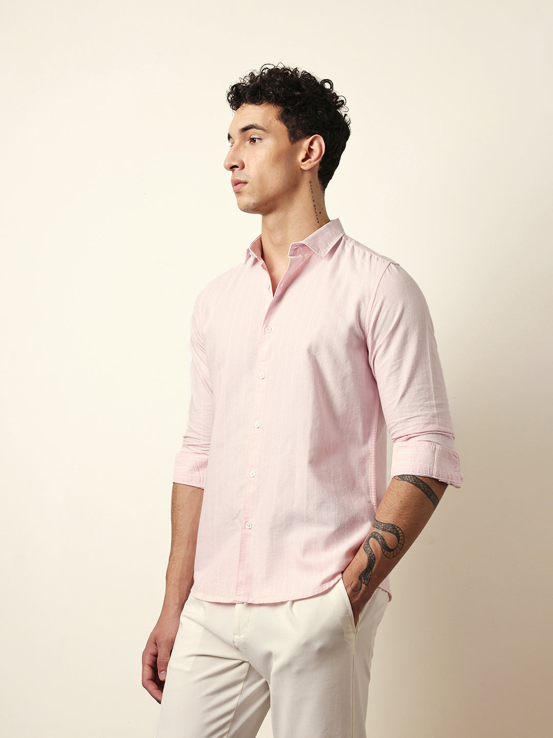 Pink Vertical Woven Stripe Slim Fit Casual Shirt
