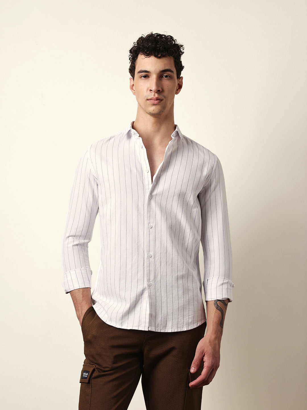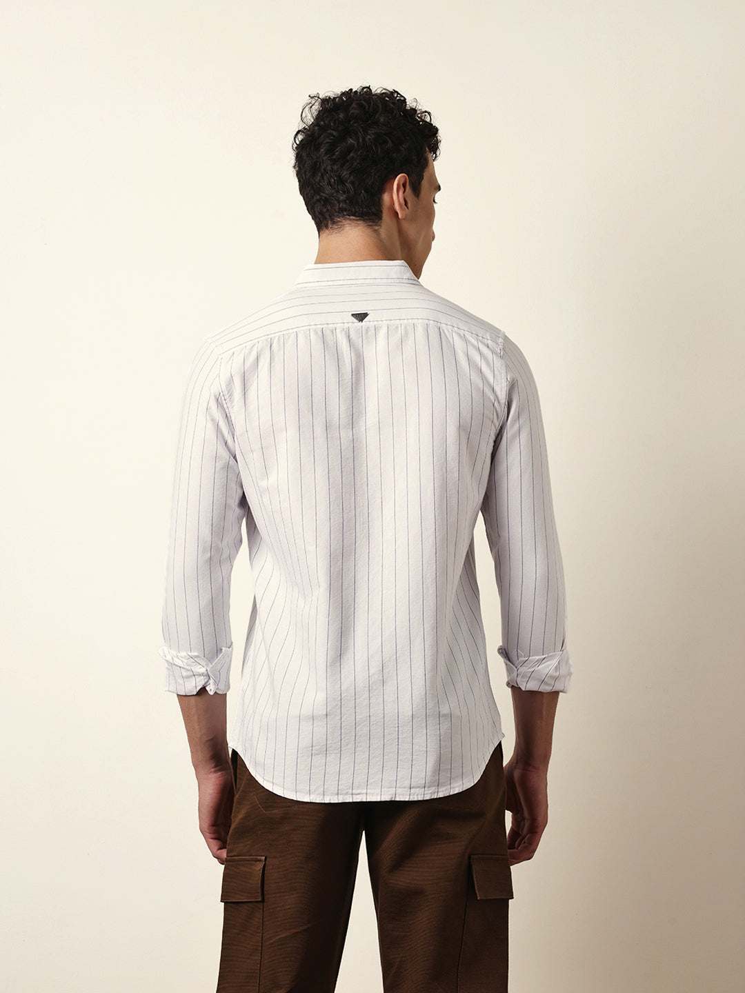 White Vertical Woven Stripe Slim Fit Casual Shirt