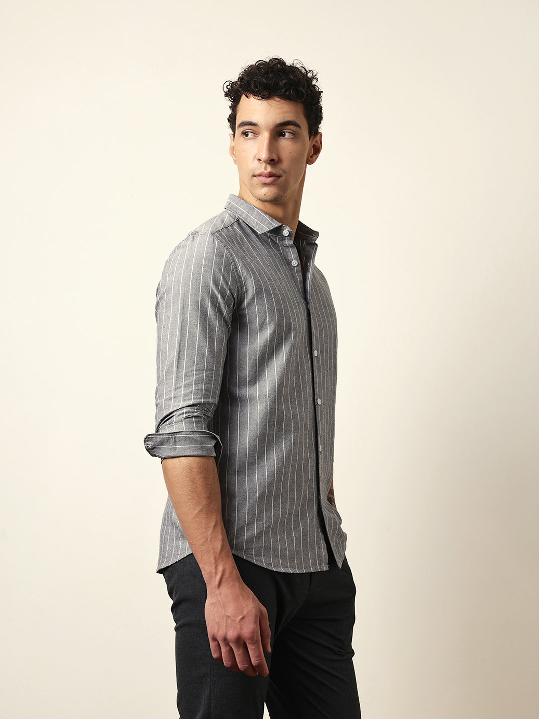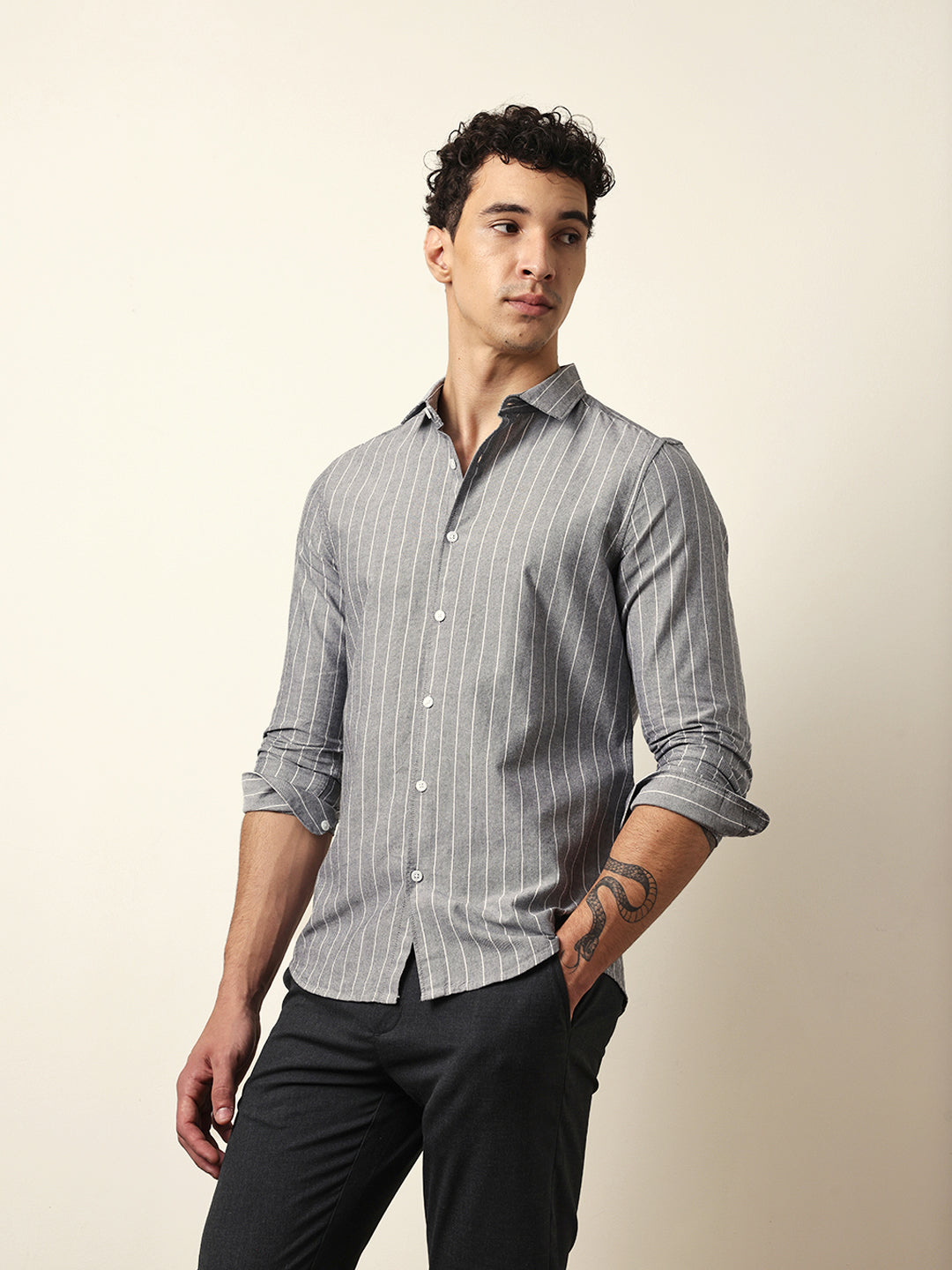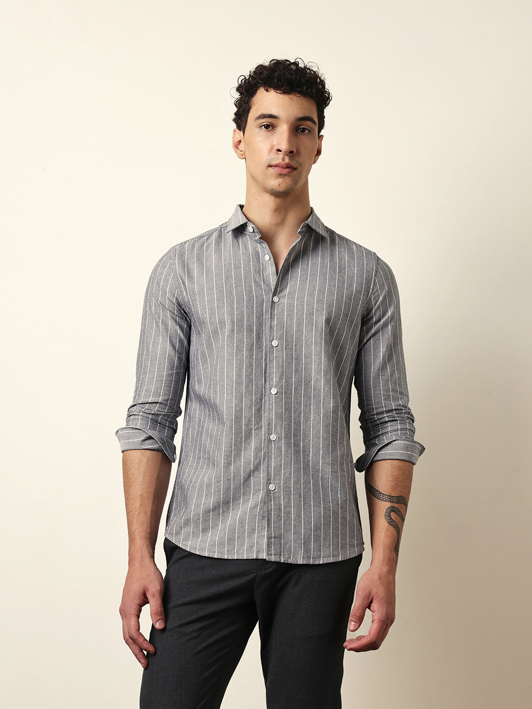 Shop Grey Vertical Woven Stripe Slim Fit Casual Shirt Online.