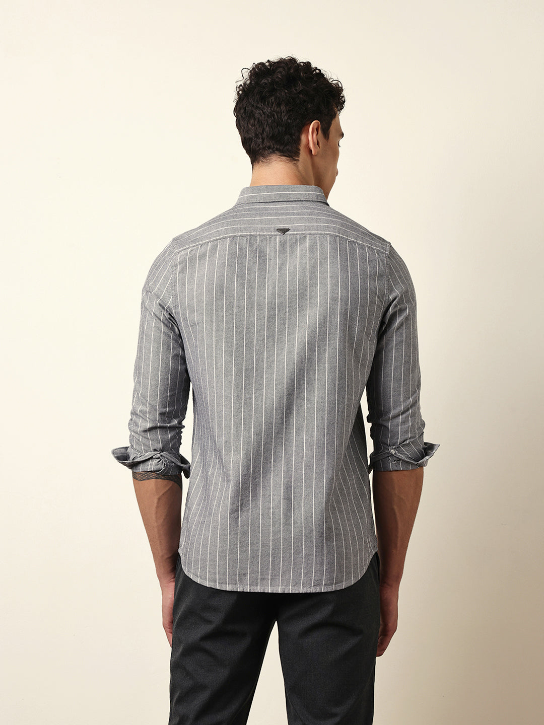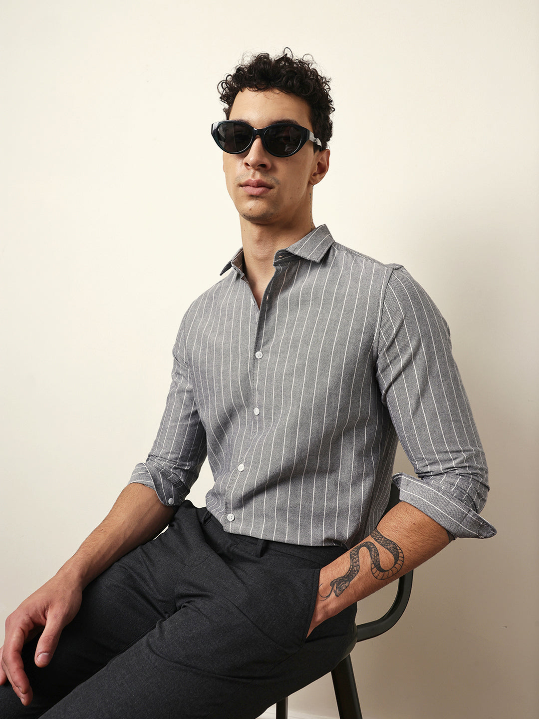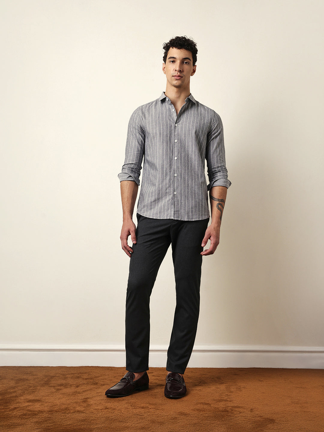 Shop Grey Vertical Woven Stripe Slim Fit Casual Shirt Online.