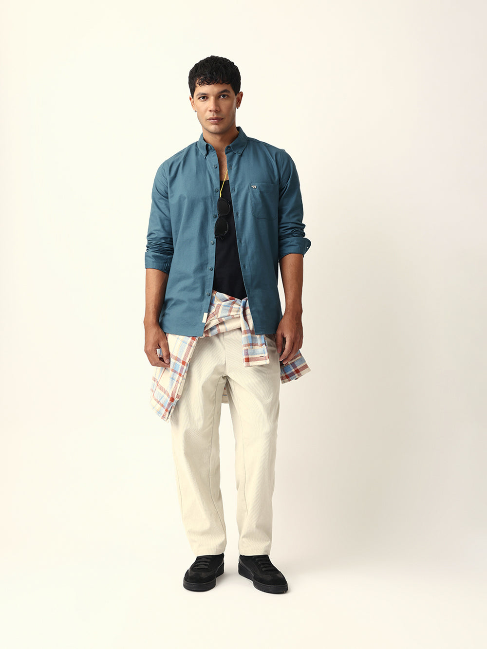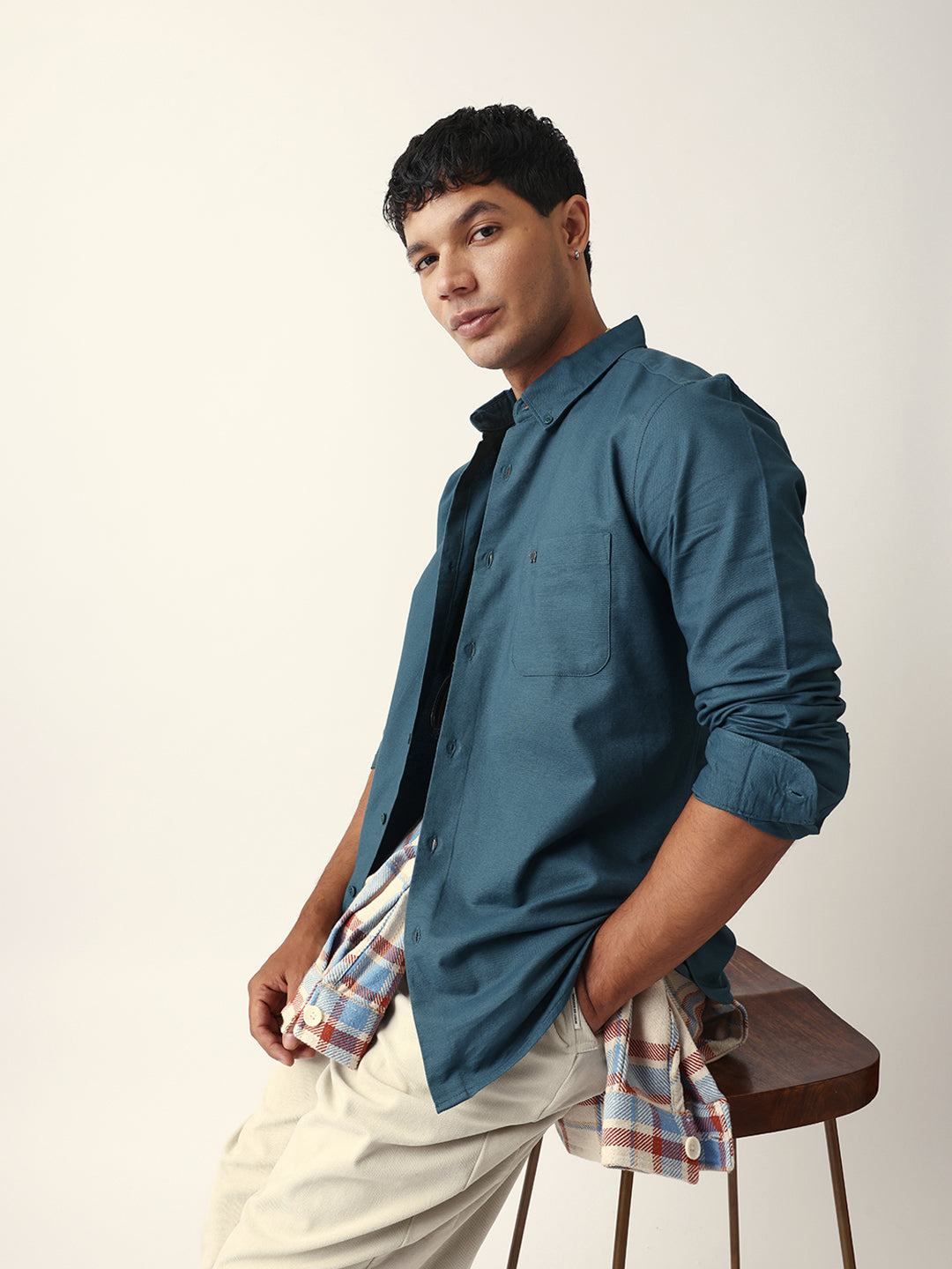 Shop Teal Solid Slim Fit Casual Shirt with Button-Down Collar Online. Explore our wide range of men's clothing collections. Free Shipping Hassle-free returns